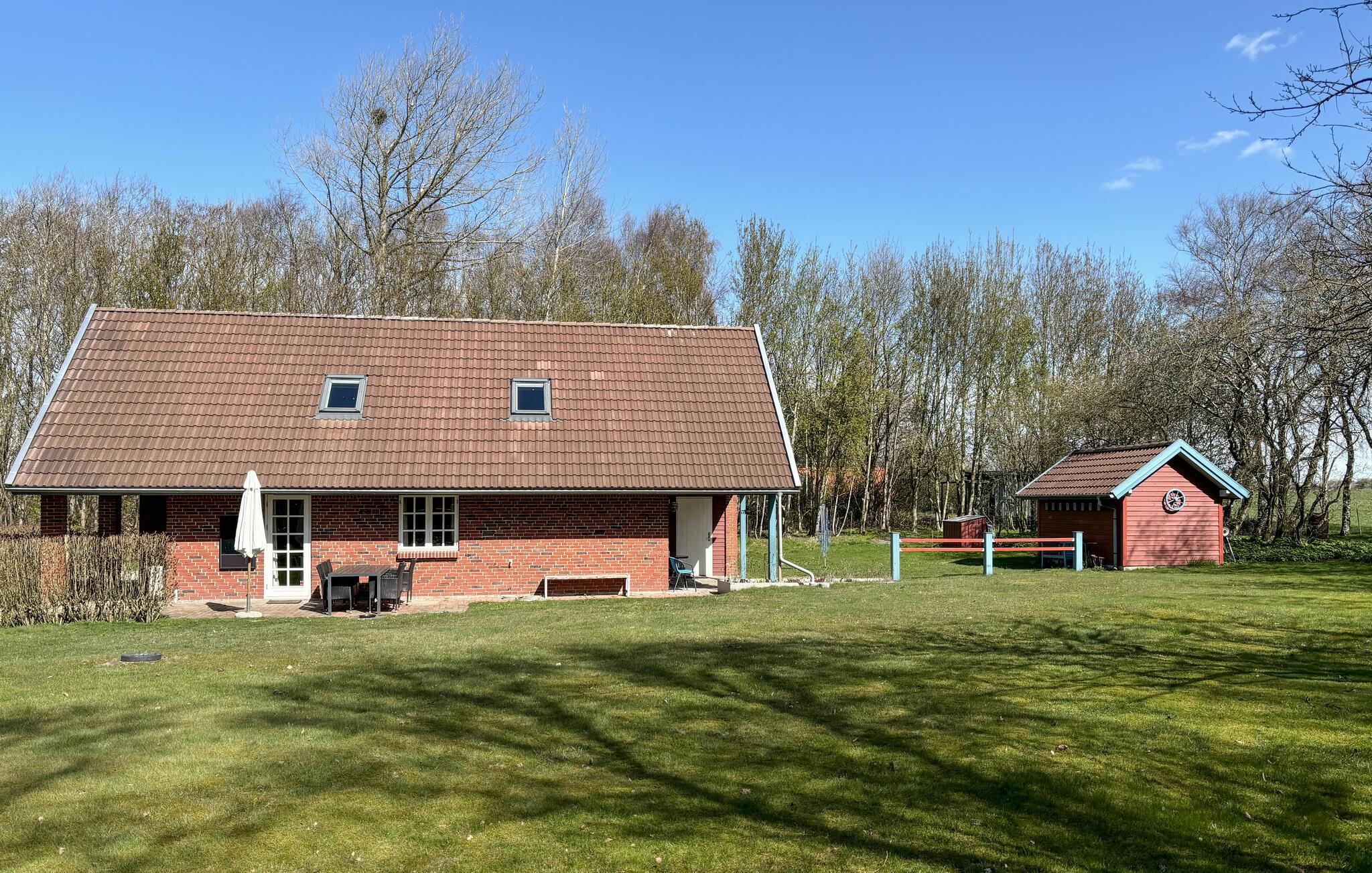Hyggeligt feriehus nær Vile Strand med stor have, terrasse og moderne faciliteter til afslapning og familiehygge.