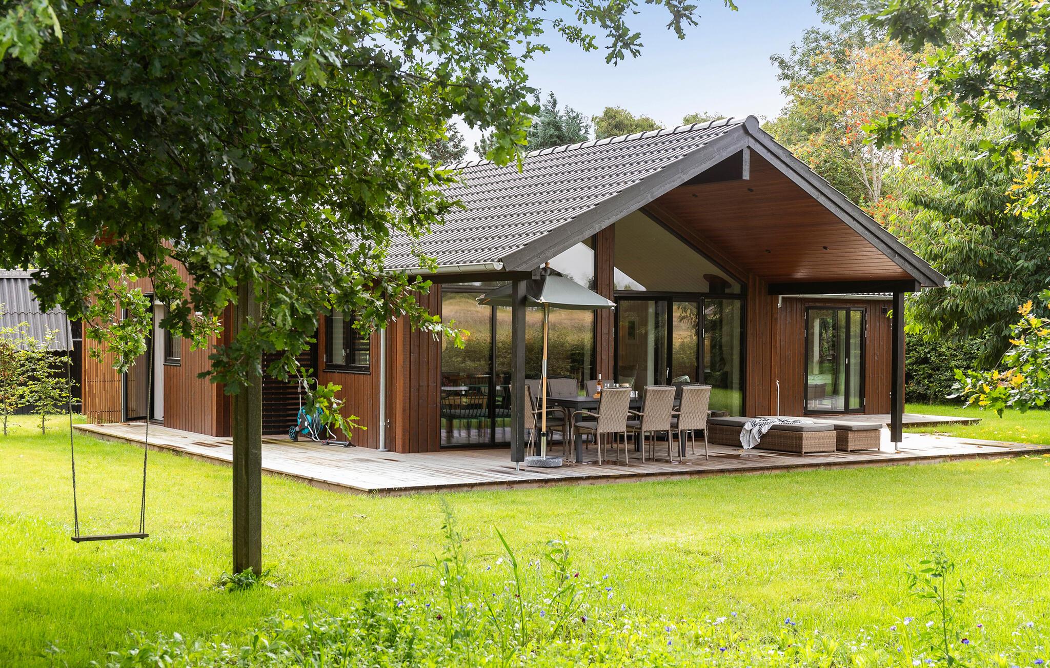Luksuriøst sommerhus i Villingebæk med solrig terrasse, nær strand og naturskønne omgivelser, perfekt til afslapning og familieaktiviteter.