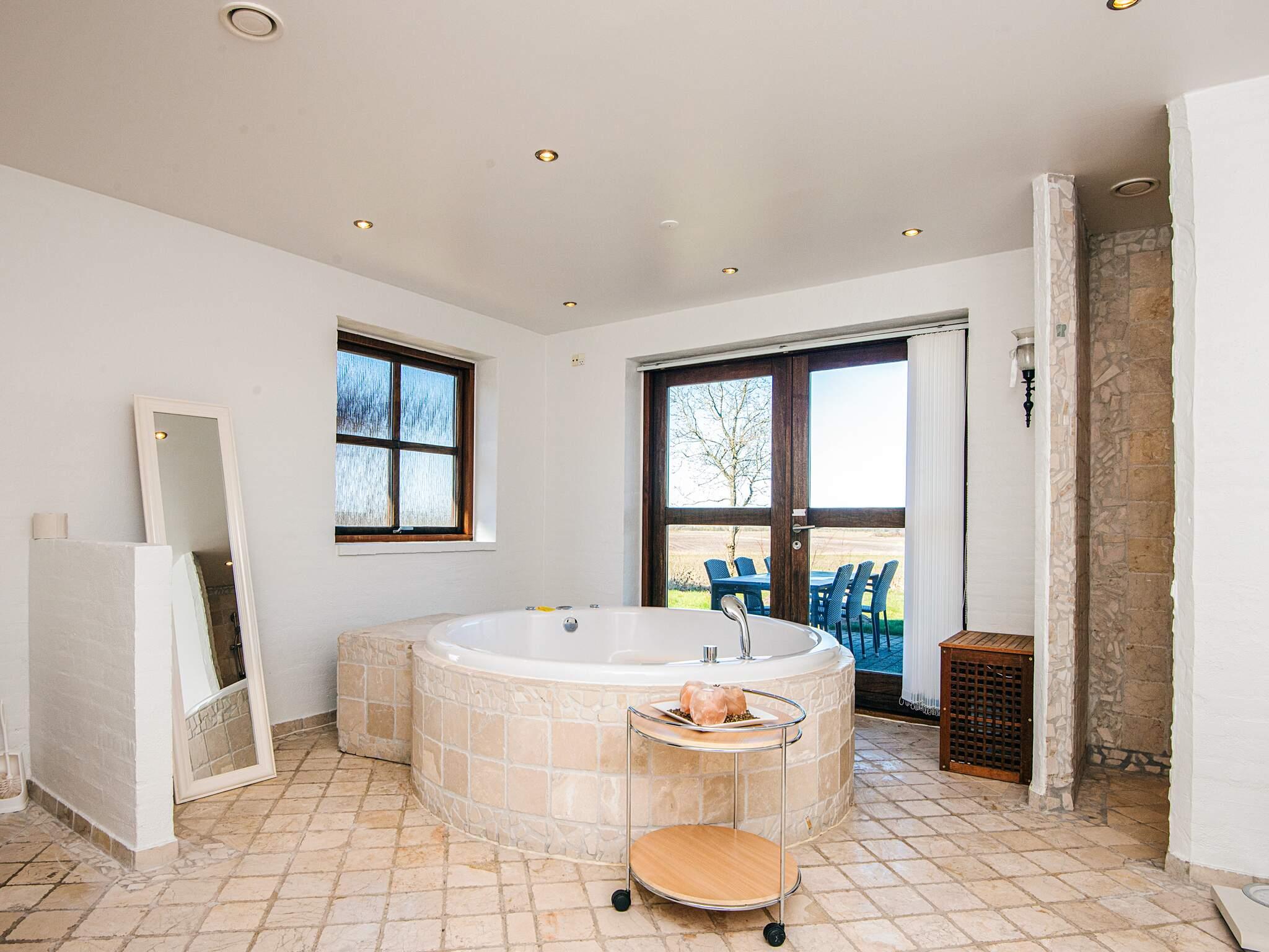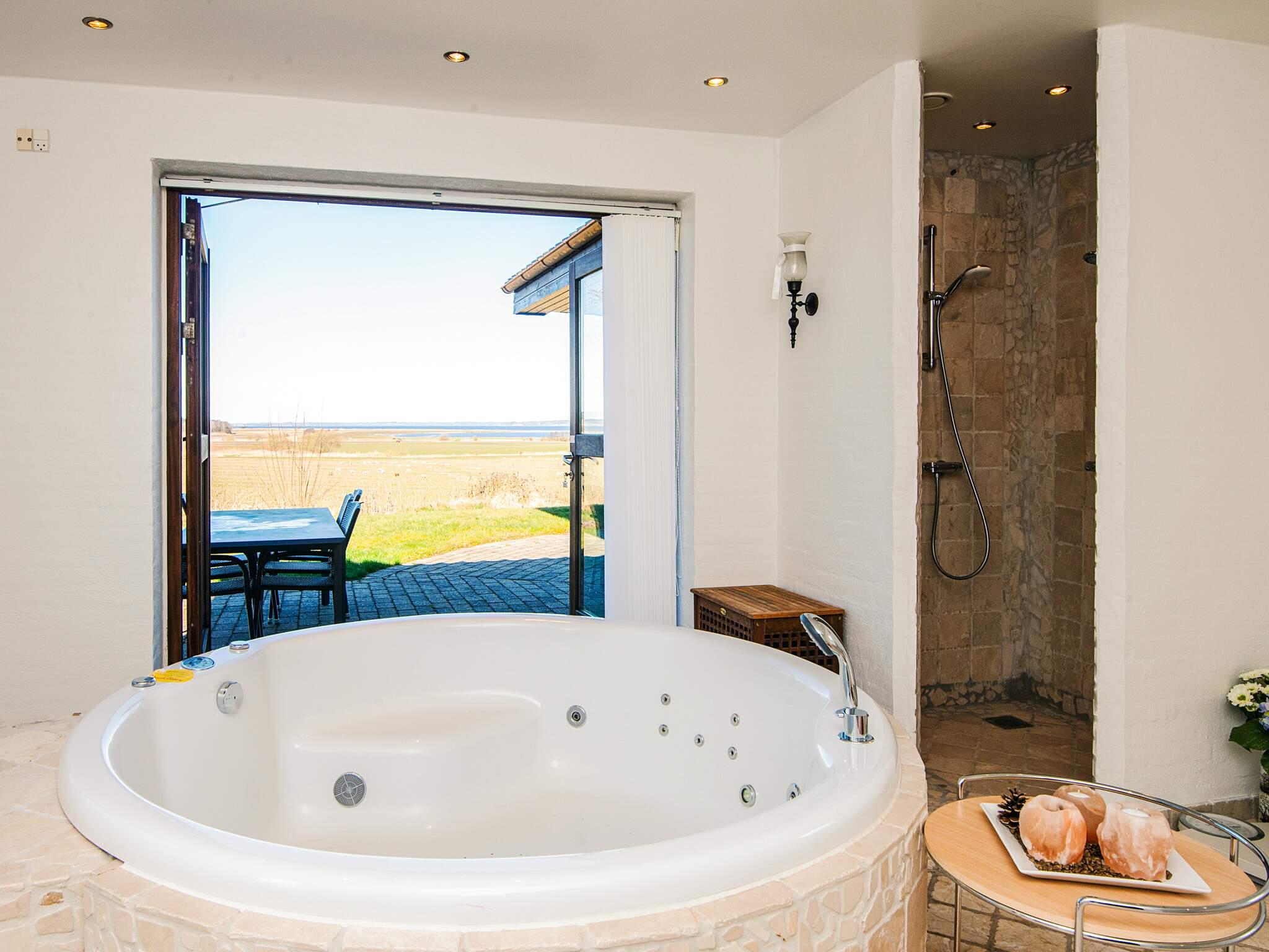 Stort og usædvanligt sommerhus med spabad, sauna og panoramaudsigt over Limfjorden ca. 200 meter fra fjorden. Der er store terrasser ved huset, hvor I kan nyde aftensmaden mens solen går ned i vest. Huset er lyst og moderne indrettet. Stuen har tv og brændeovn. Den store stue er indrettet med komfortable og moderne møbler. Køkkenet er moderne indrettet og kombineret med stuen. Der er bl.a. keramisk komfur, separat dybfryser og opvaskemaskine. Der er fire soveværelser samt en hems. To badeværelser, det ene med stor bruseniche og et stort spabad, hvorfra der er udsigt over vandet. Fra badeværelset er der direkte adgang til husets sauna. Området byder på flot natur og mulighed for ro og afslapning mens børnene trygt kan boltre sig på den store grund, og i området hvor der kun er meget lidt trafik. I kan nyde aftensmaden på terrassen, mens solen går ned over Limfjorden.