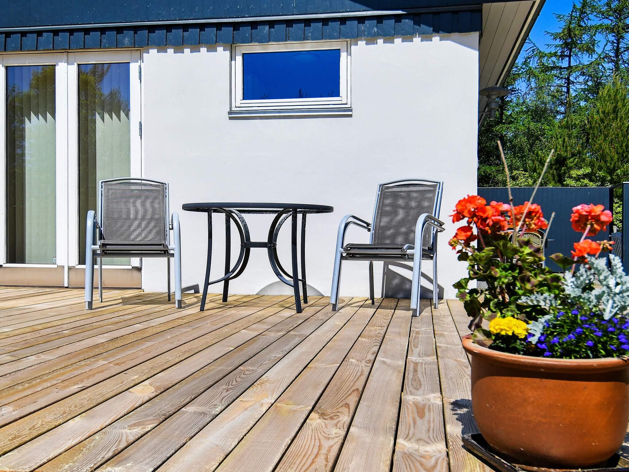 Ved Virksund finder I dette lyst indrettede sommerhus med plads til både store og små. Omkring huset er både en stor træterrasse, en overdækket terrasse på bagsiden af huset og en terrasse mellem hus og anneks. Vildmarksbadet benyttes på eget ansvar og lejer skal selv skifte vand og gøre rent efter behov inden brug. Ved huset er der træ til at tænde op i badet. Udendørs findes også flere gode legeredskaber, eksempelvis rutsjebane, gyngestativ, basketball og trampolin (benyttes på eget ansvar/forsikring).