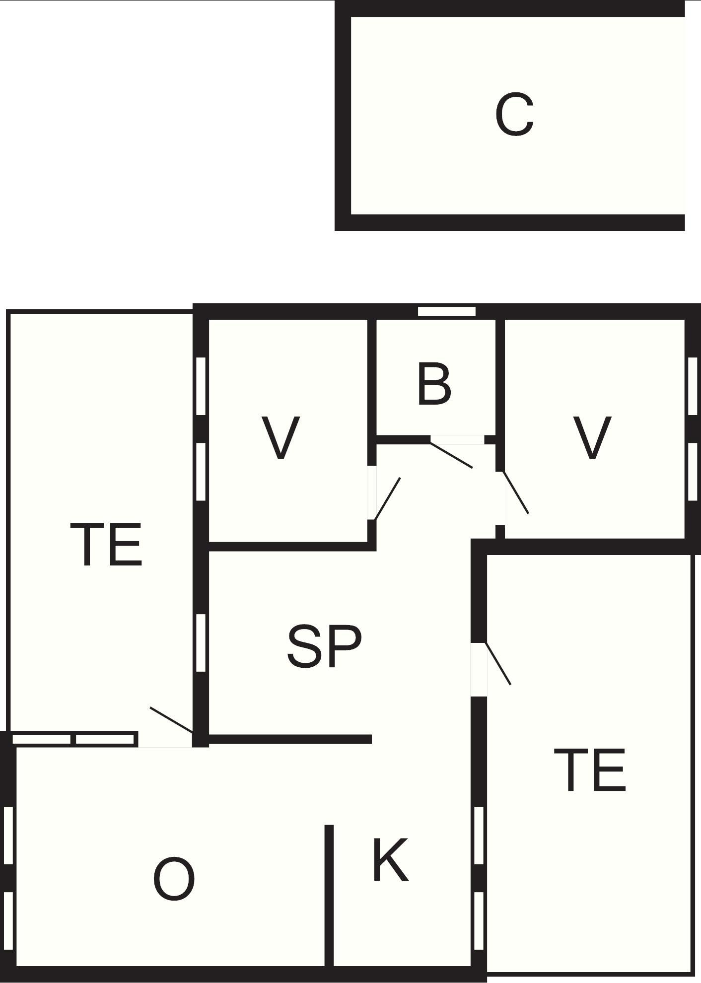 Sommerhus beliggende på stor naturgrund med græsplæne og god legeplads til børnene. Der er 22 m² åben og 8 m²overdækket terrasse på begge sider af huset, så I altid kan finde en god lækrog. Huset indeholder en stor stue med brændeovn, tv med tyske og danske kanaler og direkte adgang til terrassen. Åbent køkken og spisestue, hvorfra der også er direkte adgang til terrassen.