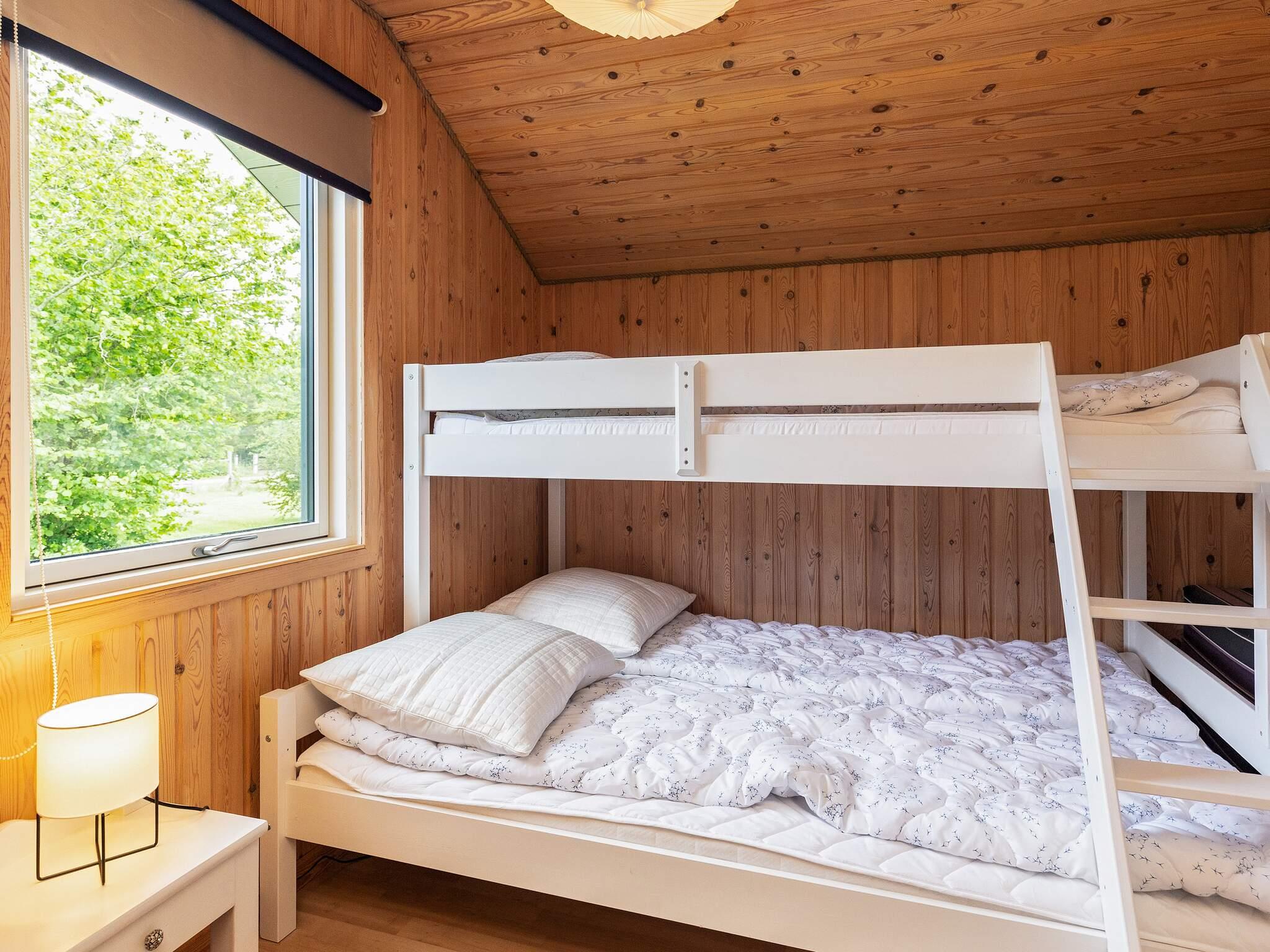 Fra opholdsområdet har gæsterne direkte adgang til en delvist overdækket terrasse og den store have, ideel til udendørs afslapning og leg. TV'et i stuen leveres med Chromecast til streaming af dit yndlingsindhold. Huset indeholder tre soveværelser: to soveværelser har en familiekøjeseng med en dobbeltseng under og en enkeltseng over, mens det tredje soveværelse har en komfortabel dobbeltseng.