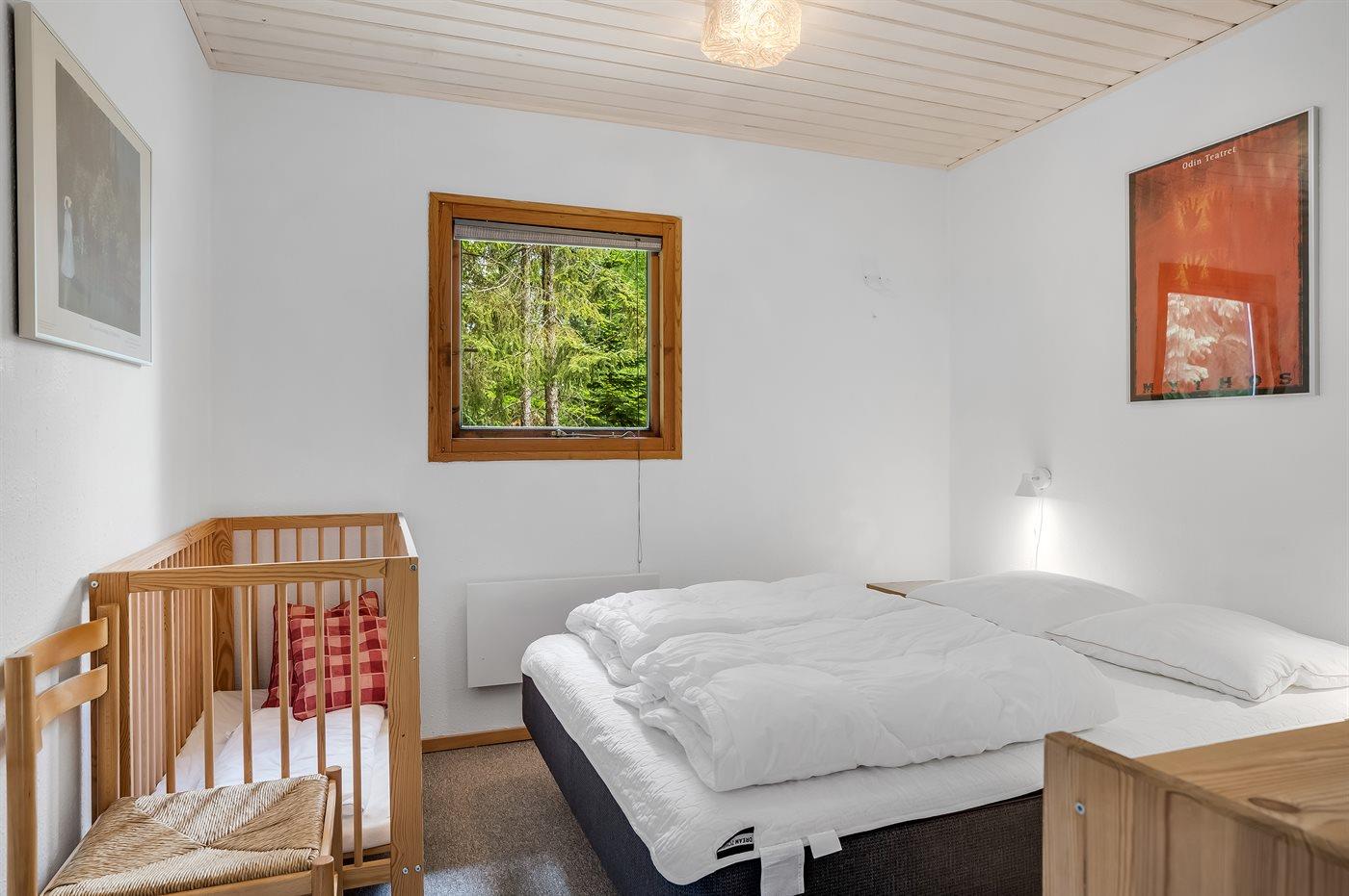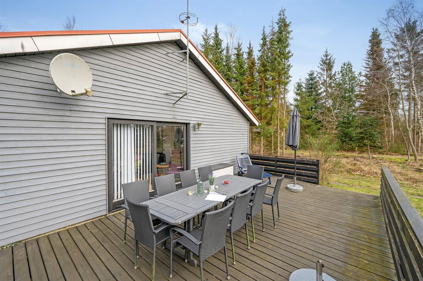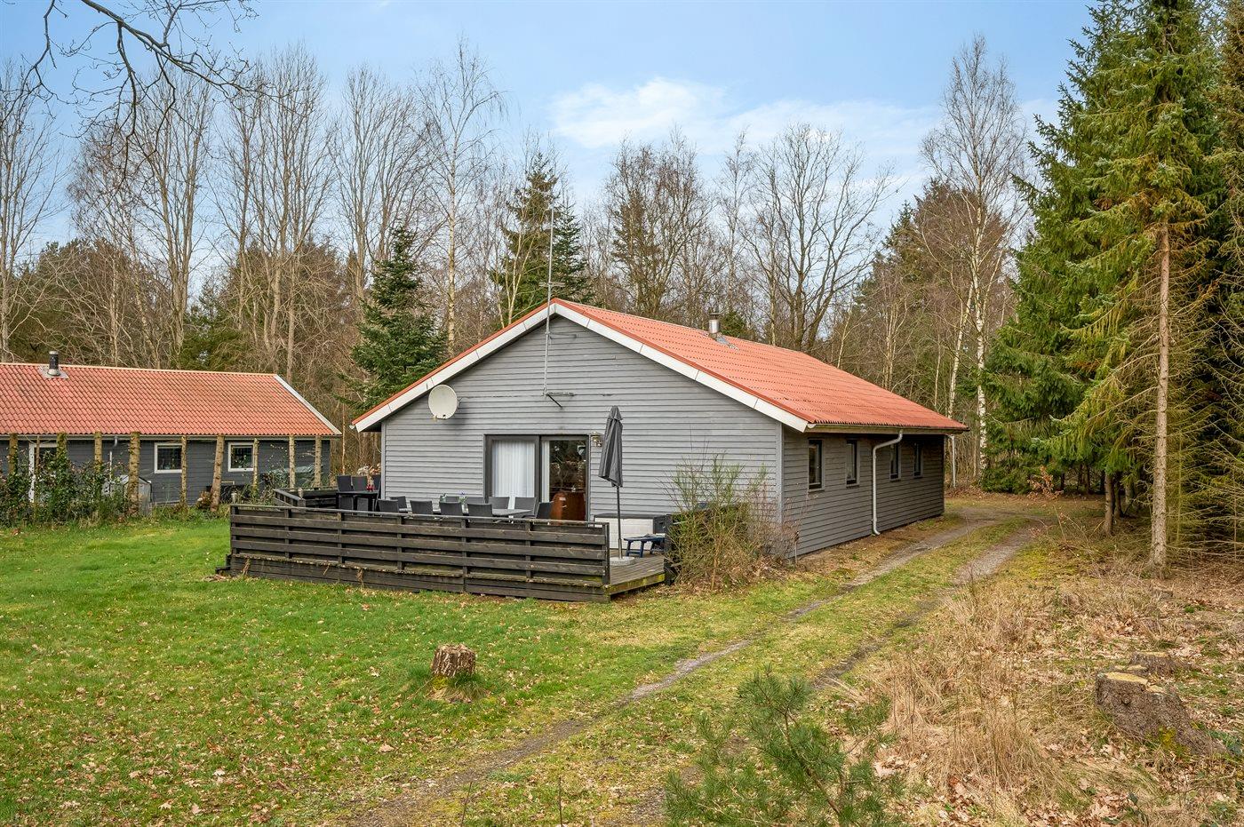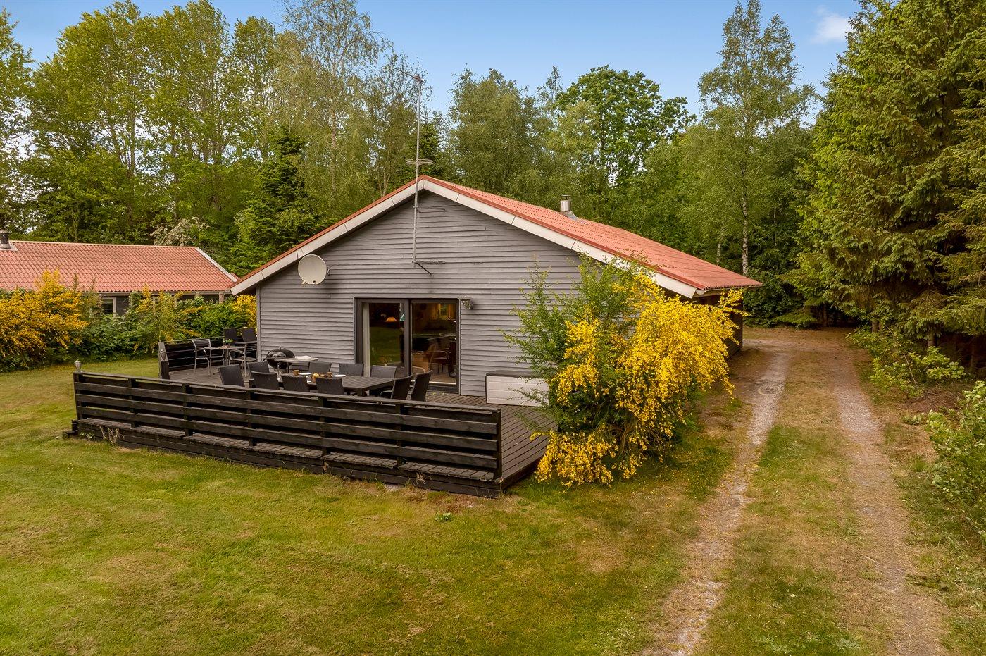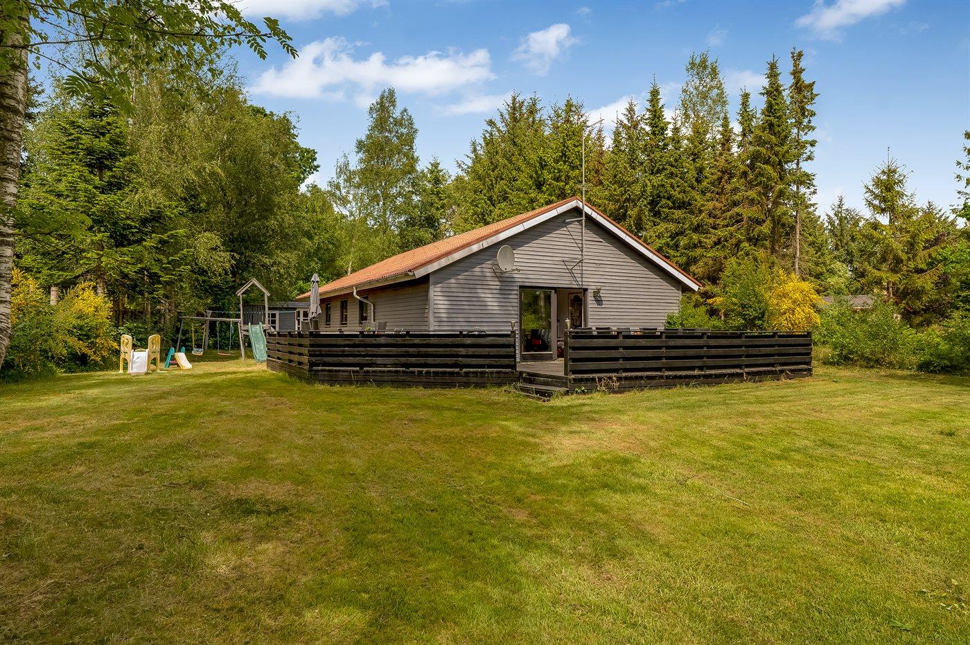 Kun 200 m fra vandet finder I dette hyggelige og børnevenlige sommerhus i træ med bl.a. spa og sauna, bygget i 1994 og moderniseret i 2010. Huset ligger på en skov-/plantagegrund med græs og høje træer samt sandkasse, gynger og legetårn med rutsjebane til børnene. Der findes en dejlig, afskærmet terrasse med havemøbler.