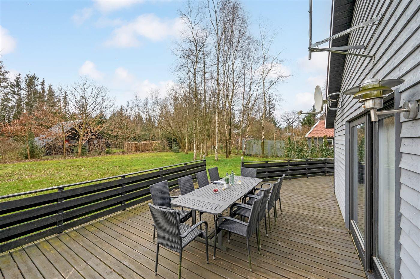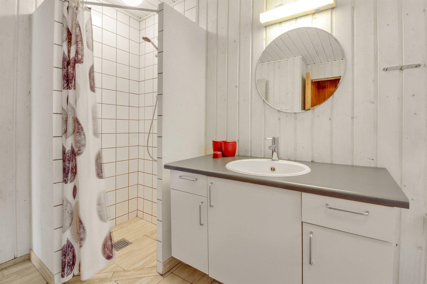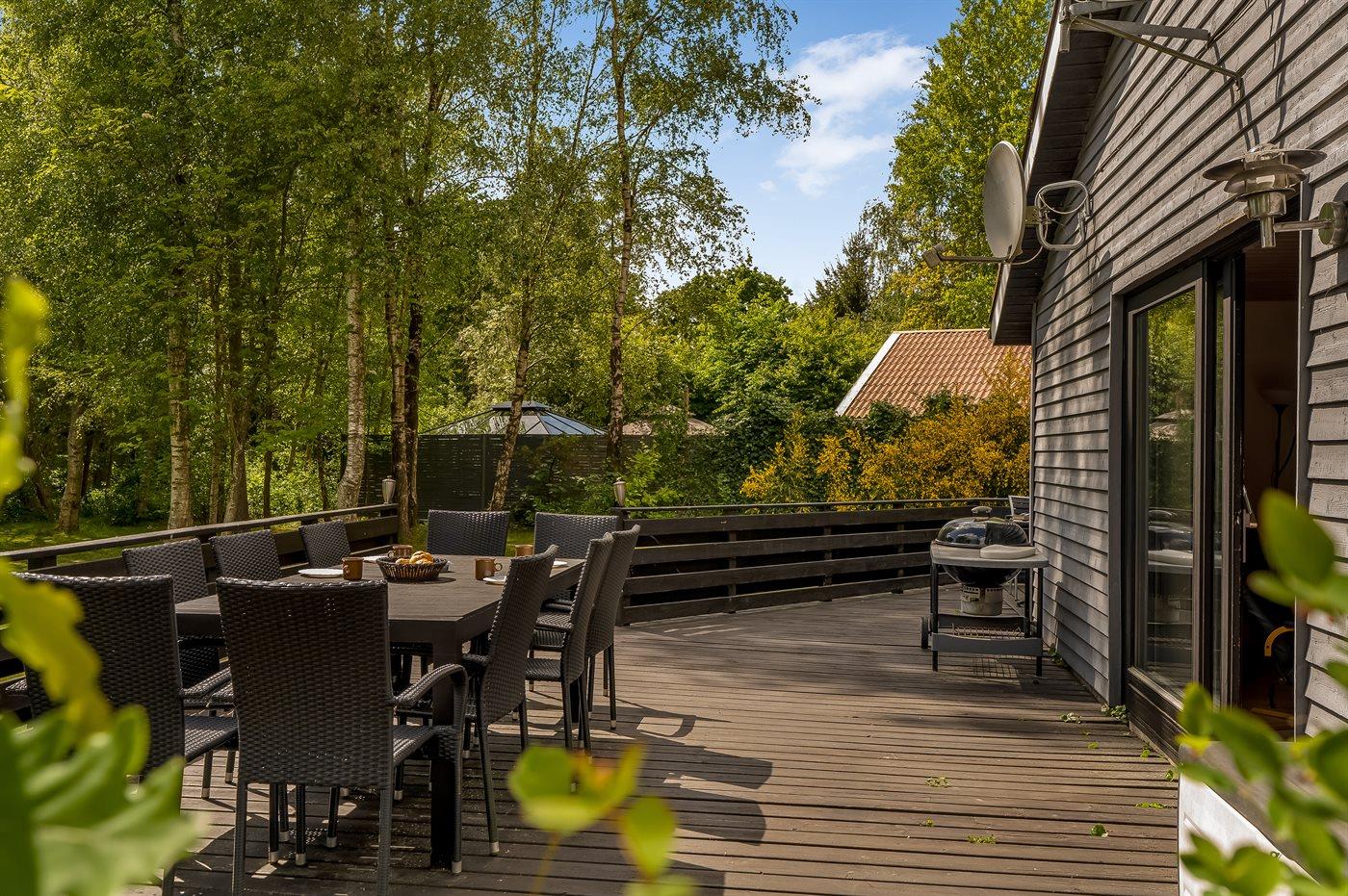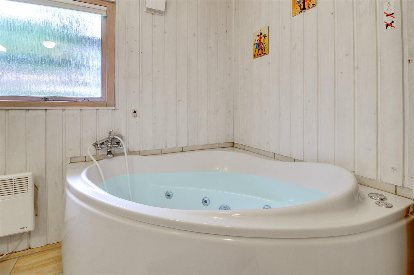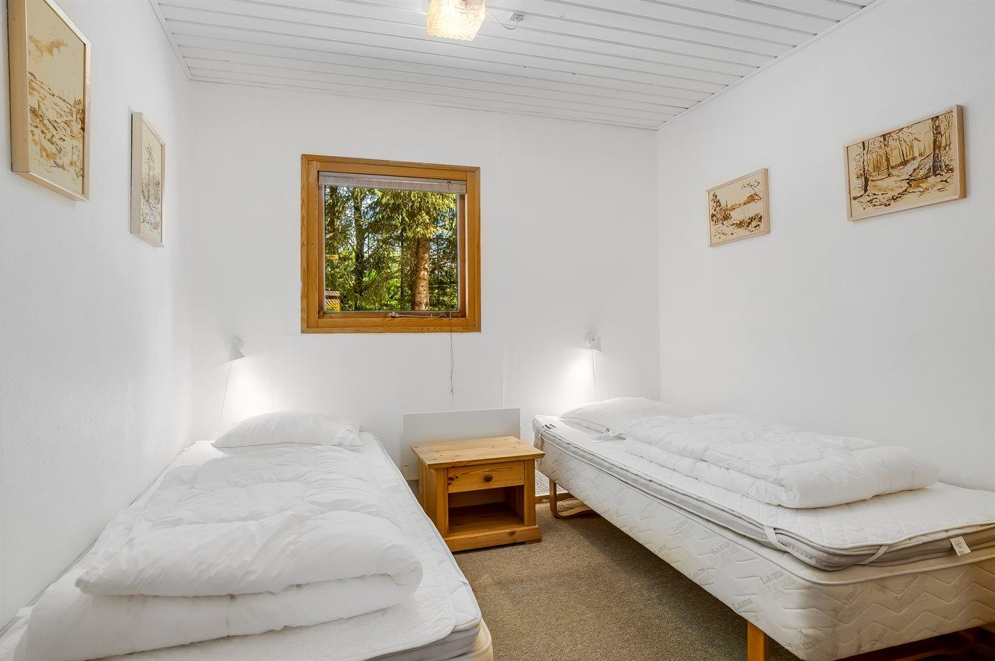 Kun 200 m fra vandet finder I dette hyggelige og børnevenlige sommerhus i træ med bl.a. spa og sauna, bygget i 1994 og moderniseret i 2010. Huset ligger på en skov-/plantagegrund med græs og høje træer samt sandkasse, gynger og legetårn med rutsjebane til børnene. Der findes en dejlig, afskærmet terrasse med havemøbler.