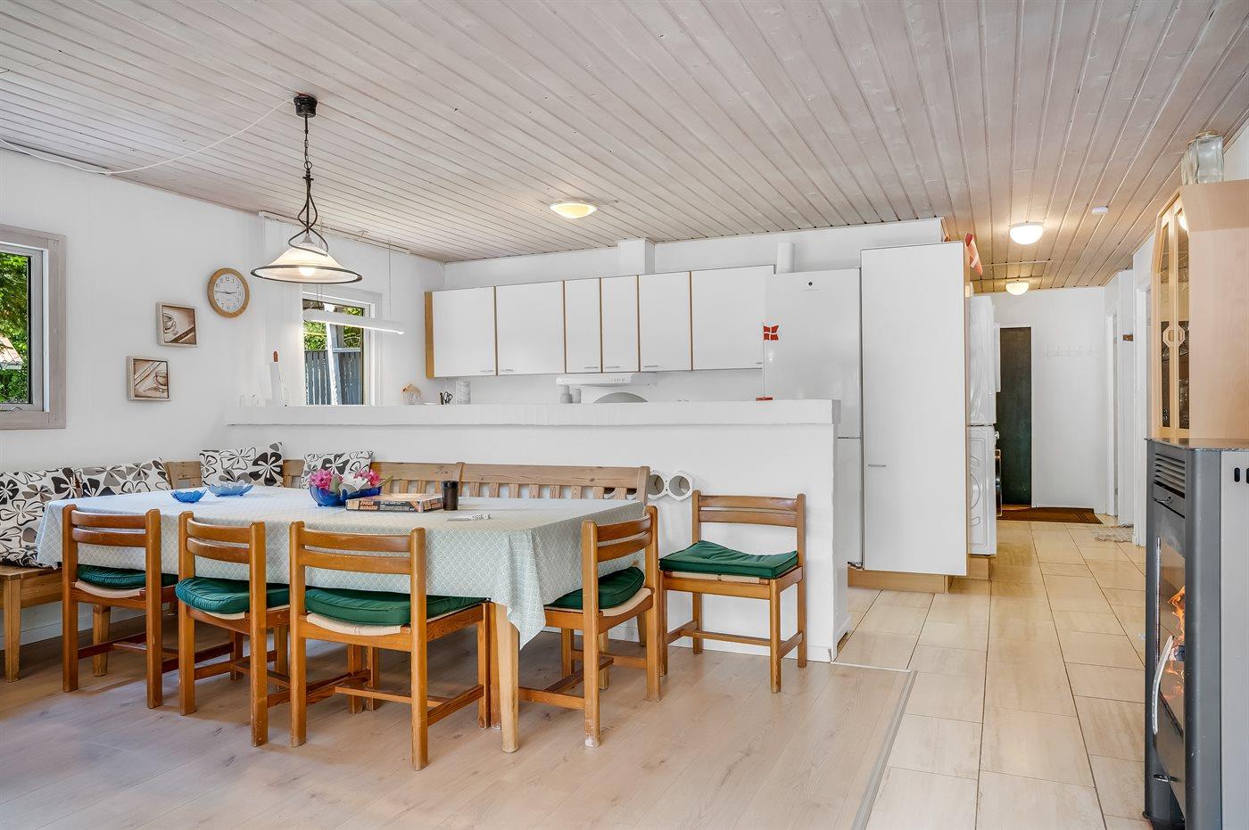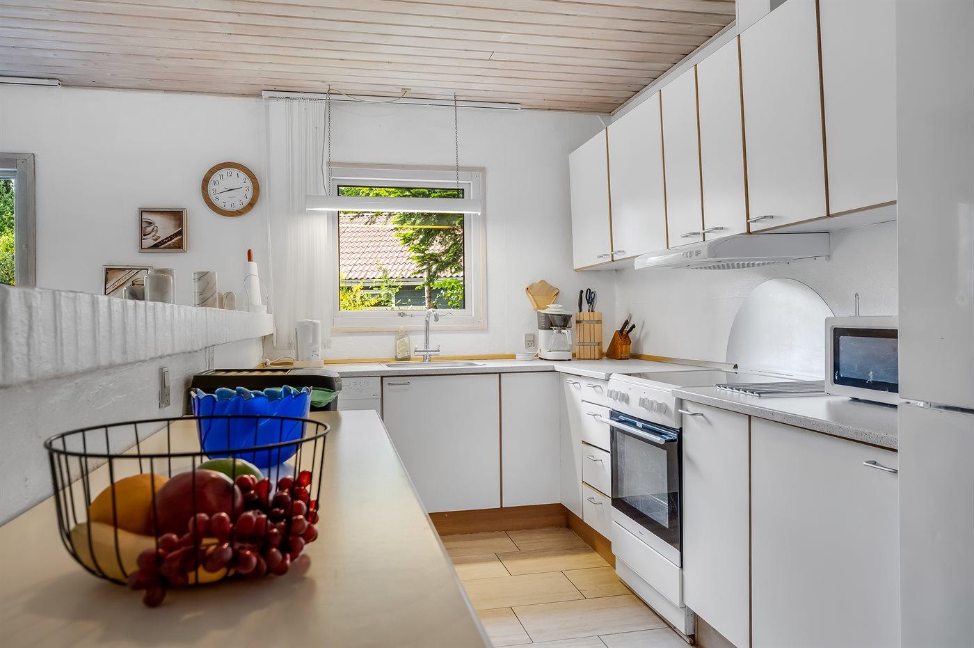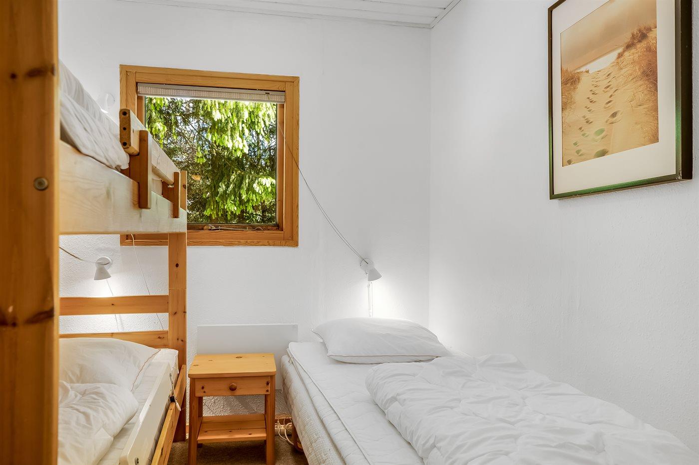 Det pæne og lyse køkken er bl.a. udstyret med opvaskemaskine, mikrobølgeovn, fryser, varmluftovn og komfur med keramiske kogeplader. I den hyggeligt indrettede opholdsstue, med direkte adgang til terrassen, finder I brændeovn, TV med parabol (digital), DVD-afspiller og stereoanlæg med CD-afspiller. Husets sovepladser fordeler sig på 5 værelser; 2 med dobbeltseng, 1 med 2 enkeltsenge, 1 med køjeseng og 1 med køjeseng samt 1 enkeltseng. Der findes 2 badeværelser med gulvvarme og bruser. I det ene finder I desuden 2-spa og der er adgang til husets sauna.