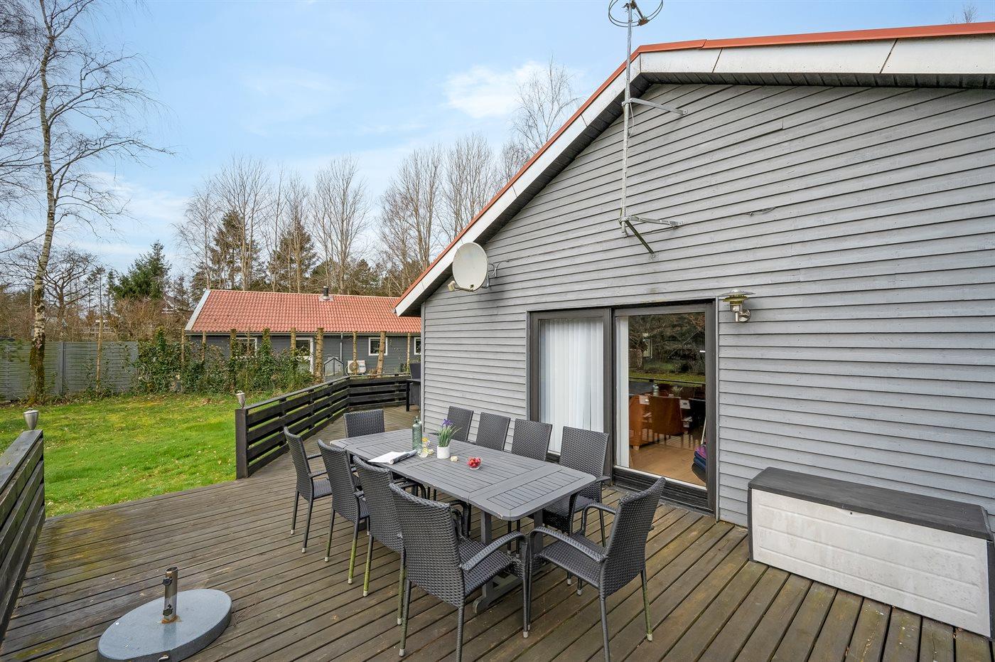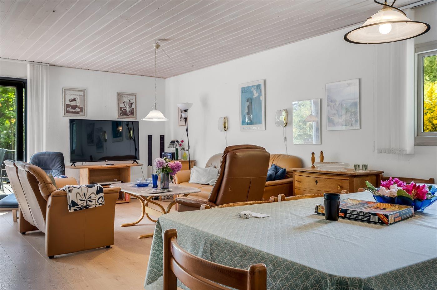 Hyggeligt sommerhus tæt på vandet med spa, sauna og aktivitetsrum på skovgrund i Virksund.
