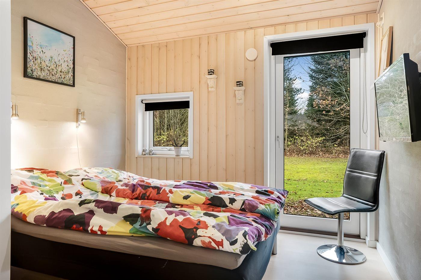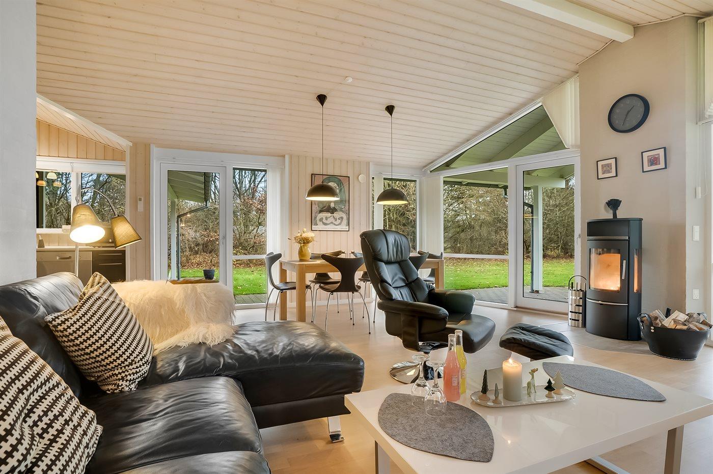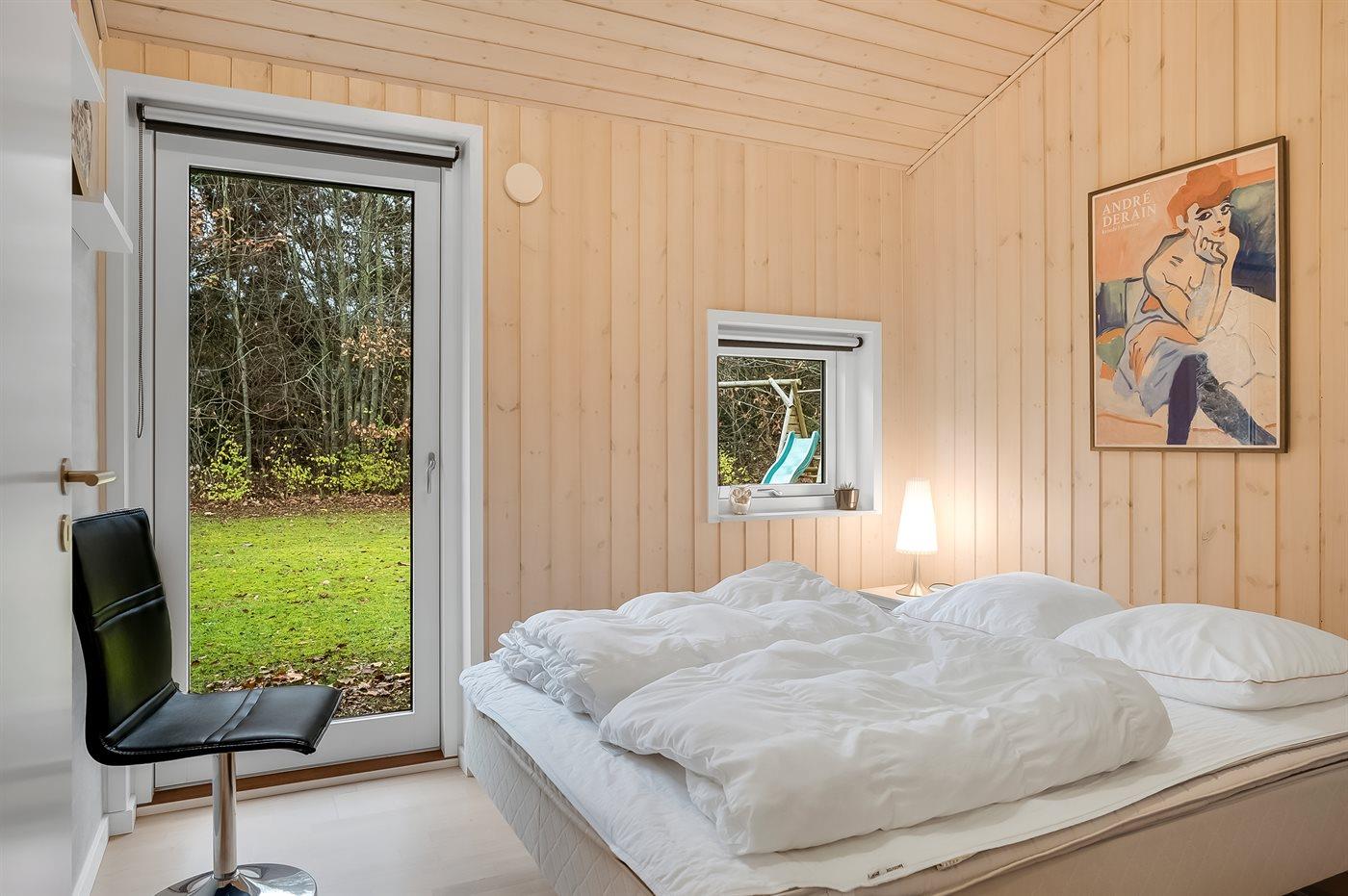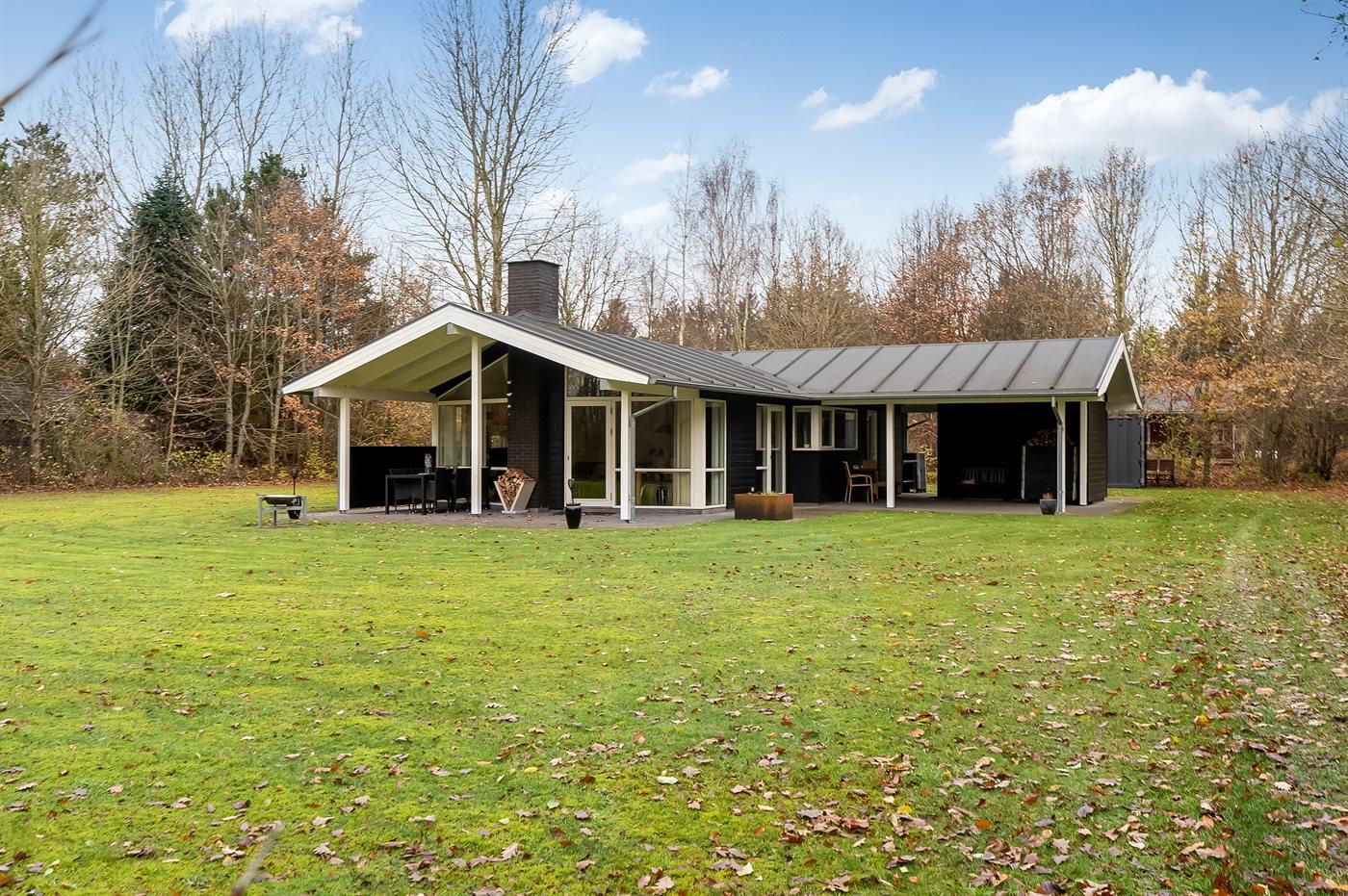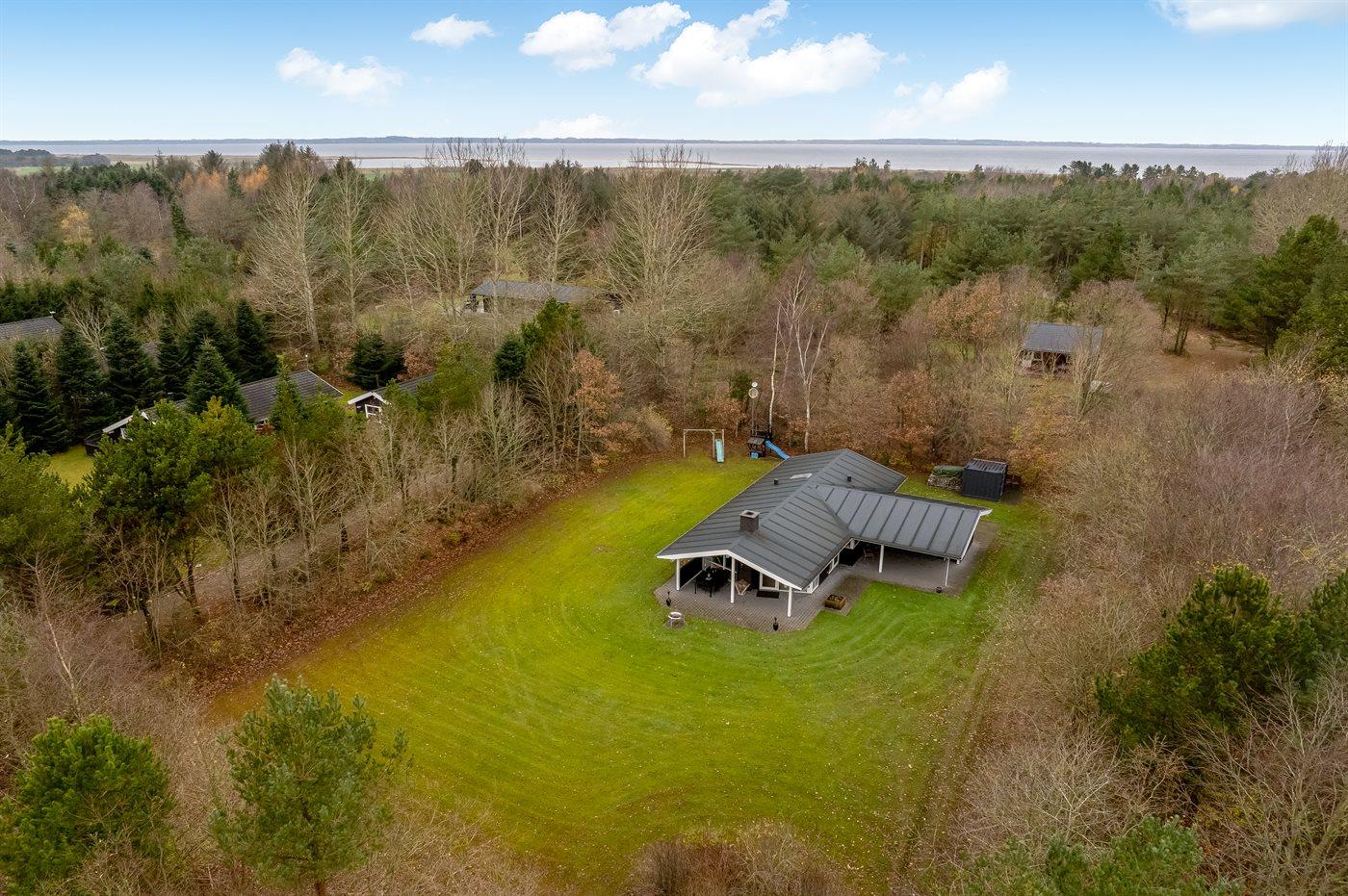 Ferieboligen er beliggende på en 2500 m² stor grund i skov/plantage. Der er 500 m til fjorden. Nærmeste forretning er beliggende i en afstand af 6000 m. Til ferieboligen hører åbent terrasseareal. Desuden er der overdækket terrasse. Gynge. Legetårn. Rutchebane. Grill til rådighed. Parkering ved ferieboligen.