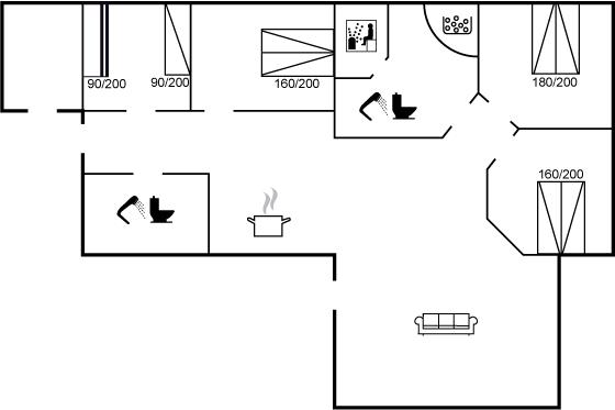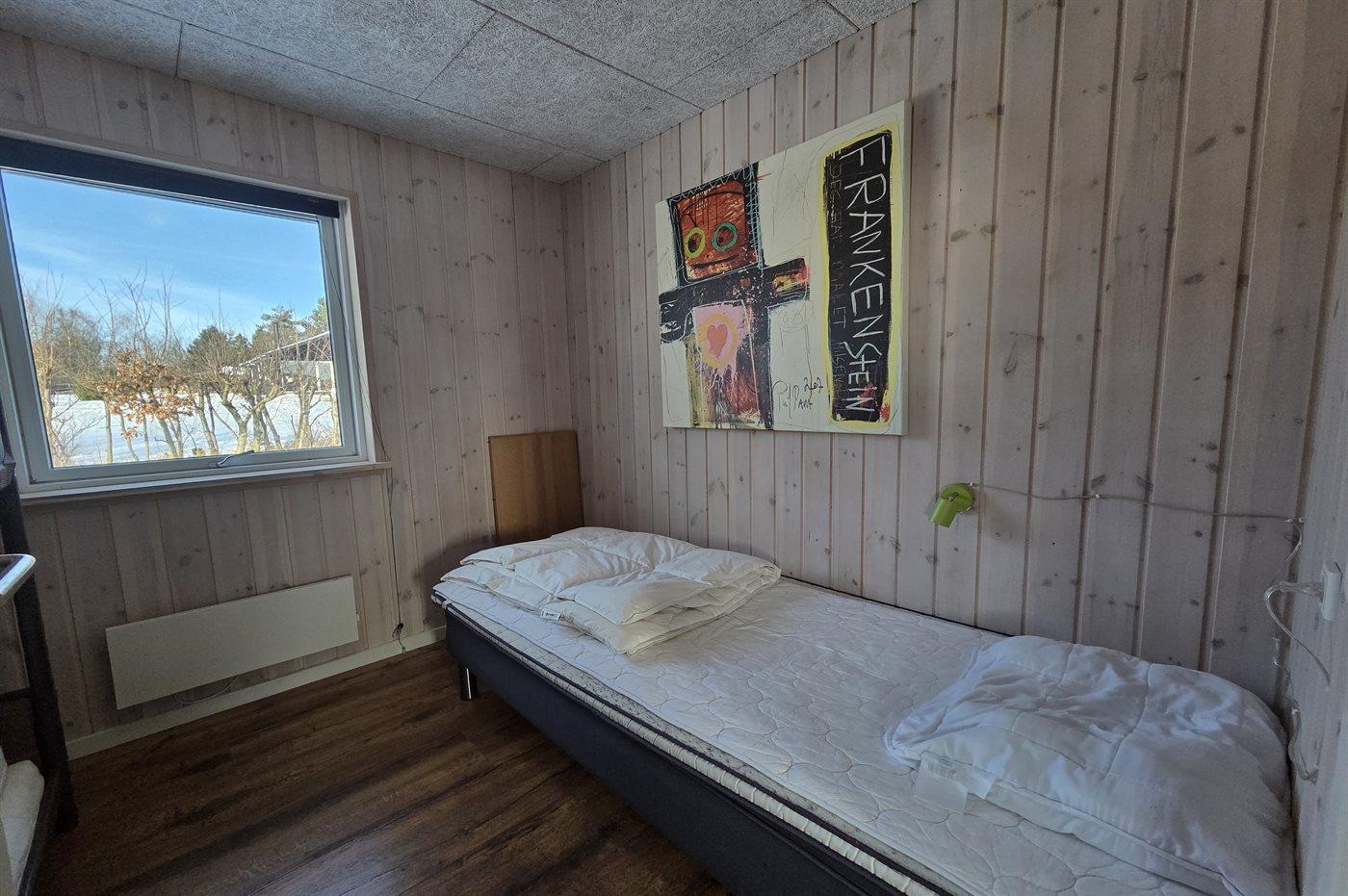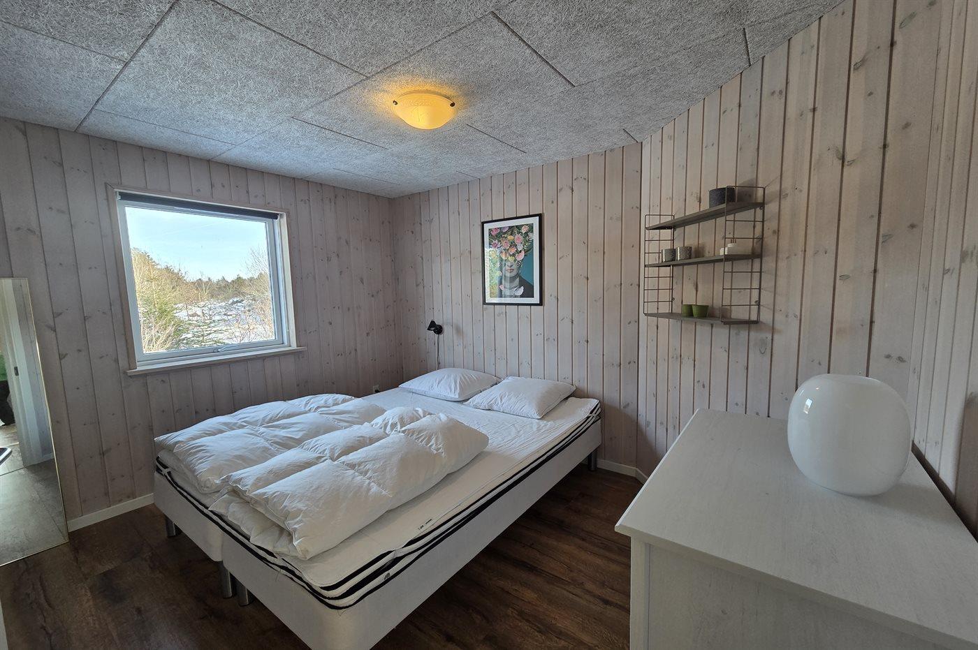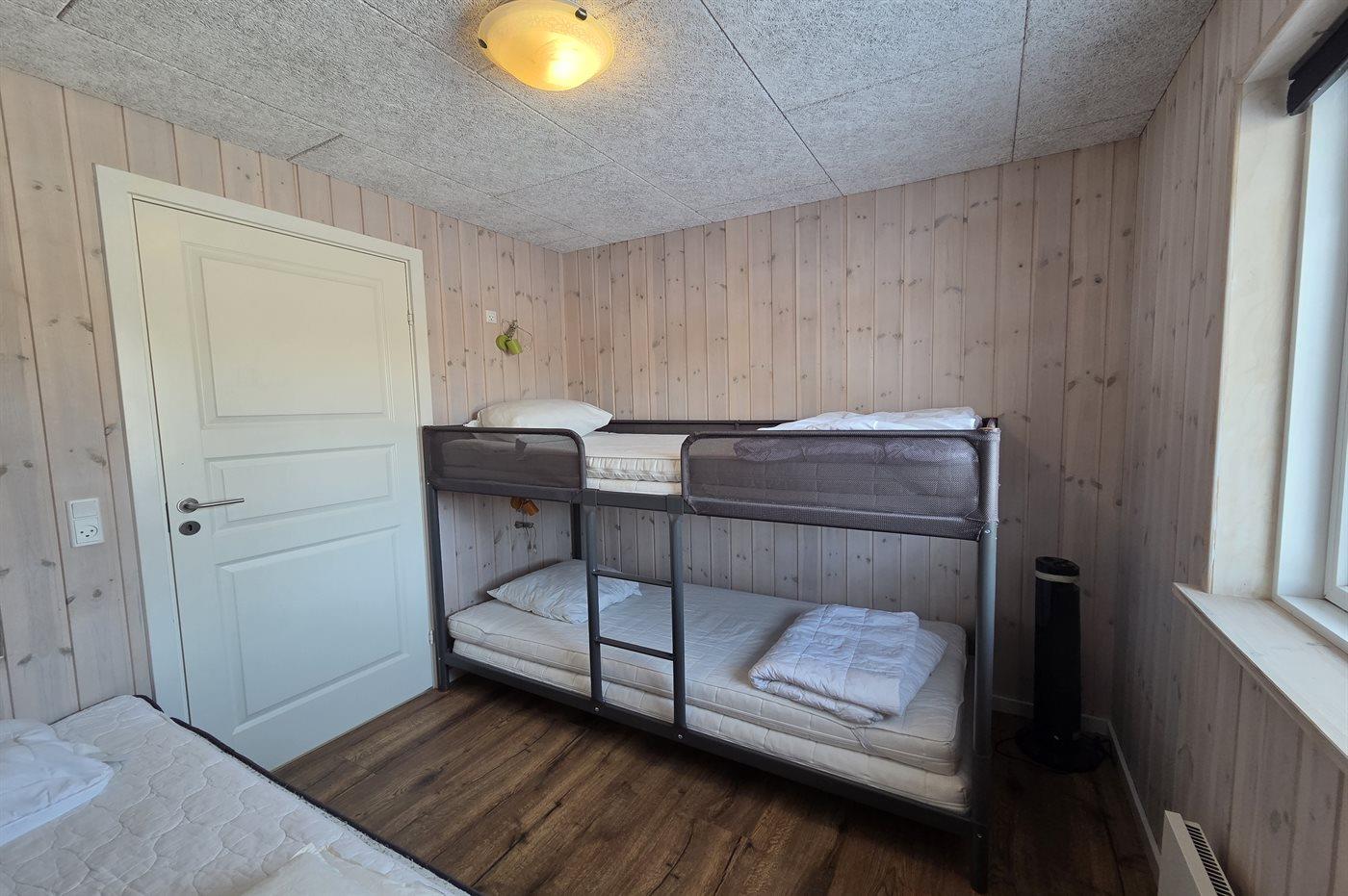 Der er i alt 4 soveværelser. Sovepladserne fordeler sig på: 6 sovepladser i dobbeltsenge. 1 soveplads i enkeltseng. 2 sovepladser i køjeseng.