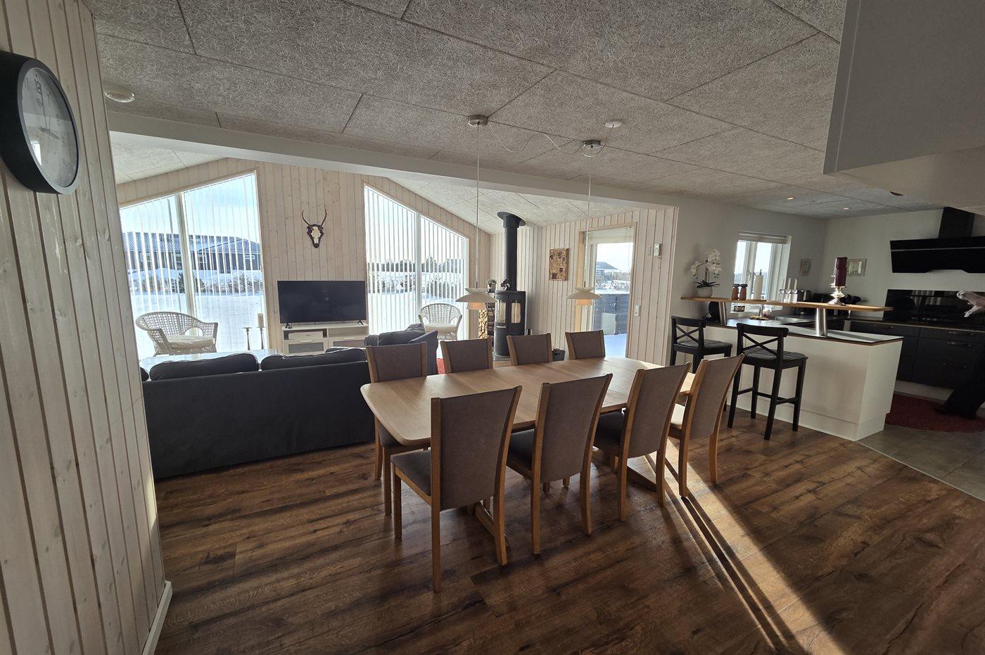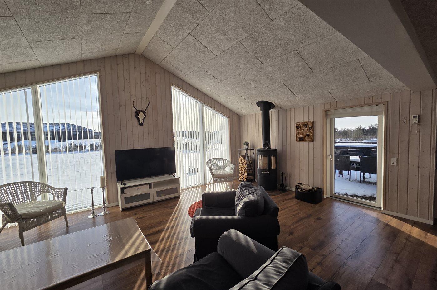 Sommerhuset egner sig til 9 personer. 2 af sovepladserne er kun egnet til større børn (4-11 år). Ferieboligen er på 117 m² og er bygget i 2019. Det er ikke tilladt at medbringe husdyr. Ferieboligen er udstyret med energibesparende luft til luft varmepumpe. Ferieboligen har vaskemaskine. Frysekapacitet på 80 liter. Der er desuden brændeovn.