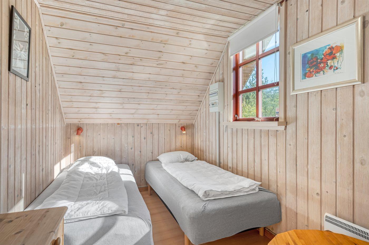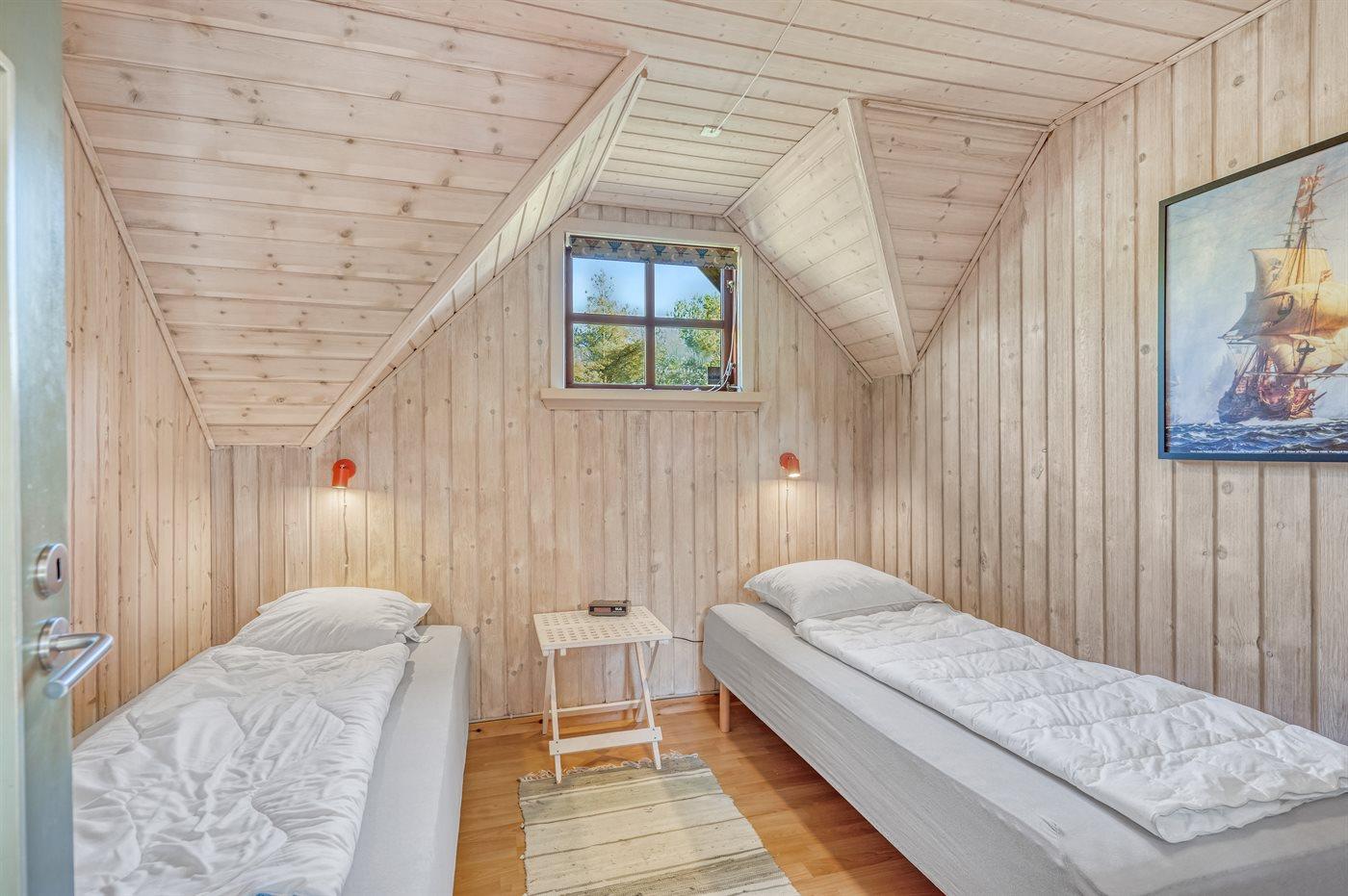 Der er i alt 2 soveværelser. Sovepladserne fordeler sig på: 5 sovepladser i enkeltsenge. Derudover er der 1 stk. barneseng.