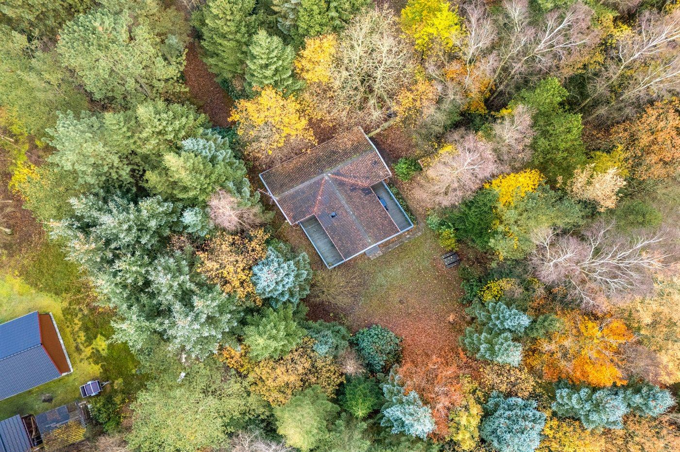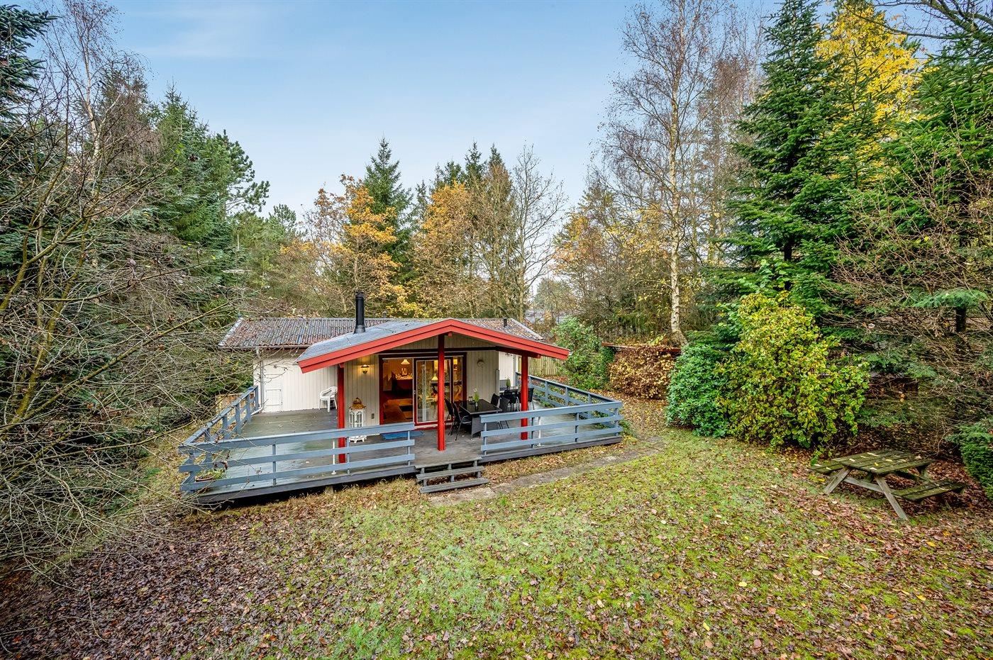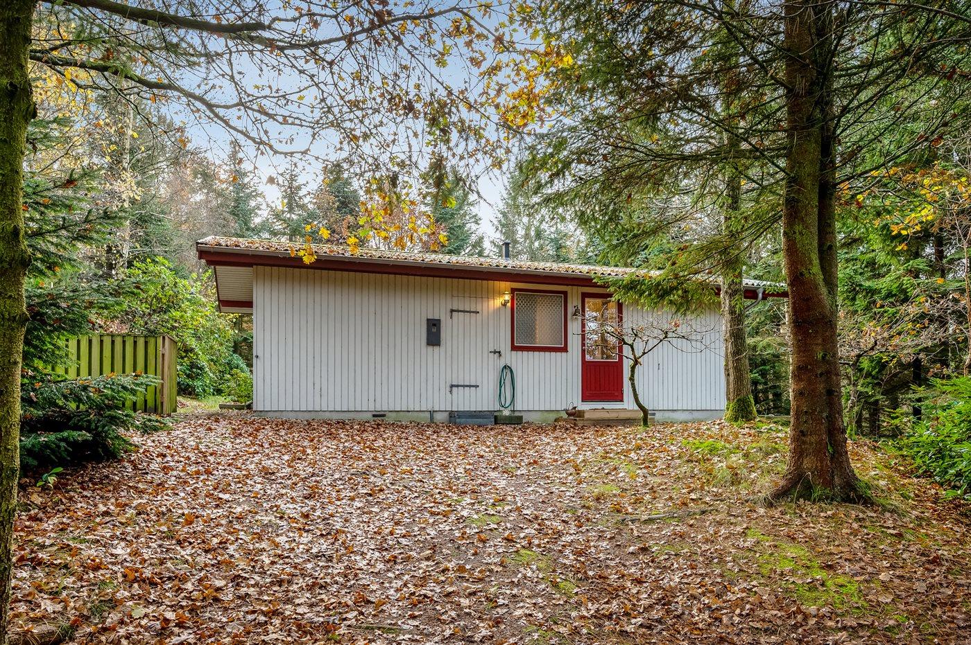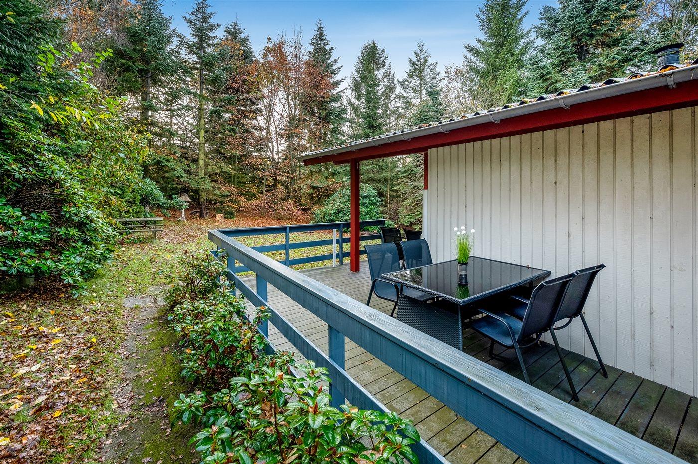 Ferieboligen er beliggende på en 5514 m² stor grund i skov/plantage. Grunden er indhegnet. Der er 600 m til fjorden. Der er en sø i en afstand af 300 m. Nærmeste forretning er beliggende i en afstand af 5000 m. Til ferieboligen hører åbent terrasseareal. Desuden er der overdækket terrasse. Parkering ved ferieboligen.