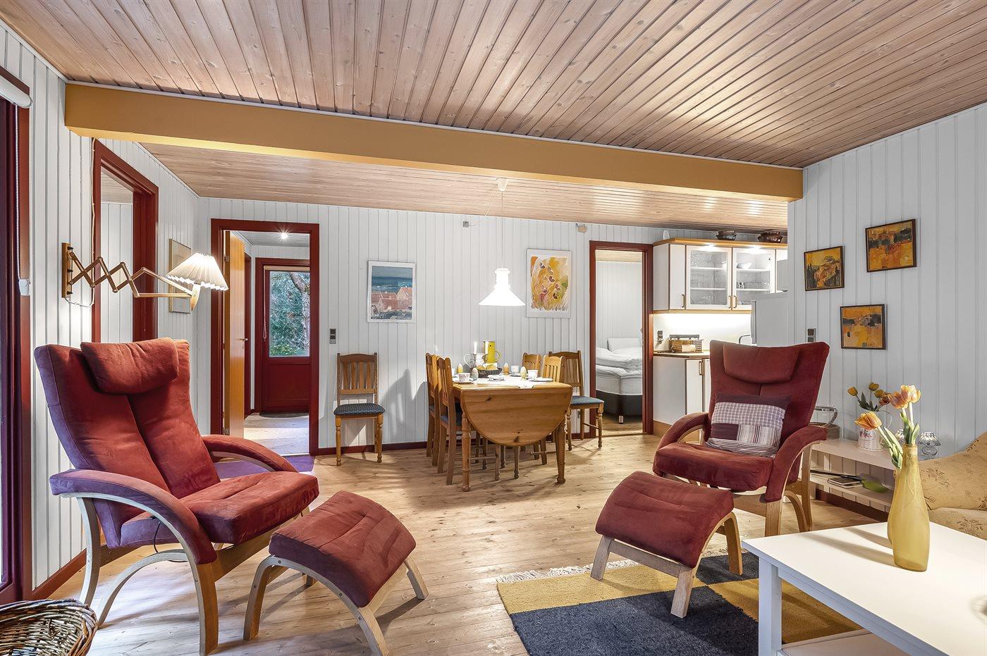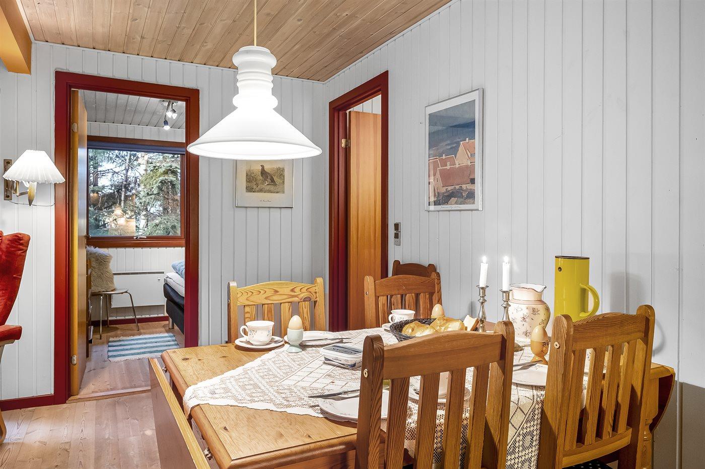 Sommerhuset egner sig til 6 personer. 2 af sovepladserne er kun egnet til større børn (4-11 år). Ferieboligen er på 75 m² og er bygget i 1980. Det er tilladt at medbringe 1 husdyr. Ferieboligen er udstyret med energibesparende varmepumpe. Frysekapacitet på 40 liter. Der er desuden brændeovn. Til de små er der 1 stk. barnestol.