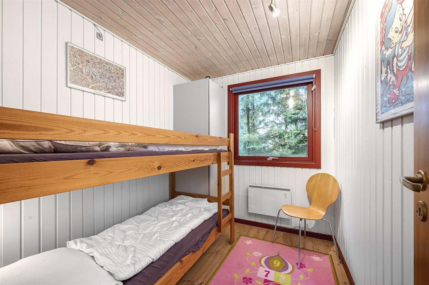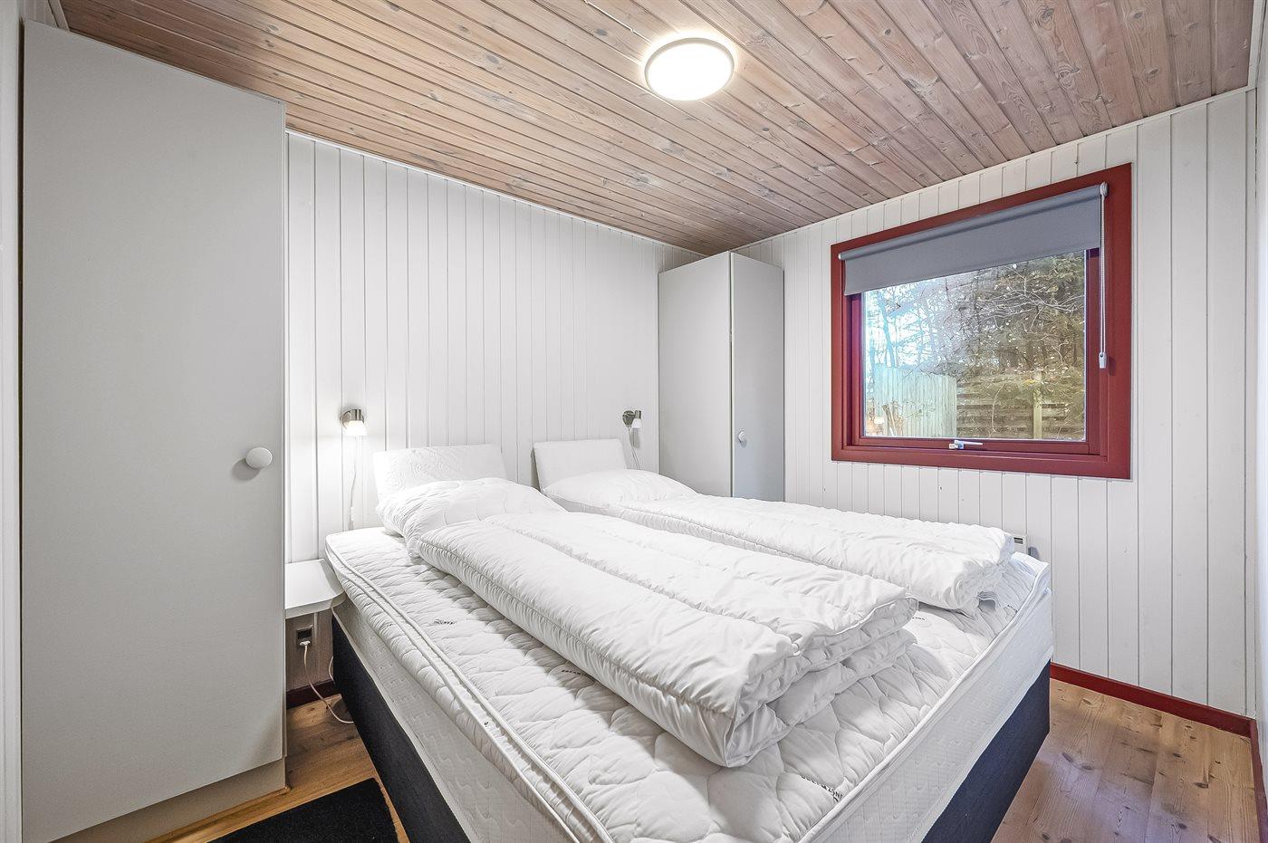 Der er i alt 3 soveværelser. Sovepladserne fordeler sig på: 4 sovepladser i dobbeltsenge. 2 sovepladser i køjeseng.