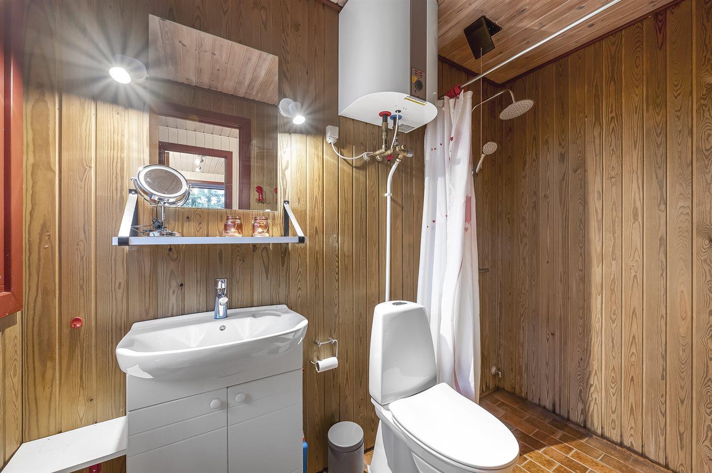 Der er 1 badeværelse med bruseniche og 1 toilet.. Der er gulvvarme på 1 badeværelse.