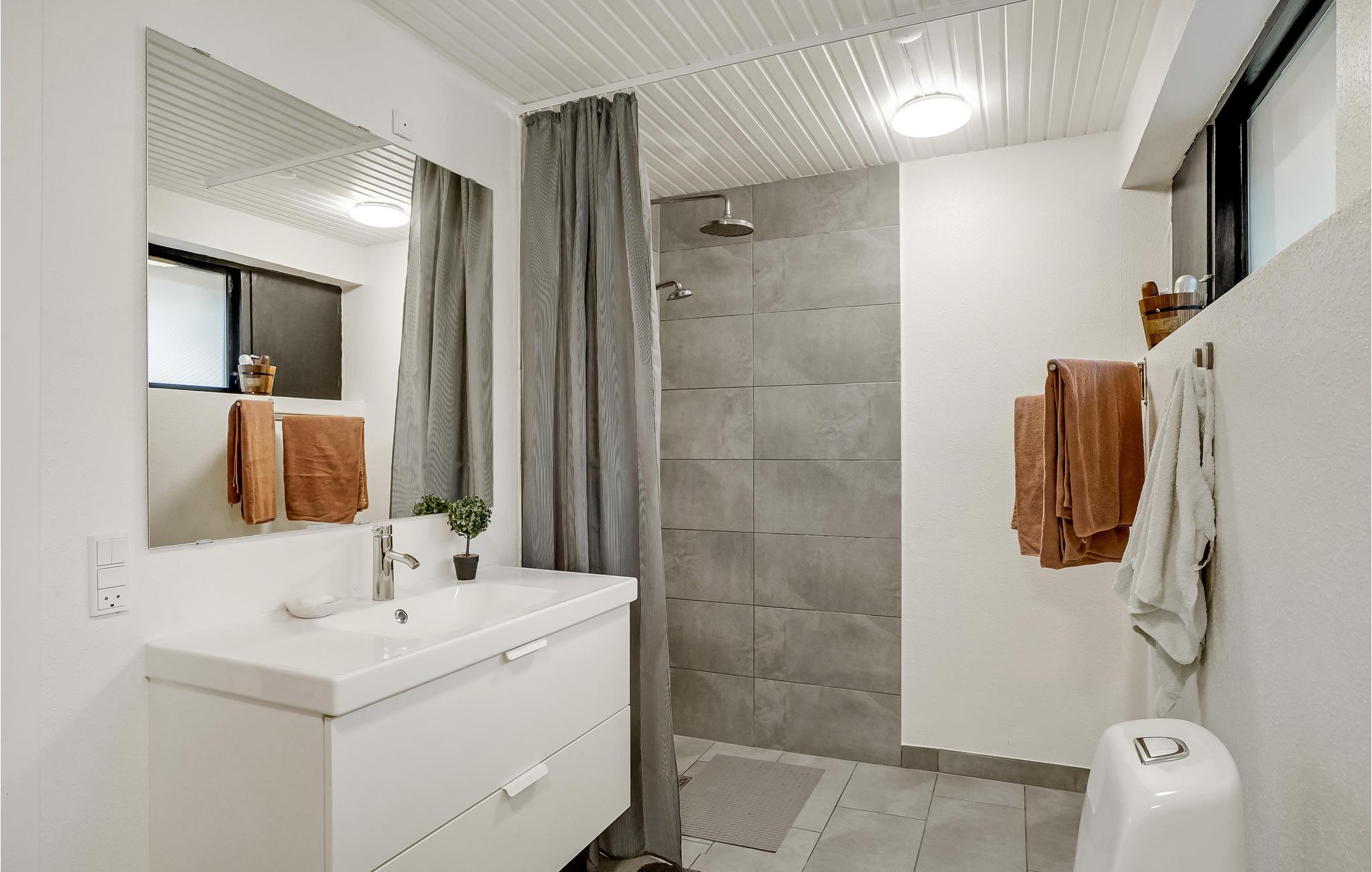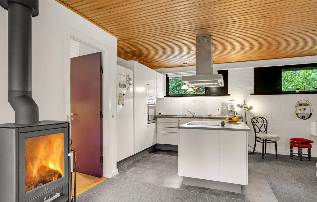 Dette veludstyrede feriehus ligger på en smuk naturgrund omgivet af træer. Det lyse interiør skaber en indbydende atmosfære. Nyd godt af de mange vinduer i stuen, som lukker masser af naturligt lys ind selv på overskyede dage. Nyd jeres feriemåltider med udsigt over det grønne og slap af om aftenen foran brændeovnen. Nyd jeres tid i det fredelige udendørsområde, hvor jeres børn og firbenede venner kan slå sig løs og lege. På en solskinsdag kan I slænge jer i hængekøjen med en god bog, mens jeres børnene spiller bold på græsplænen. Hele grunden er indhegnet, så I kan trygt lade børnene spæne rundt hele dagen, hvis det skulle være.