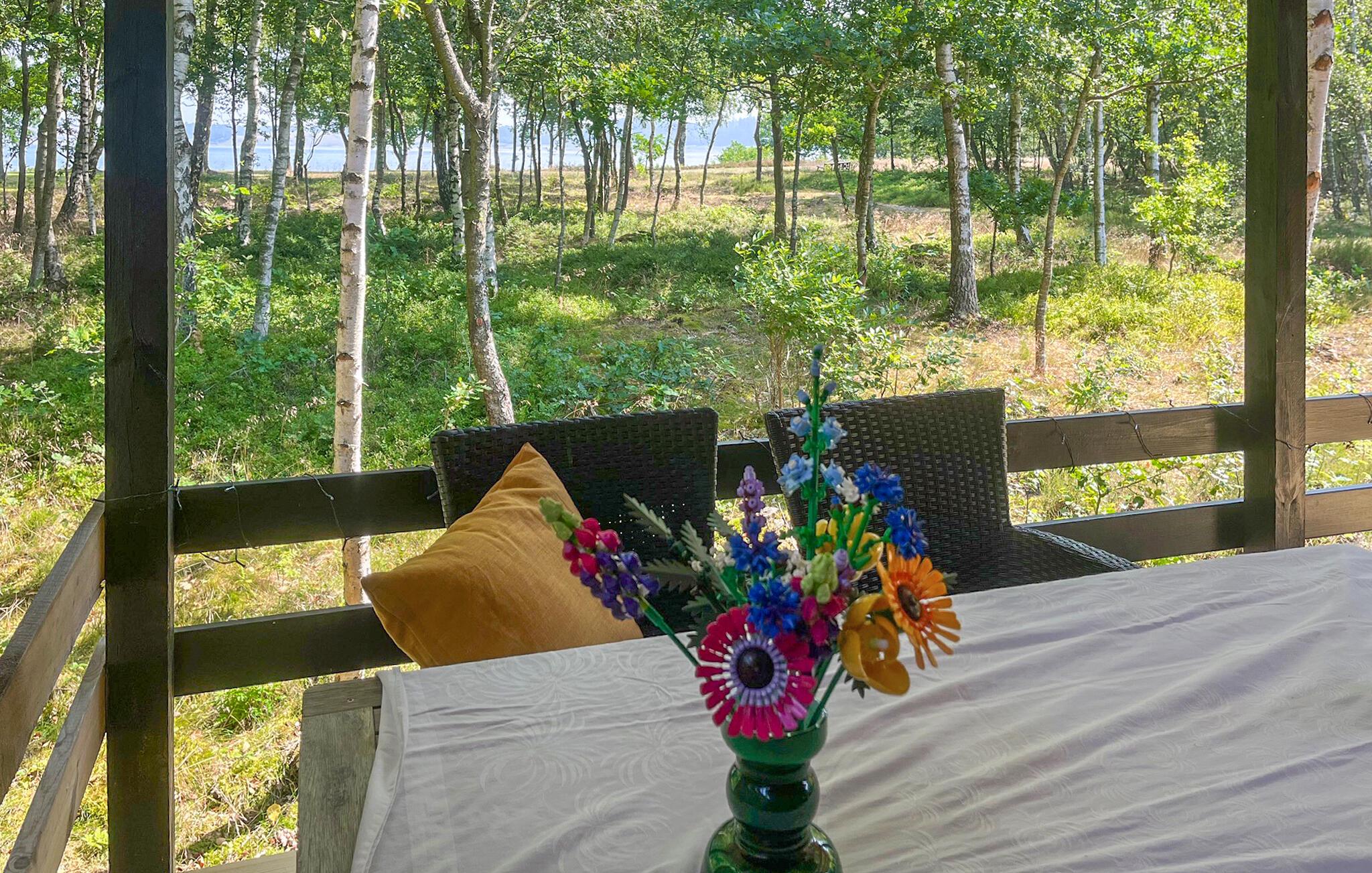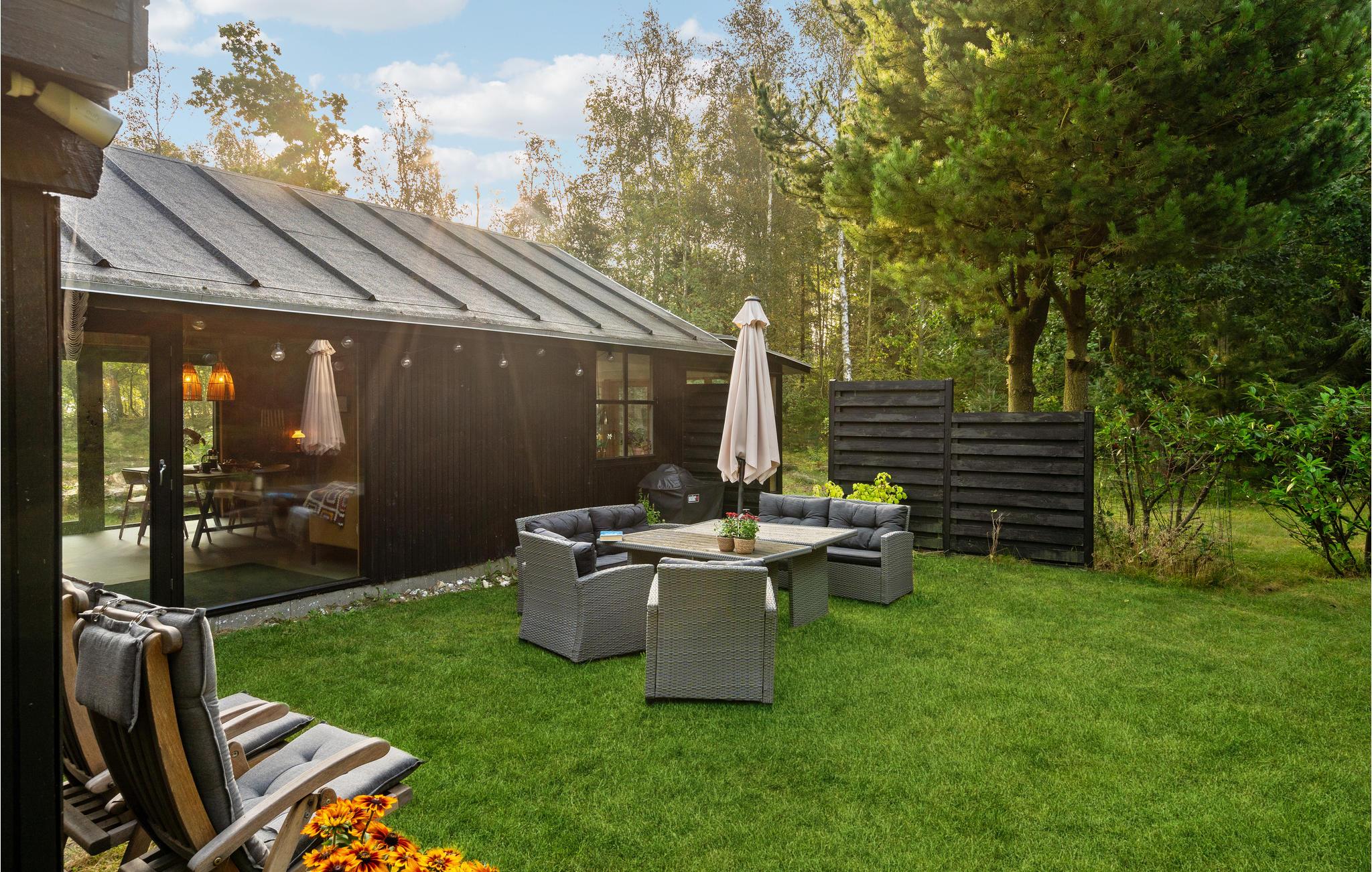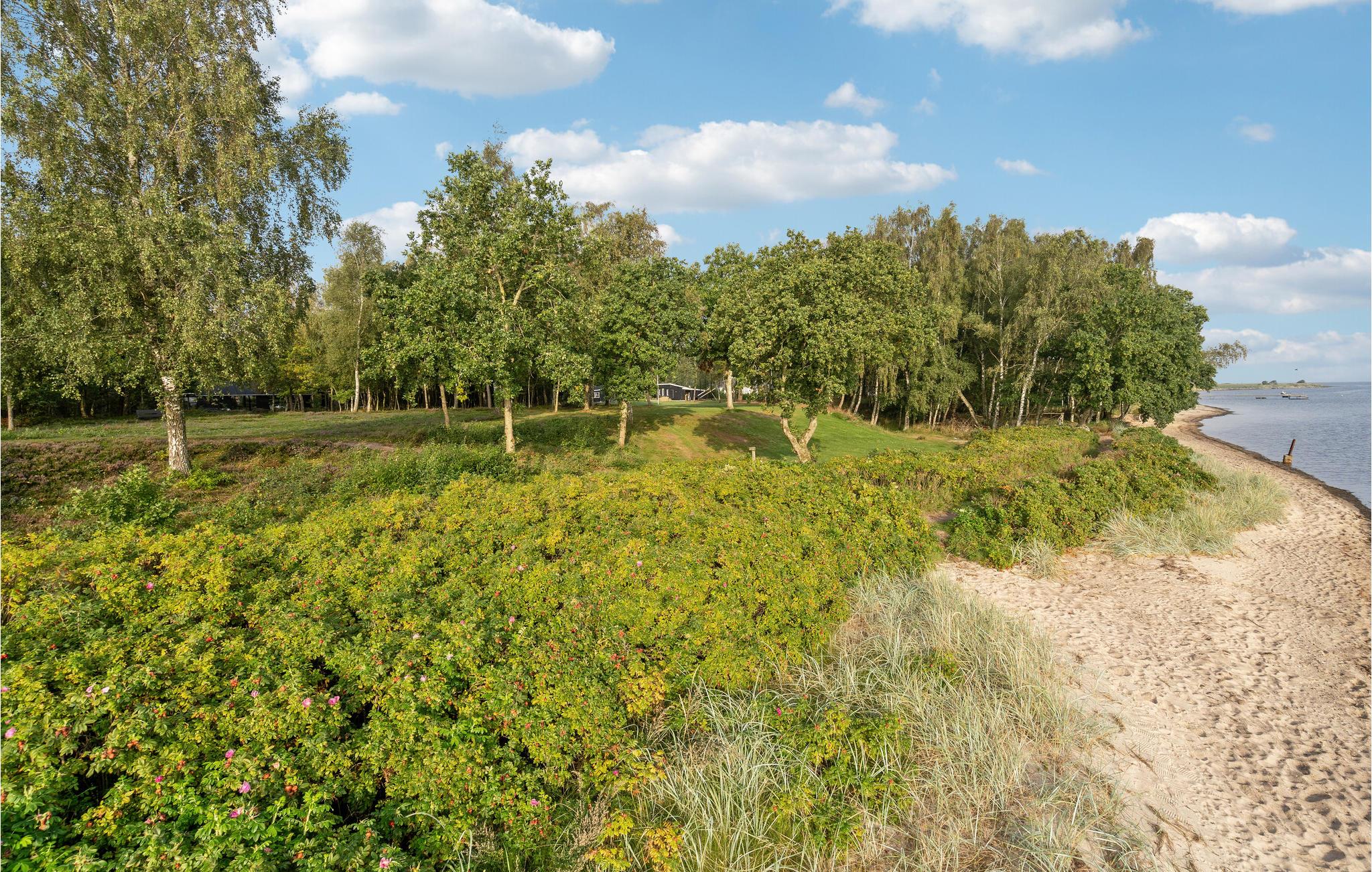 Hvis I er på udkig efter fred og ro i naturskønne omgivelser tæt på vandet, er dette skønne feriehus, smukt omkranset af store træer, det rigtige sted for jer! Nyd de gode aftentimer i den lyse stue, som har en stor vinduesfront og dermed udsigt over fjorden og de frodige omgivelser. Indenfor byder huset på en fremragende blanding af moderne design i naturfarver og en hyggelig familieatmosfære. Naturens nærhed er nærmest magisk, og når I spiser, føles det næsten som at sidde udenfor. Soveværelserne har deres individuelle charme og vil forsøde jeres drømme. I finder også underholdning og sjov i spillelokalet. Gå gennem den skovlignende have, hvor I også kan grille om aftenen, og ud til fjordstranden. Her kan I nyde den afsides beliggenhed og de få naboer og forfriske jer i vandet. Om aftenen kan I kaste fiskesnøren i vandet og bevise jeres evner med en fangst.