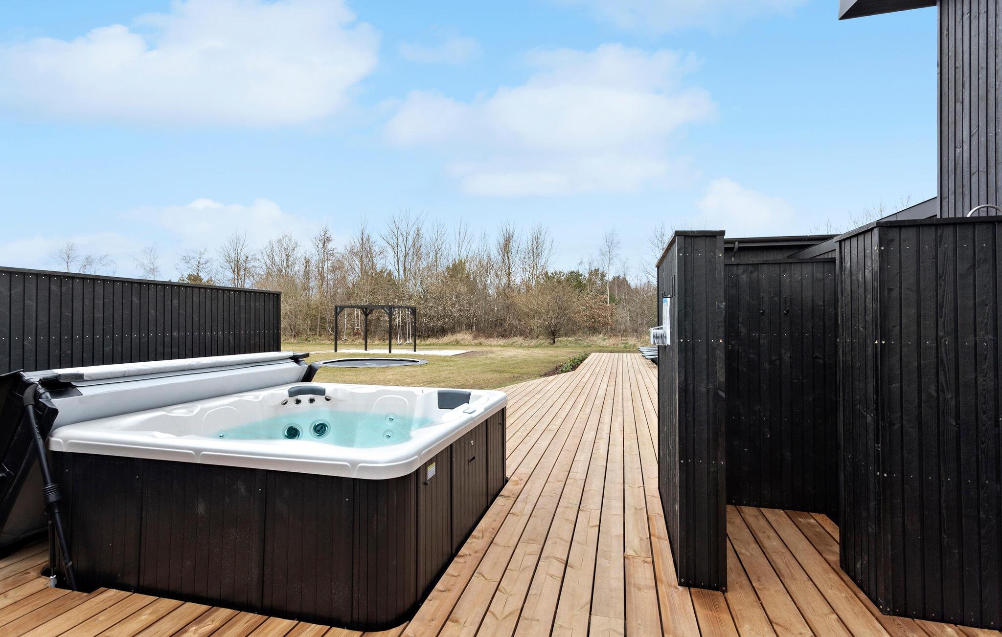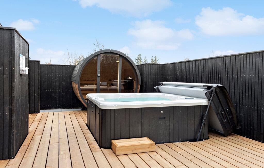 Nyd solen på den store terrasse eller slap af i det beskyttede wellnessområde med udendørs spabad og udendørs sauna. Se børnene spille på trampolinen eller score månedens feriemål ved fodbold. Tilbered aftensmaden på grillen og nyd udsigten over den rummelige have.