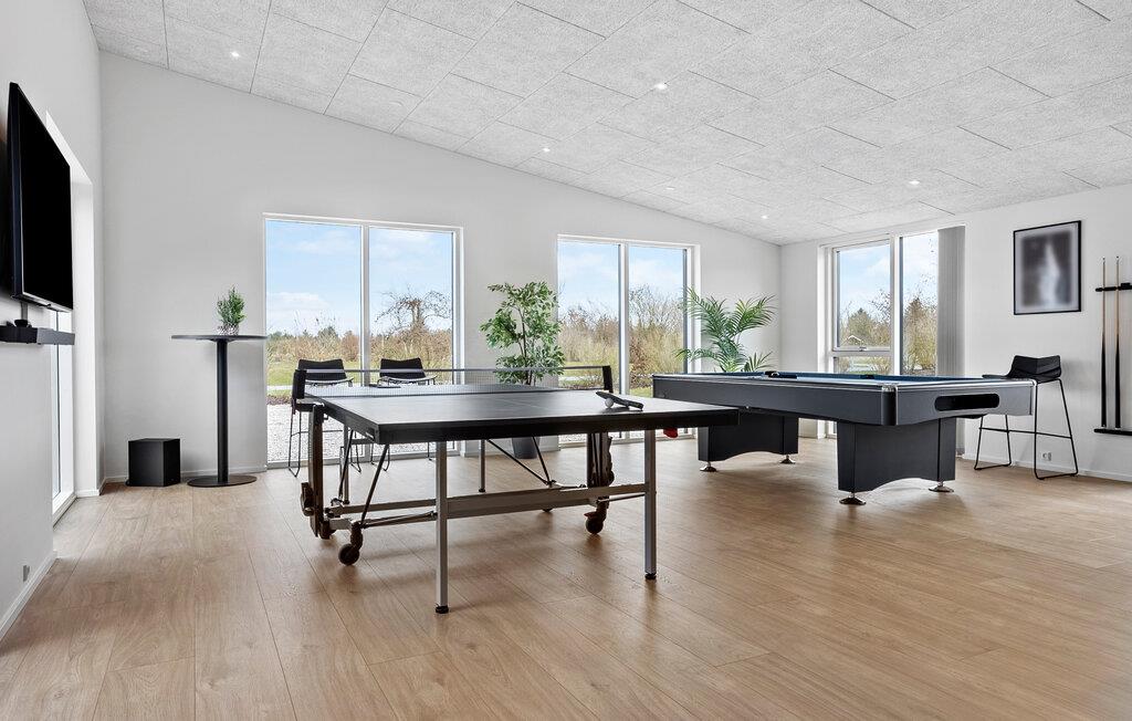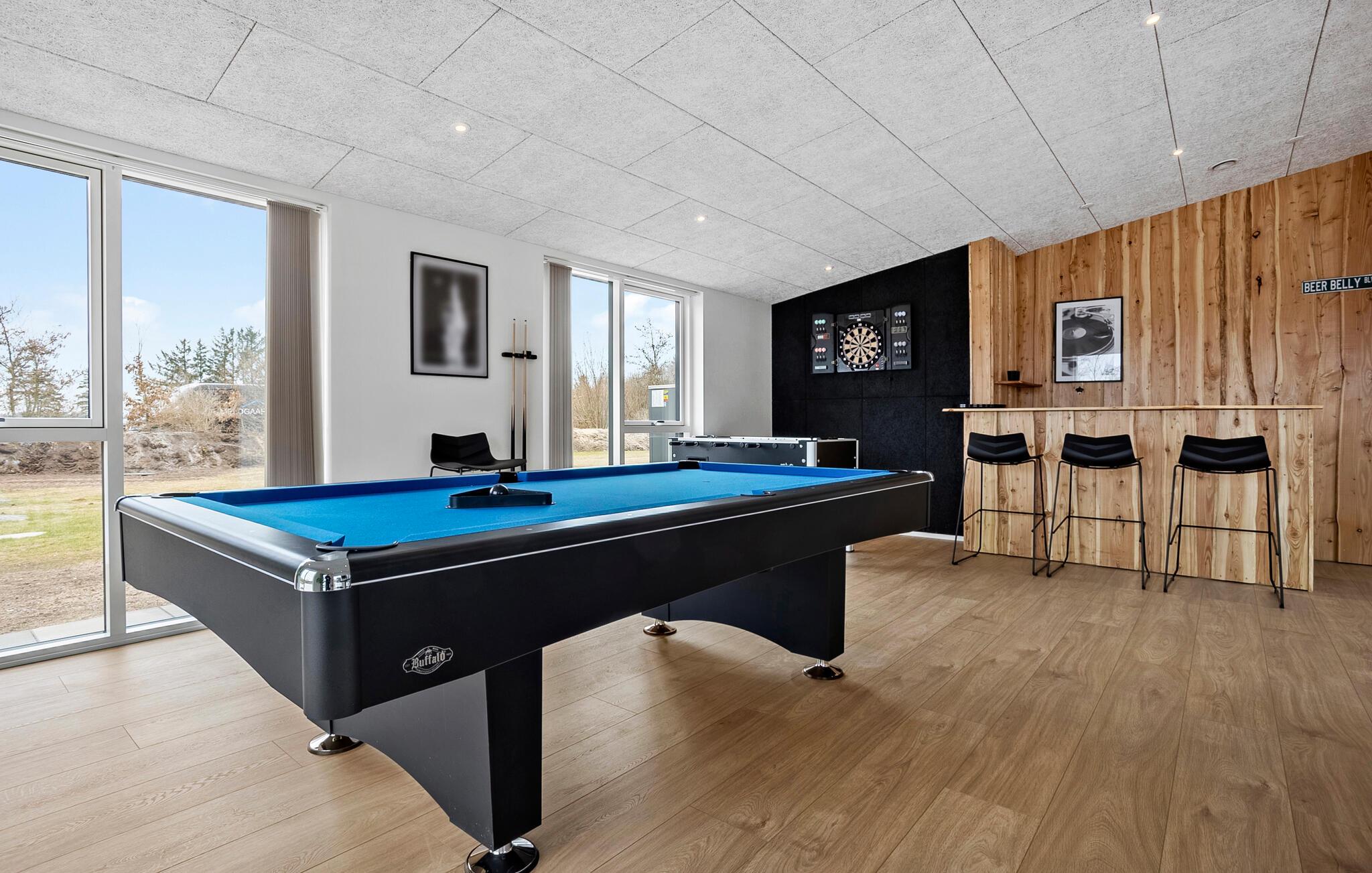 Rummeligt feriehus i Virksund med wellness, indendørs pool, sauna og aktivitetsrum til afslapning og sjov.
