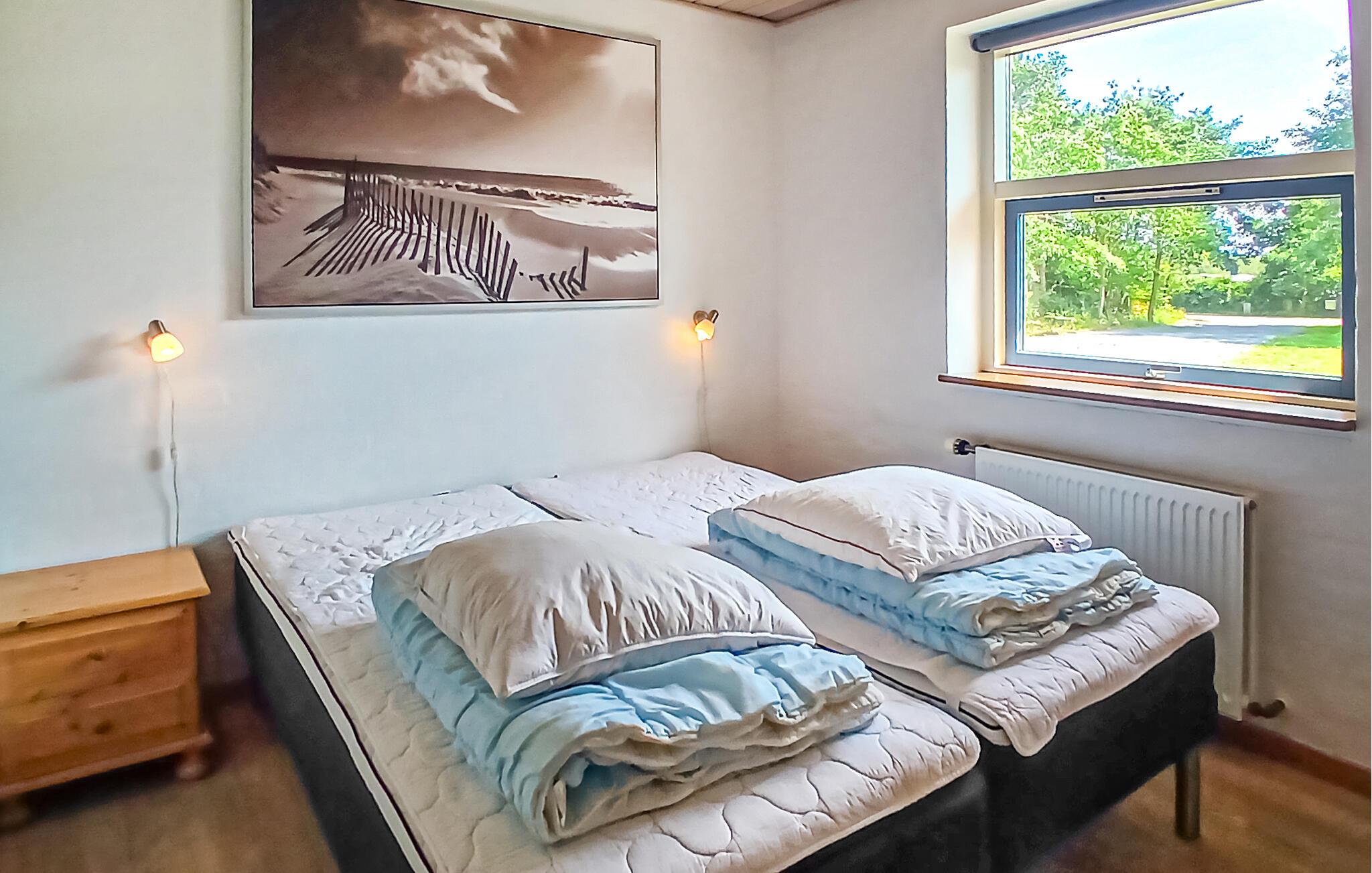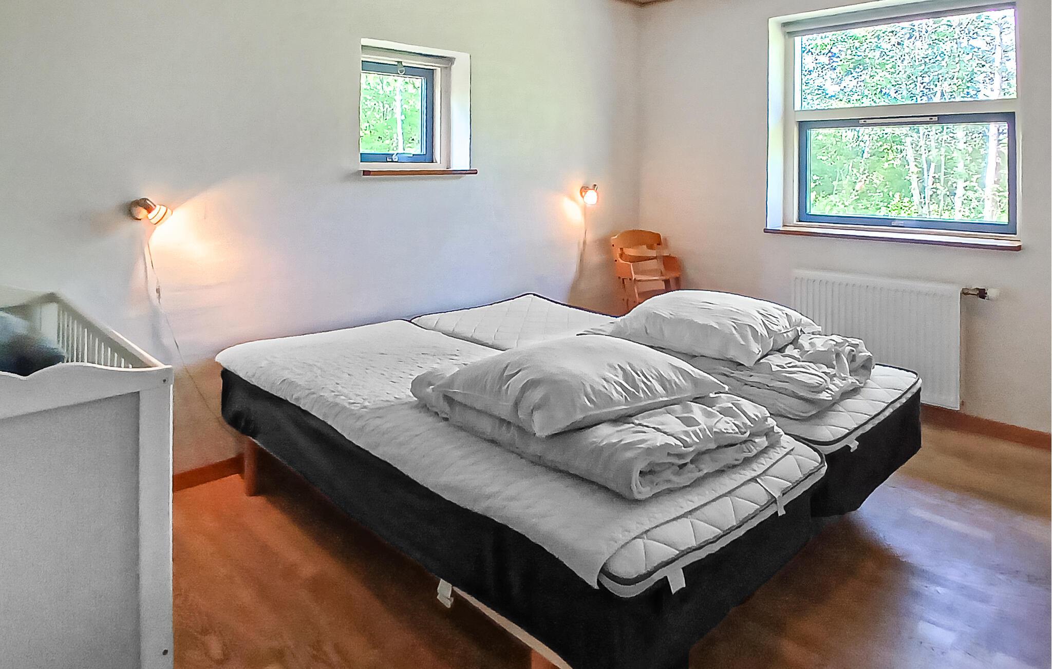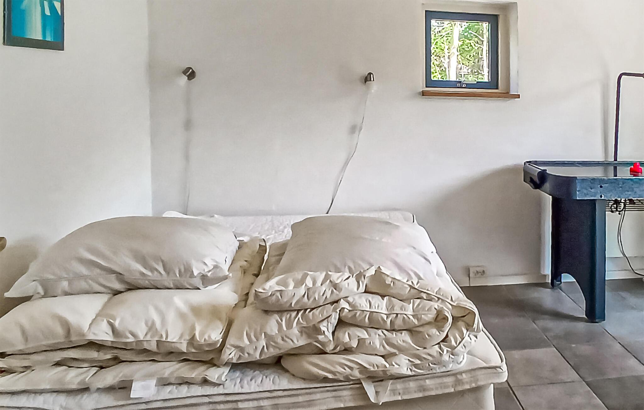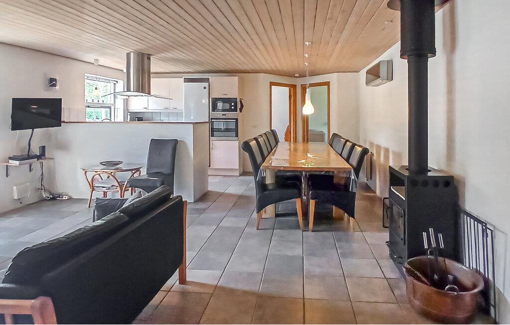 Dette lyse og veludstyrede feriehus tilbyder de bedste betingelser for en vellykket ferie med børn. Det ligger nær Limfjorden og er omgivet af frodige grønne områder. Hyg jer sammen i den åbne stue og spisestue. Tilbring tid sammen ved det lange spisebord, eller slap af på sofaerne med en filmaften. Nyd varmen fra brændeovnen på køligere dage. Det åbne køkken er funktionelt indrettet og tilbyder udsigt over haven. Lav mad sammen, og brug pladsen til hyggelige madlavningsaftener. Et separat rum med bordfodbold og airhockey sørger for sjov og leg.