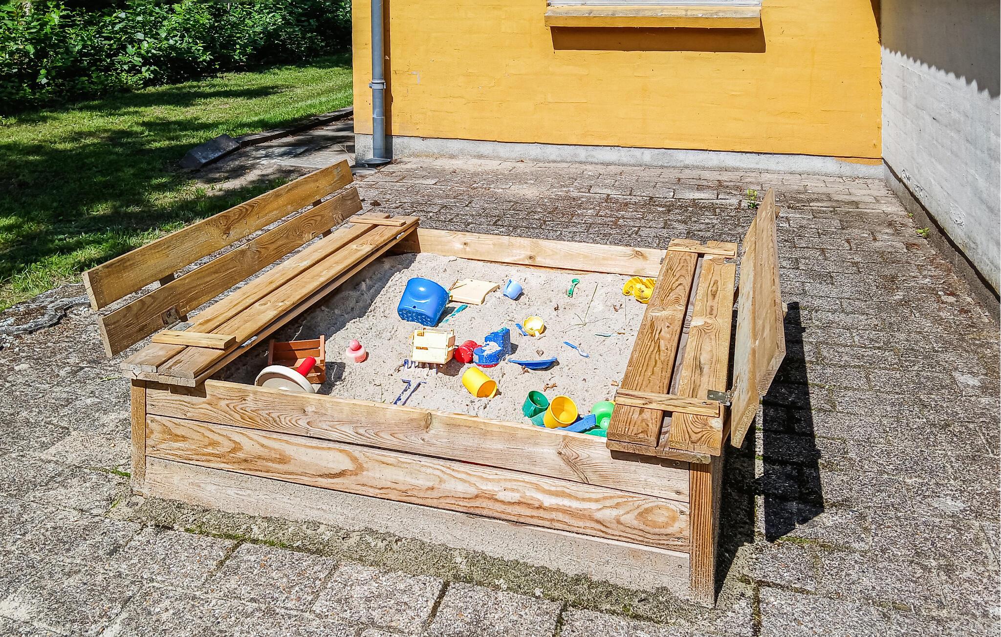Gå udenfor, og udforsk den rummelige have. Børnene kan boltre sig på den store græsplæne, gynge, rutsje eller hoppe på trampolinen, som er tilgængelig i sommerhalvåret. Der er også en sandkasse. Slap af på terrassen, læs en bog, eller nyd et måltid sammen i den friske luft.