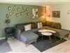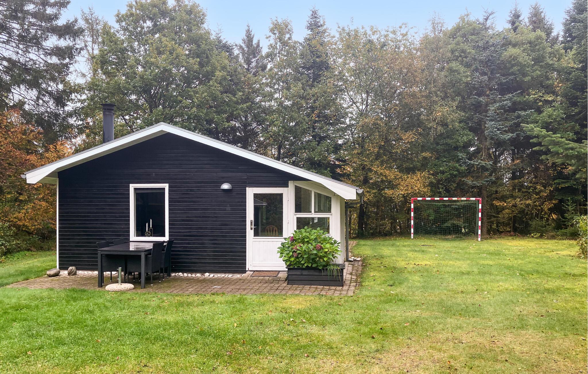 Tilbring en rolig ferie i dette lyse og velholdte feriehus, som ligger på en smukt bevokset naturgrund. Nyd den venlige atmosfære i den åbne opholdsstue med store vinduer, der lukker masser af lys ind. Spiseplads, køkken og stue hænger harmonisk sammen. Hyg jer i hjørnesofaen, læs en god bog, eller se fjernsyn sammen. I det moderne køkken med barstole finder I alt, hvad I har brug for til fælles madlavning. Spisepladsen med udsigt til det grønne indbyder til lange, hyggelige måltider.