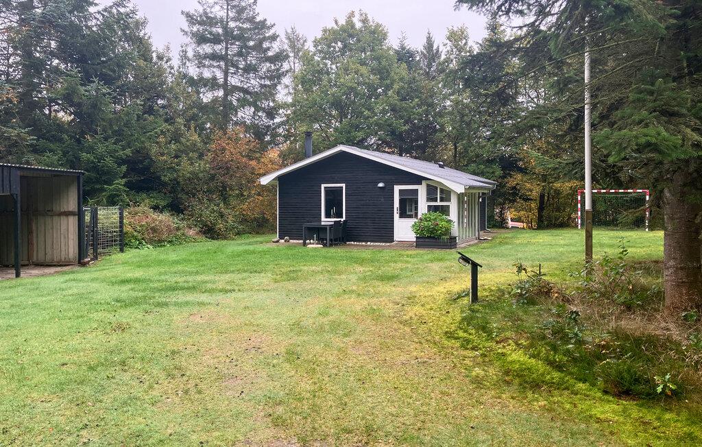 Hyggeligt feriehus i Højslev ved Virksund Strand med skov, fjordudsigt og stor have, perfekt til afslapning og naturoplevelser.