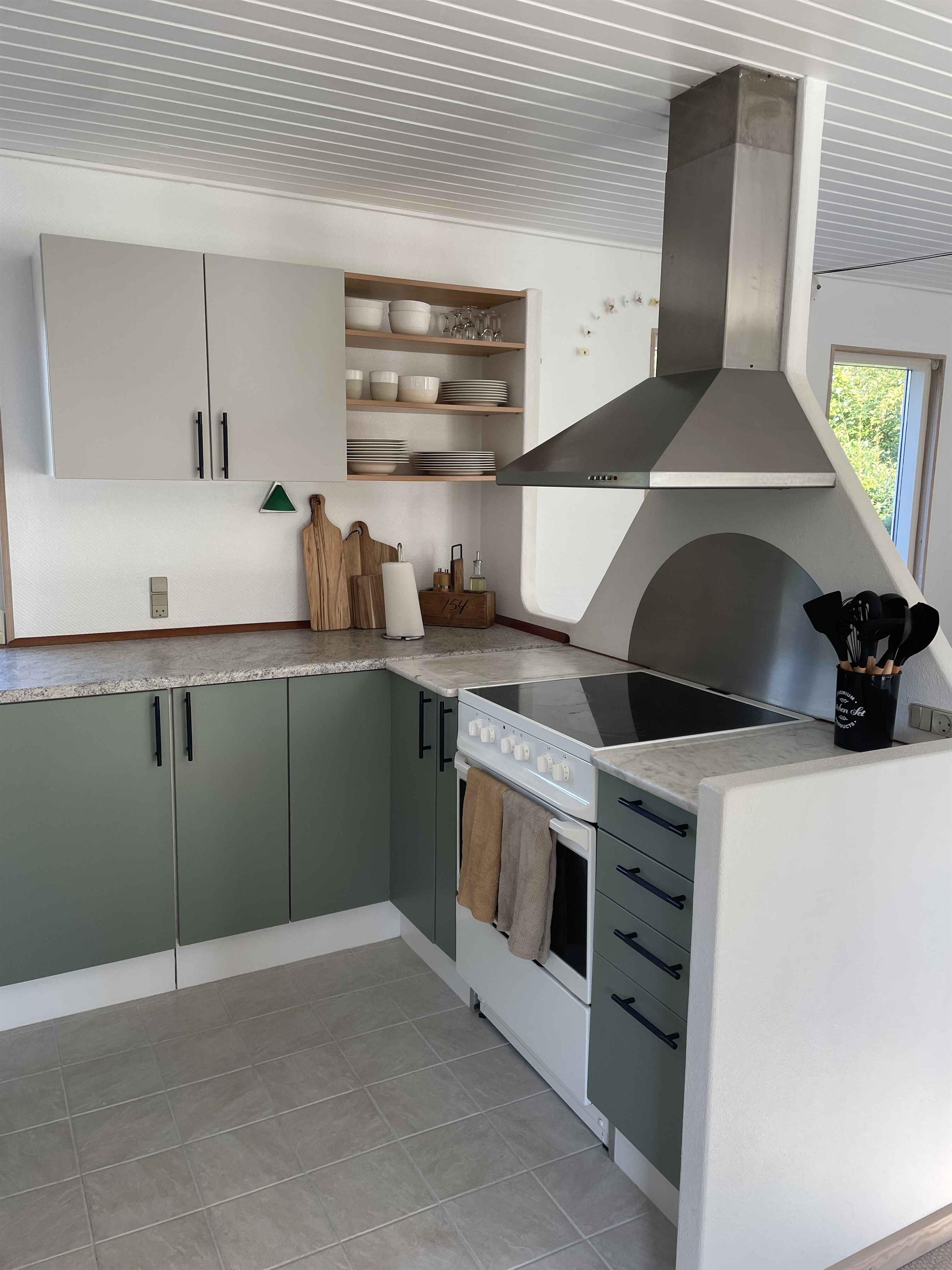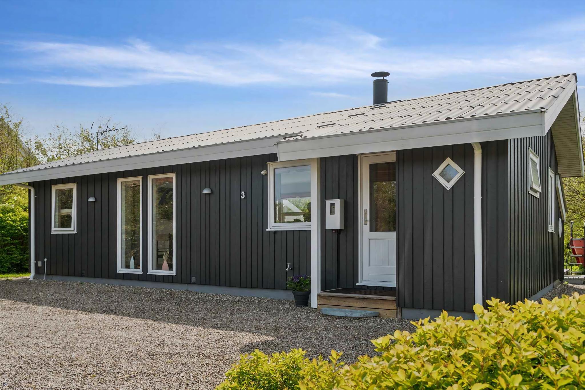 Hyggeligt sommerhus i naturskønt område nær vand med legeplads og moderne faciliteter til hele familien.