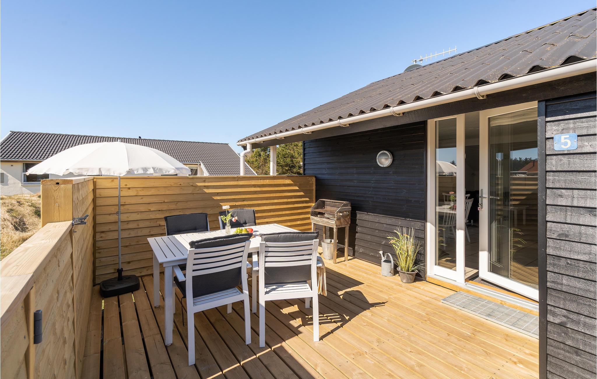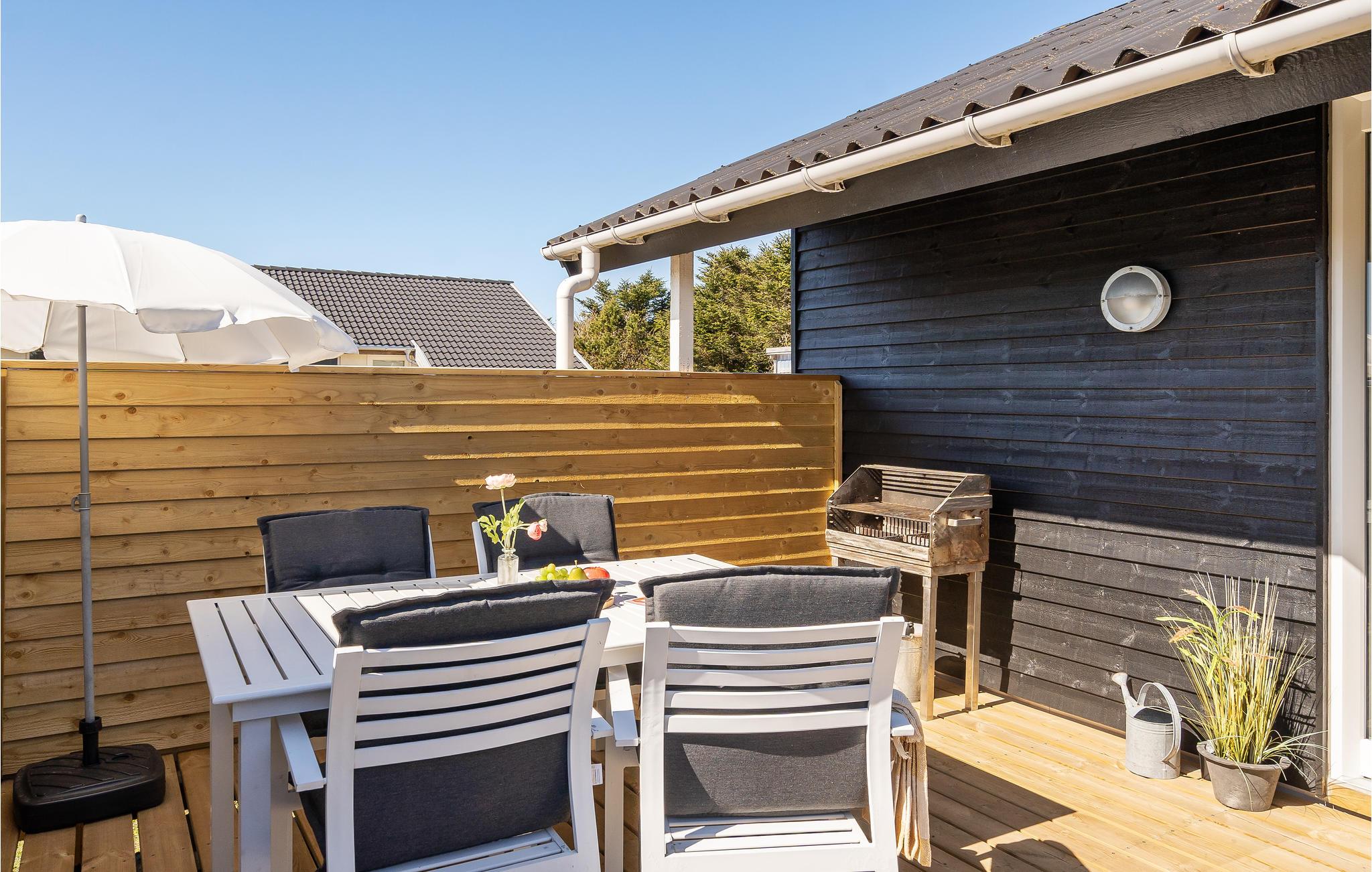 Dette sommerhus danner en smuk ramme for en vellykket ferie i enhver sæson. Find jer godt til rette på terrassen ved grillen, hvor I, takket være vindskærmen, altid kan sidde behageligt i læ. Der er 2 parkeringspladser til biler på ejendommen.