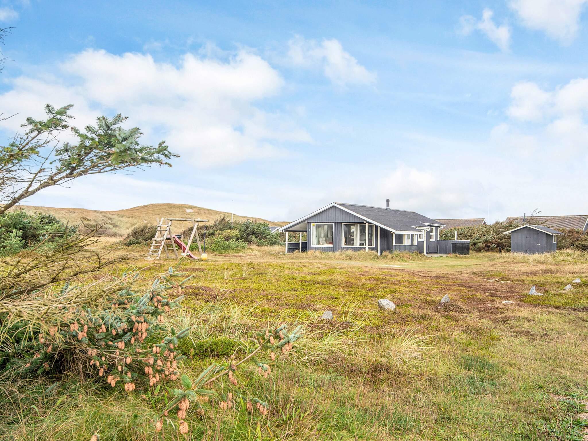 Sommerhus beliggende ca. 50 meter fra det brusende Vesterhav på 2400 m² naturgrund. Der er overdækket terrasse, hvor I kan nyde de lune sommeraftener og holde hyggelige grillaftener. Der er gynge til børnene. Der er kun 1 hund tilladt i huset.