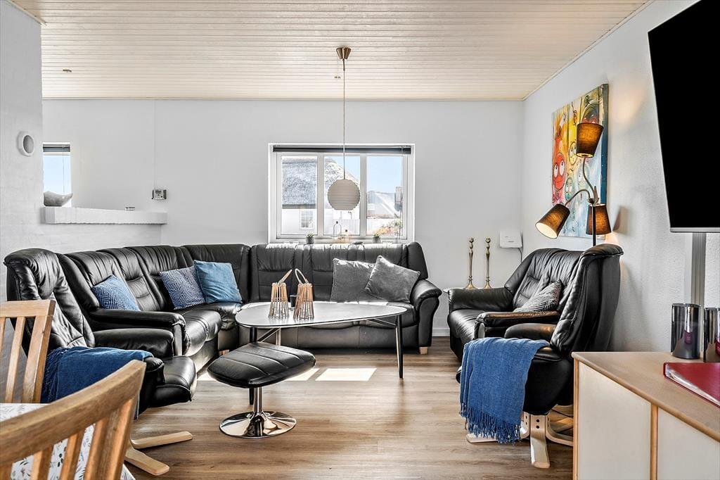 Udendørs venter en stor, lukket terrasse, hvor du kan nyde solen i behagelige liggestole eller samles omkring grillen til hyggelige middage under åben himmel. Den 2.930 m² store grund giver masser af plads til leg og boldspil, og for de yngste er der både gynge og sandkasse. Med kun 350 meter til Vesterhavet er det nemt at tage en forfriskende dukkert eller gå en tur langs den brede sandstrand, mens du lytter til bølgernes beroligende brusen.