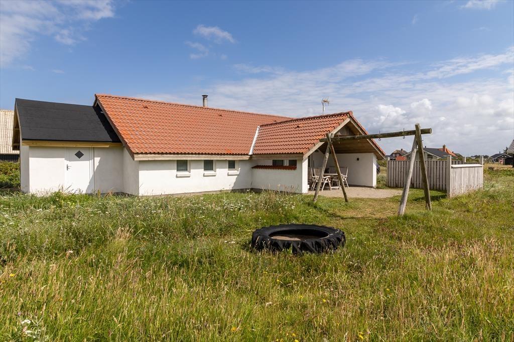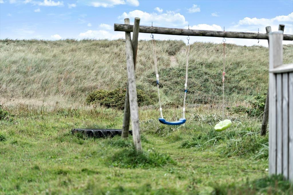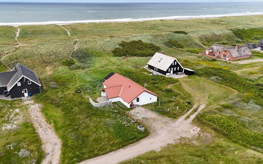Udenfor finder du en god grund, hvor børnene kan boltre sig i sandkassen og gynge højt i det friske havvejr, mens du nyder en kop kaffe i solen. Huset har flere dejlige terrasser og lækroge, hvor du kan finde fred med en god bog eller nyde middagen under åben himmel. Udelivet omkring huset understøttes af den korte vej til klitterne og stranden – du skal blot tage et par skridt ud i det bølgende klitlandskab, så åbner verden sig med sand, hav og horisont. Her er det let at mærke, at man holder ferie – og måske endda lade mobilen ligge inde lidt længere.