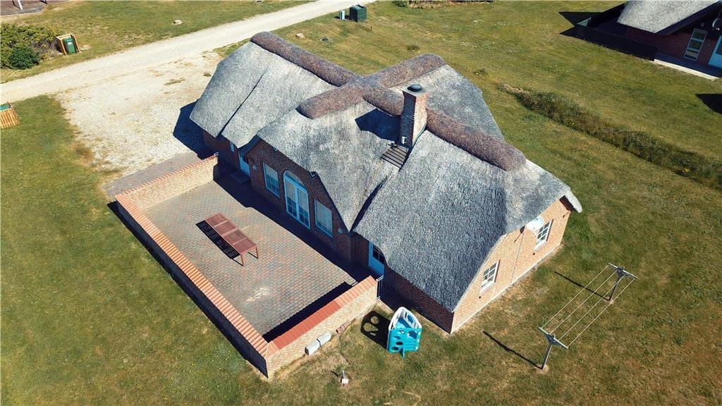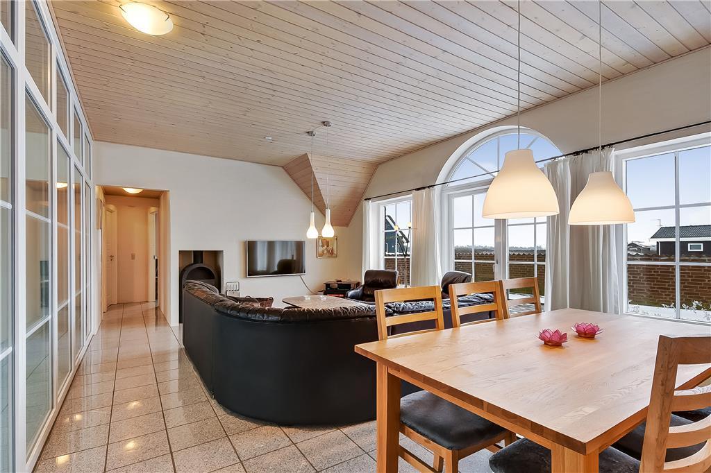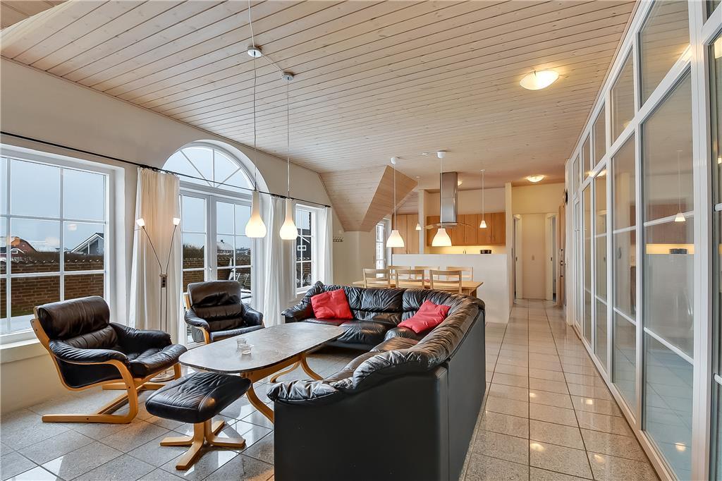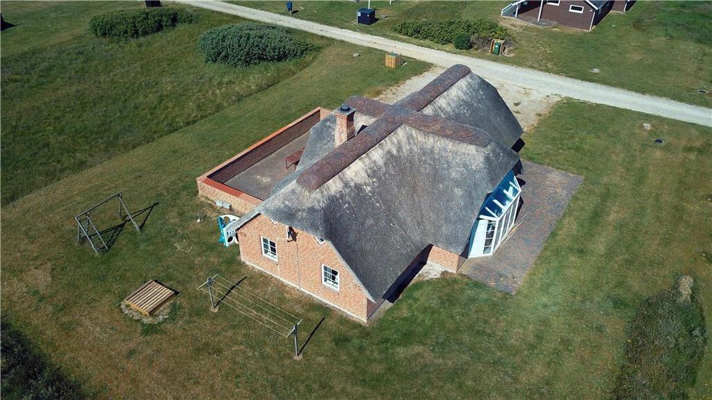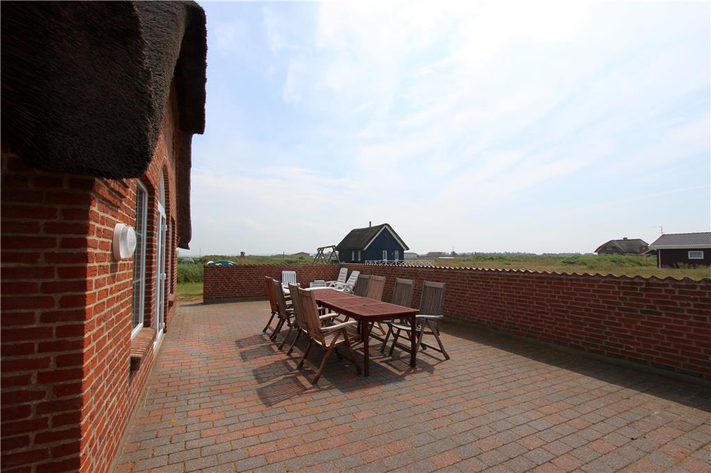 Udenfor breder den store, lukkede terrasse sig ud som en skøn oase, hvor du kan nyde livet i fulde drag. Terrassen giver dig både læ og privatliv, så du uforstyrret kan nyde solens stråler, en god bog eller et måltid under åben himmel. For børnene byder haven på både gyngestativ og sandkasse – perfekte rammer til leg og sjov i trygge omgivelser. Og naturligvis er hunden også velkommen, så hele familien kan være samlet på ferien. Når aftenen falder på, kan du lune dig under tæpper på terrassen eller tage en stille aftentur ned til stranden og nyde solnedgangen over Vesterhavet.