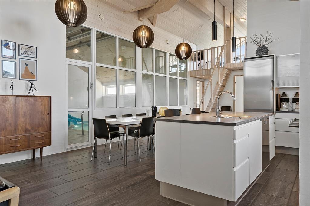 På Arcticvej 6 i Vrist venter en ferieoplevelse ud over det sædvanlige. Her bor du i et moderne, rummeligt sommerhus på en af områdets bedste beliggenheder, med masser af plads til store familier eller vennegrupper. Forkæl dig selv med luksuriøse faciliteter som indendørs pool med rutsjebane, spa, sauna og aktiviteter for både børn og voksne – alt sammen omgivet af Vesterhavets rå natur og brede sandstrande.