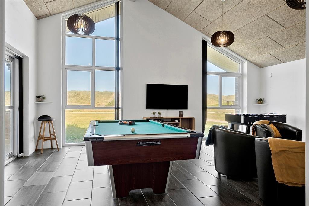 Når du træder ind i sommerhuset på Arcticvej 6, mærker du straks den dejlige kombination af komfort og hygge. Den åbne opholdsafdeling forener køkken, spiseplads og stue, og store vinduespartier lader dagslyset strømme ind og skaber en lys og luftig atmosfære. I hjertet af huset finder du det imponerende poolområde med rutsjebane, der lægger op til mange timers leg og afslapning for både små og store badegæster. Efter en svømmetur kan du lade kroppen glide ned i den varme spa eller nyde saunaens lindrende varme. Er du til lidt konkurrence, kan du udfordre dine medrejsende i billard eller bordtennis – perfekte rammer for masser af sjov og samvær, uanset vejret.
