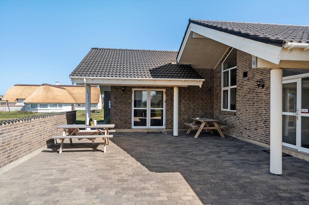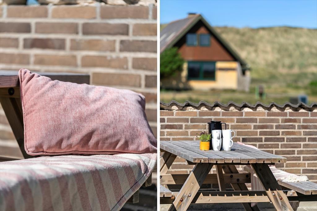 Haven omkring sommerhuset breder sig over en stor naturgrund på 2.600 m², som giver masser af plads til at boltre sig under åben himmel. Børnene vil elske gyngerne, sandkassen og legehuset, hvor fantasifulde lege kan få frit spil. Rundt om huset er der flere hyggelige terrasseområder, hvor du kan finde en solrig plet eller sidde i læ med en god bog. På lune sommeraftener kan grillen tændes, mens solen langsomt går ned over klitterne. Og selvfølgelig er familiens firbenede medlemmer også hjerteligt velkomne til at nyde ferielivet sammen med jer.