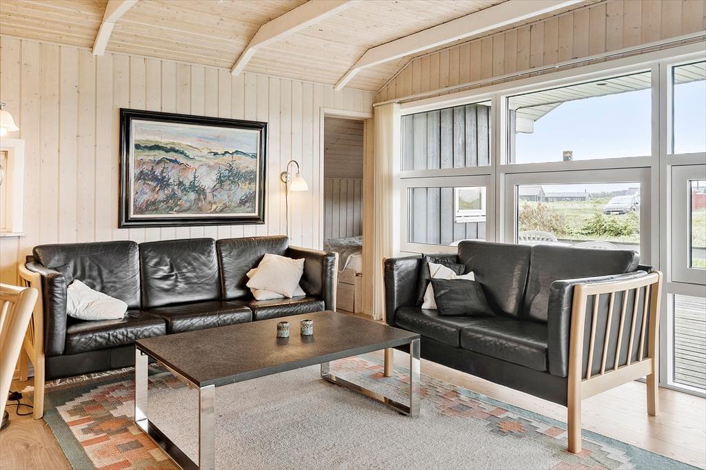 Når du træder ind i sommerhuset på Fourmivej 55, mødes du af en lys og indbydende atmosfære, hvor det store vinduesparti i stuen lader sollyset strømme ind og skaber en skøn fornemmelse af rummelighed. Stuen, spisepladsen og køkkenet ligger i åben forbindelse, så her er god mulighed for at samles om hyggelige måltider, sjove brætspil eller bare afslapning i sofaen foran den knitrende brændeovn. Har du lyst til lidt ekstra selvforkælelse, kan du nyde en tur i husets indendørs spa eller varme dig igennem i saunaen – en perfekt afslutning på en frisk dag ved stranden. Her får du en feriebase, der både emmer af ægte sommerhushygge og dejlig komfort.