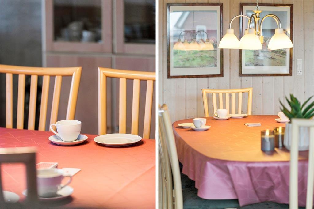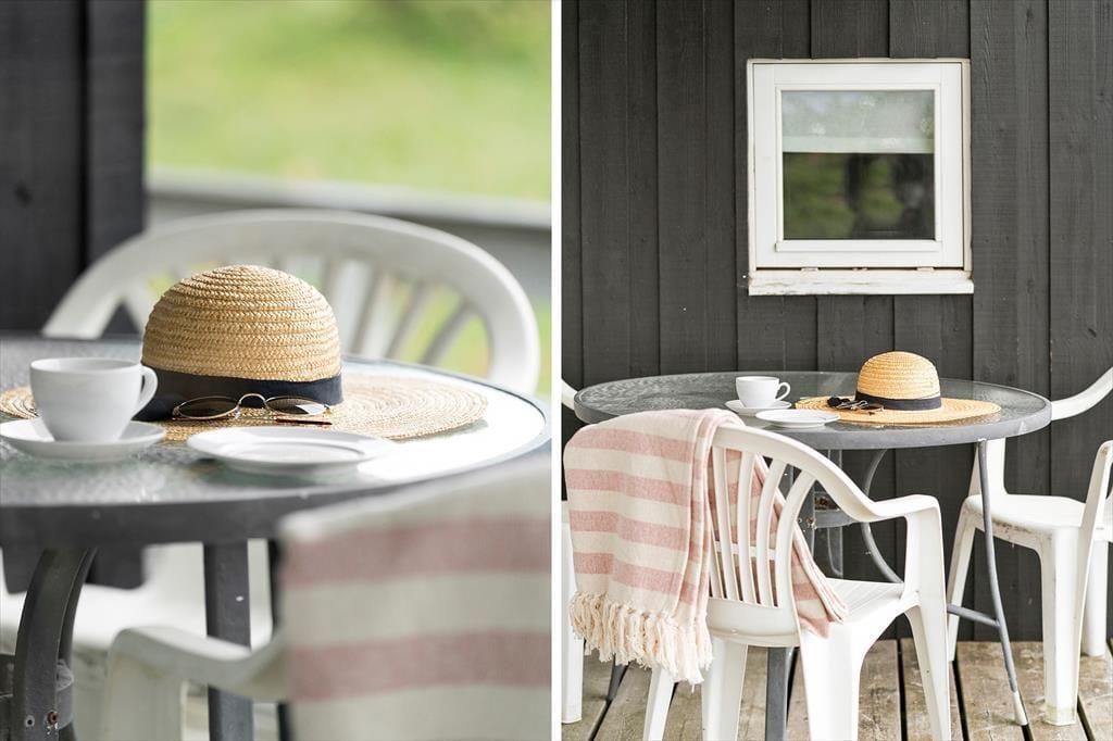 Når solen skinner eller vinden luner fra havet, inviterer terrassen og de hyggelige udendørsområder til afslapning og samvær. Her kan du finde læ og sidde i ro og mag med en god bog eller nyde et måltid under åben himmel med udsigt til den smukke natur omkring Vrist. Den korte afstand til stranden gør det nemt at tage spontane ture ned til vandet – måske med morgenkaffen i hånden eller bare for at dyppe tæerne i bølgerne. Børnene kan finde masser af plads til leg og boltre sig frit i de rolige omgivelser.