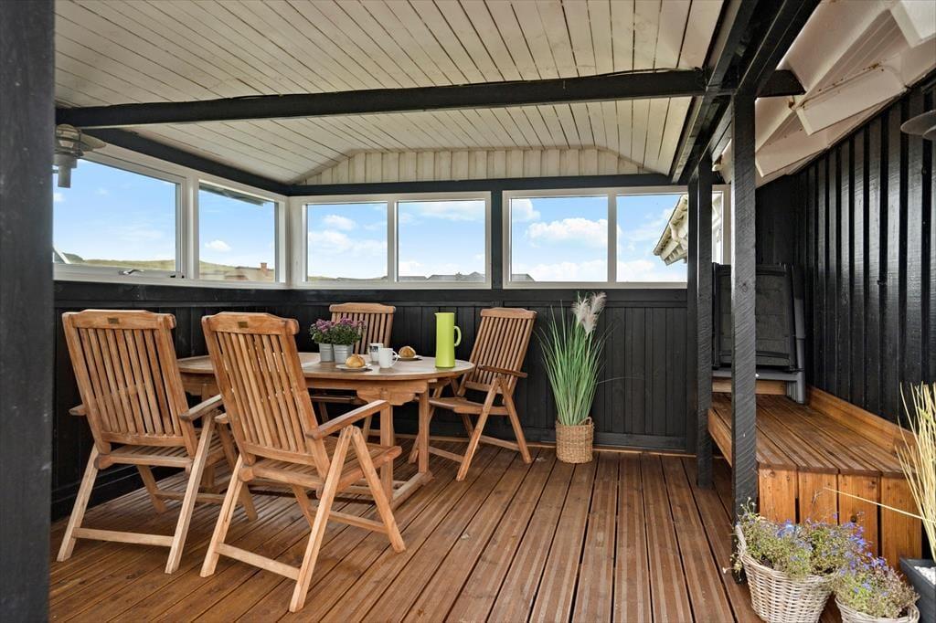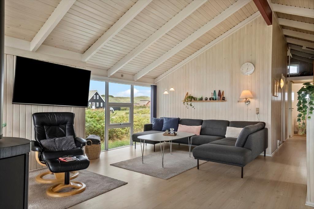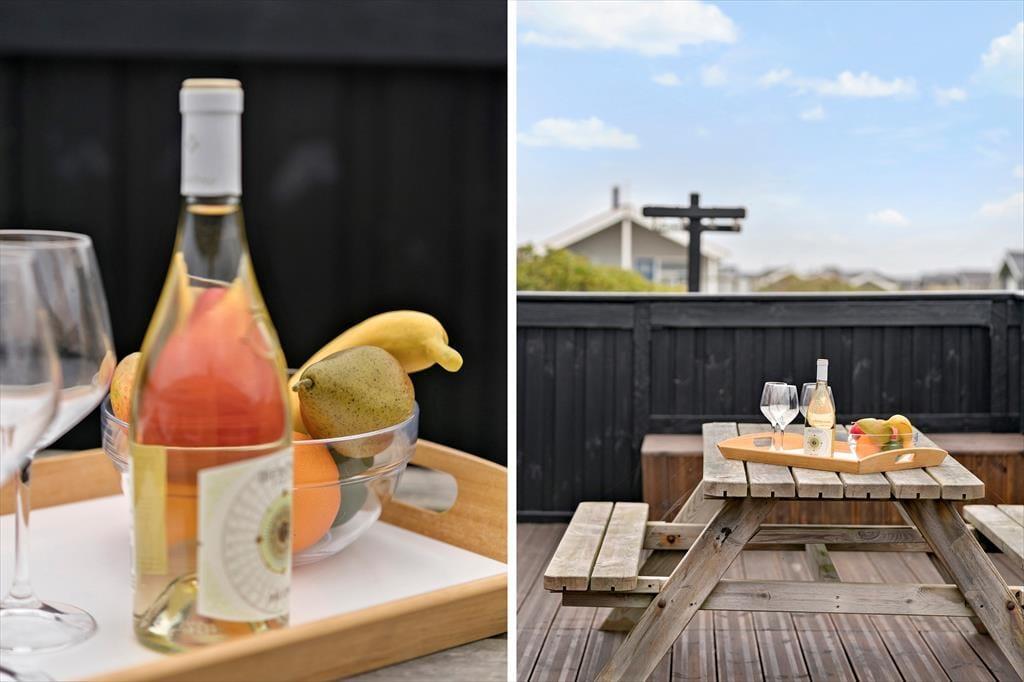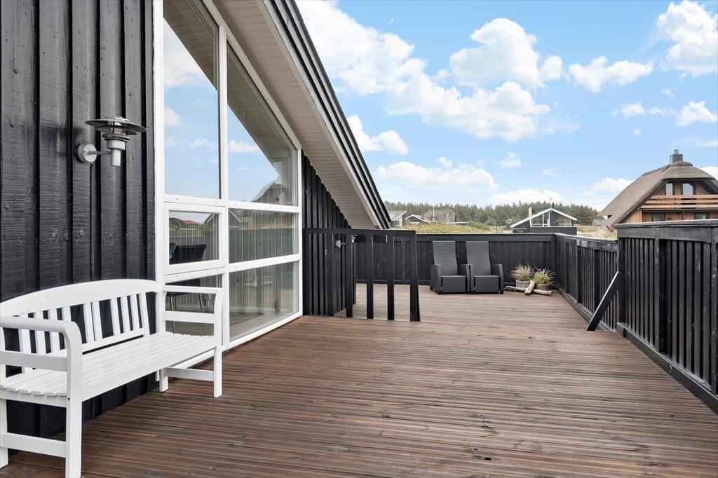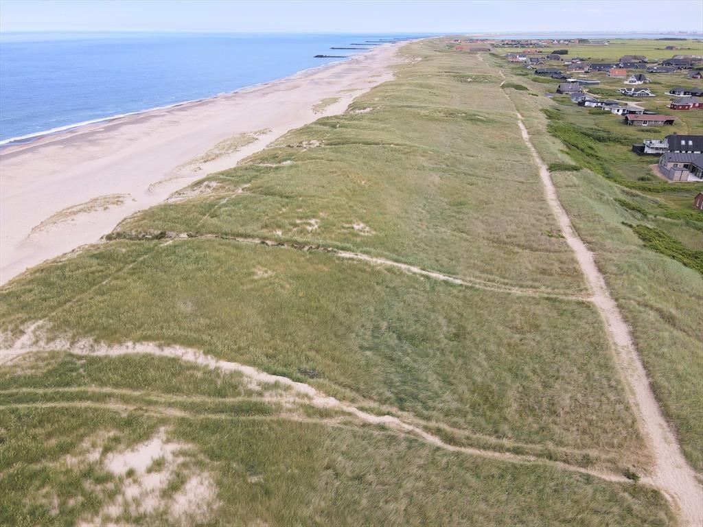 Den store terrasse, som delvist er overdækket, gør det muligt at nyde udelivet uanset vejret. Her kan du drikke morgenkaffen i solen, dække op til frokost i læ eller grille på de lange, lyse sommeraftener. I haven finder børnene hurtigt hen til gyngen og sandkassen, mens de voksne måske finder en rolig krog med udsigt til himmel og klitter. Duften af hav minder dig hele tiden om, hvor tæt du er på stranden – og skulle du få lyst til en aftendukkert eller en tur langs vandkanten, er der blot 100 meter at gå.