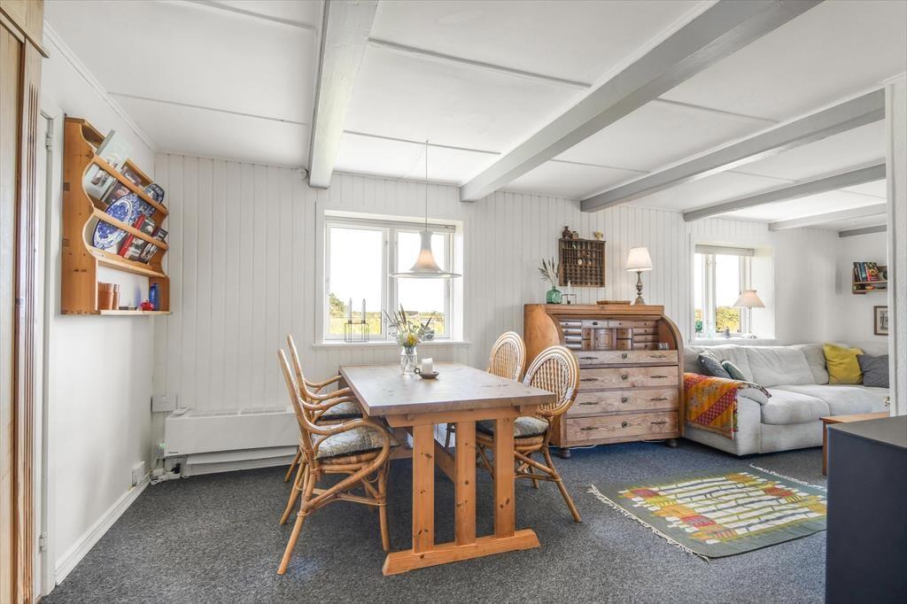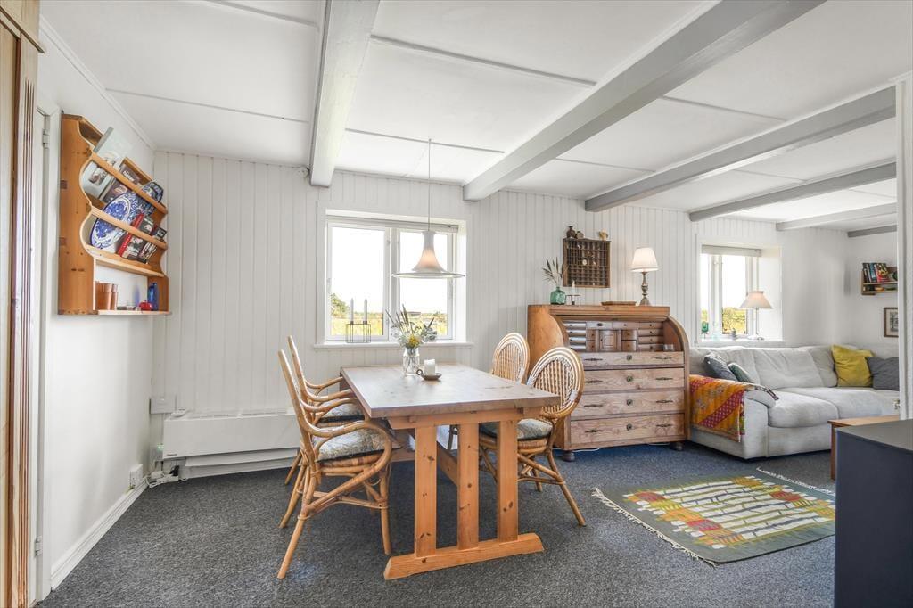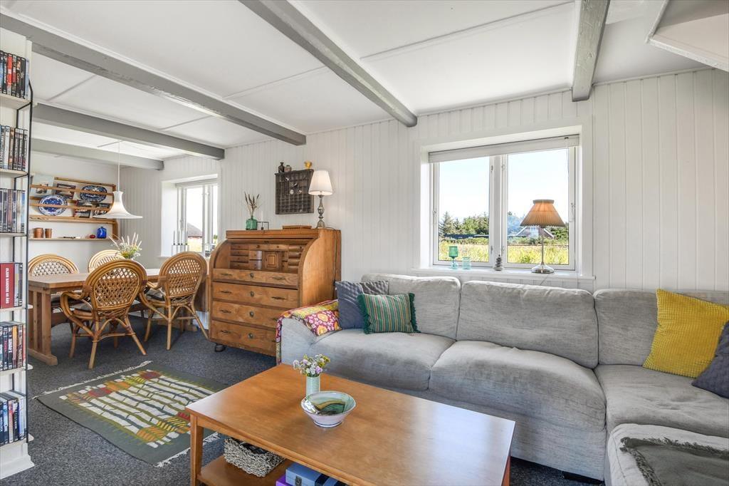 Hvis du er på jagt efter et sommerhus med sjæl, historie og en stemning af ægte ferieliv, så er huset på Flyvholmvej 21 i Vrist et godt bud. Sommerhuset er oprindeligt opført i 1937 og emmer af klassisk sommerhuscharme. Indretningen er hyggelig og personlig, og du får glæde af både to plan med hems og en fredelig placering kun 650 meter fra Vesterhavet.