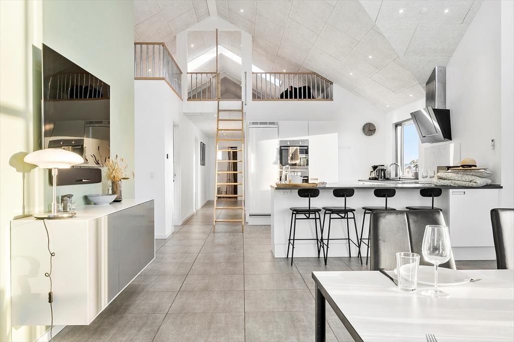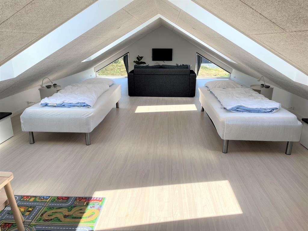 Sommerhuset er indrettet med tanke på både hygge og funktionalitet. De lyse rum og højt til loftet skaber en behagelig atmosfære, og opholdsområdet med køkken og stue i åben forbindelse danner det oplagte centrum for fælles madlavning, samtaler og brætspil. I stuen står poolbordet klar til familiens egne turneringer, og oppe på den rummelige hems kan børnene finde deres helt eget sted at lege eller slappe af. Efter en dag fyldt med oplevelser inviterer husets indendørs spa til ro og afslapning, hvor du kan lade kroppen falde helt til ro og nyde feriefølelsen i fulde drag.