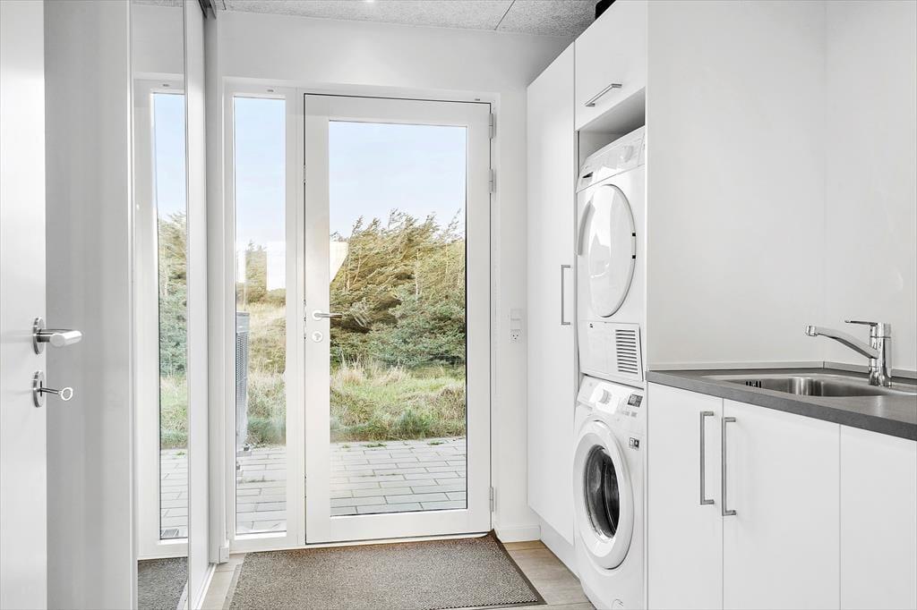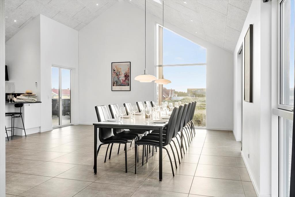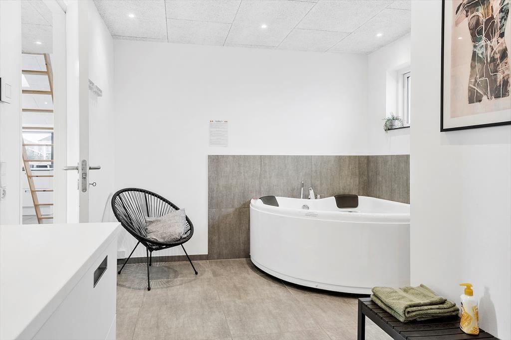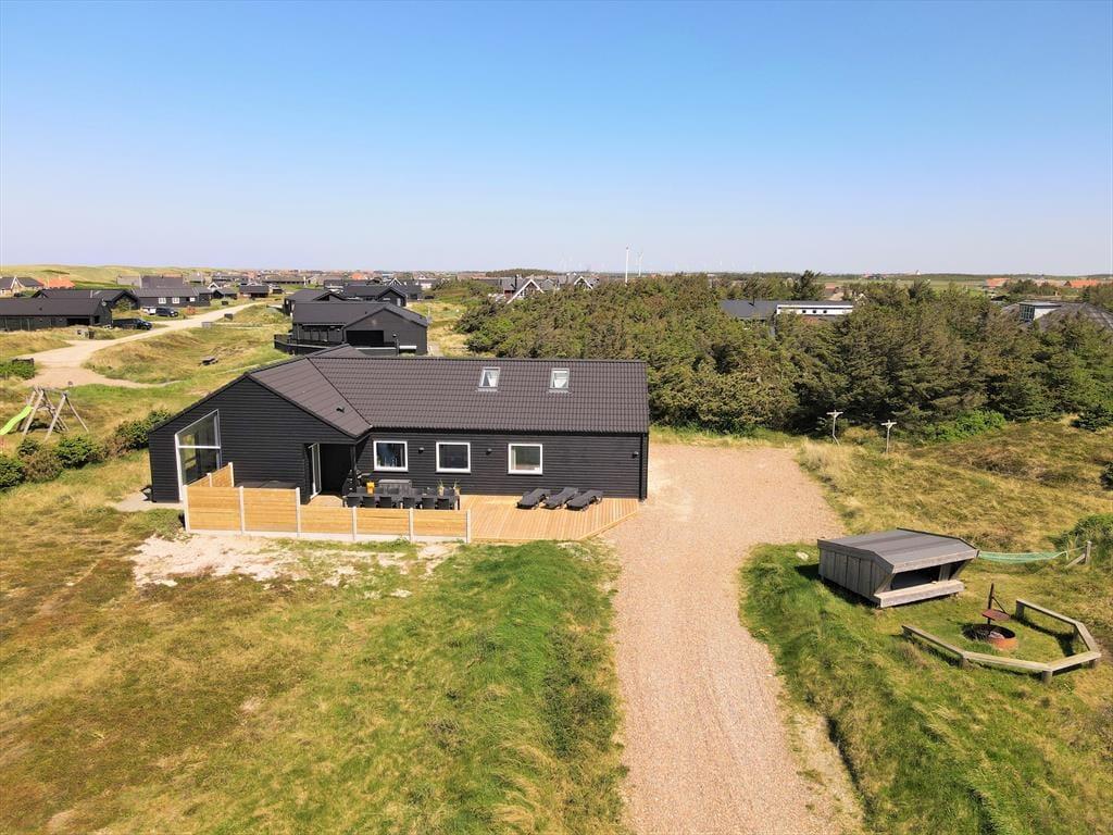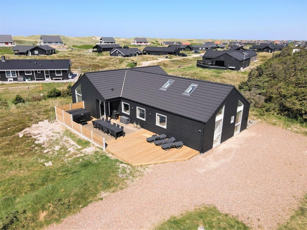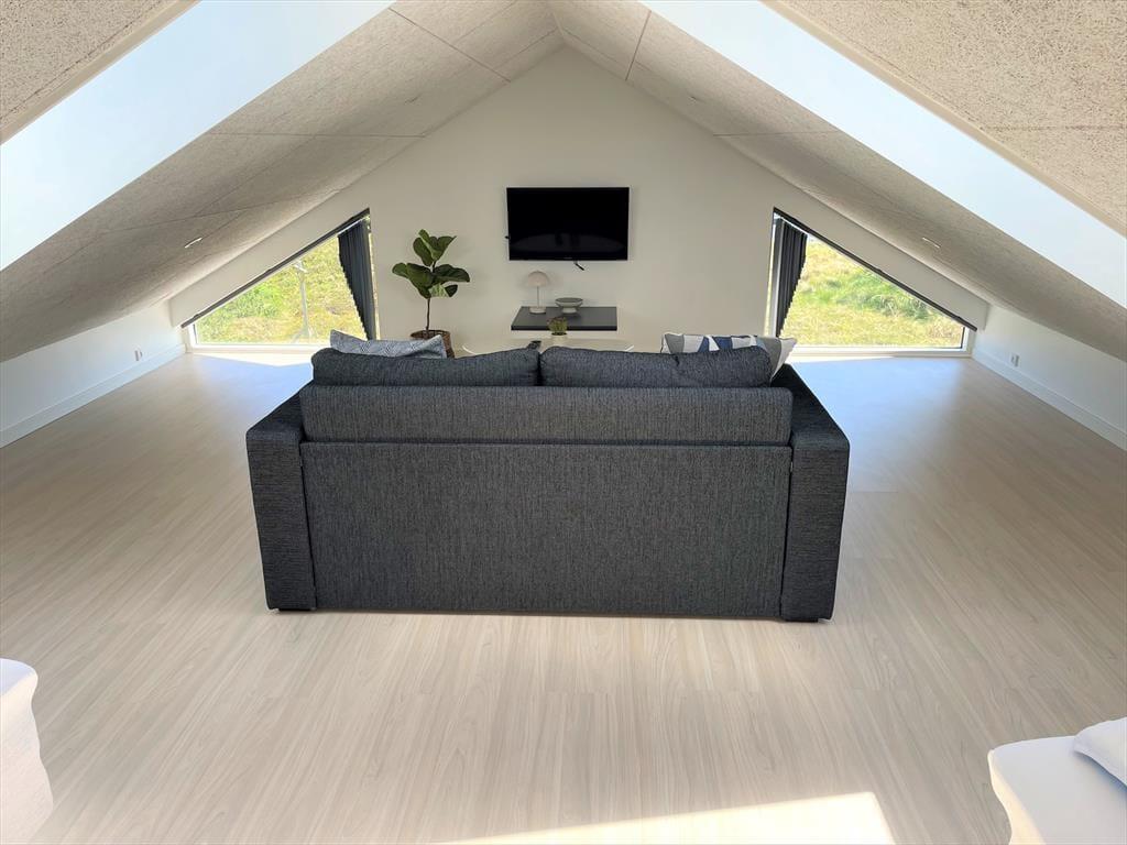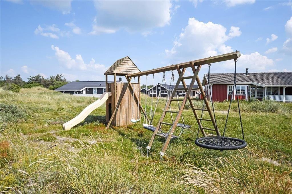 På den store terrasse kan I nyde morgenkaffen i solen, samle jer til aftensmåltider – eller hoppe i det udendørs spa og lade boblerne gøre arbejdet. Haven er skabt til aktivt udeliv, og der er både shelter og bålplads, som lægger op til hyggelige aftenstunder med snobrød og historier i flammernes skær. Børnene kan få mange timers leg ud af det store legestativ, og der er masser af plads til både boldspil og gemmeleg. Terrassen er delvist overdækket, så I kan sidde ude uanset vejret – og med Vesterhavets friske luft og lyd som baggrund, er det let at mærke feriestemningen brede sig.