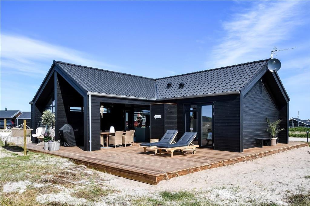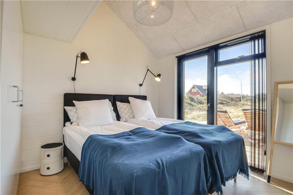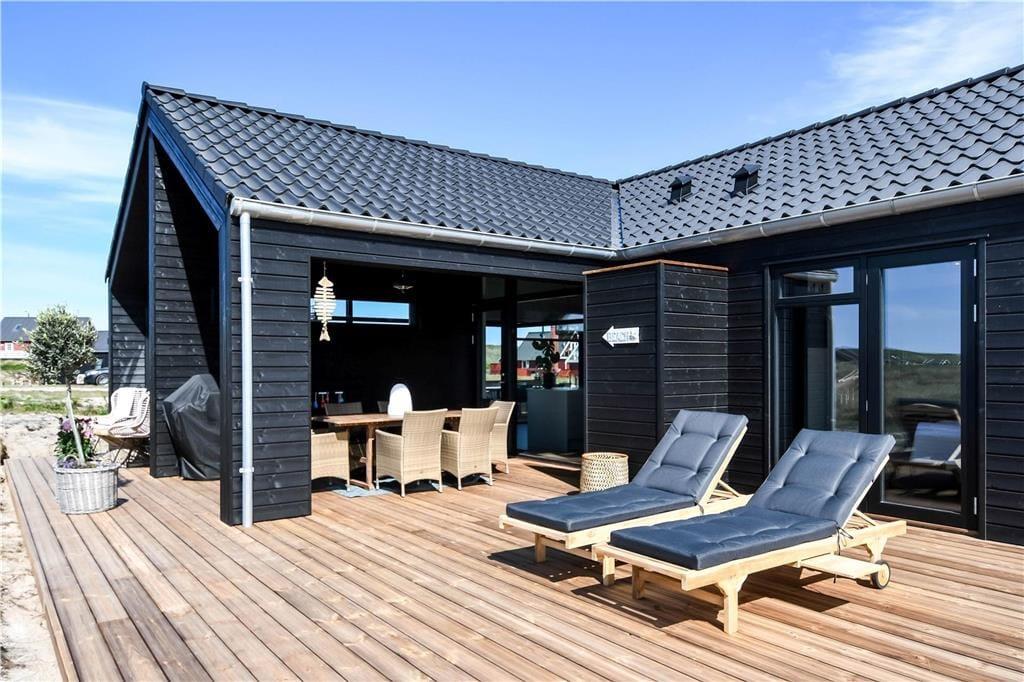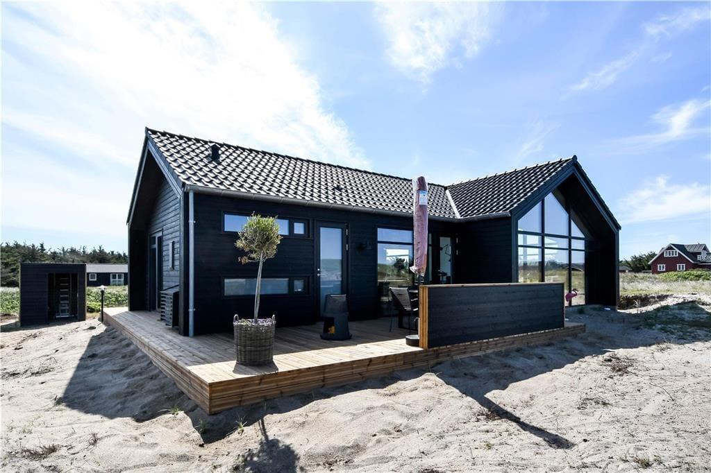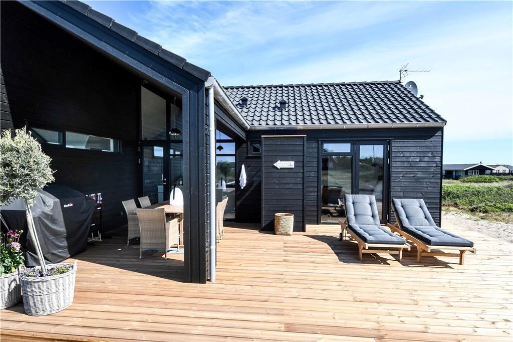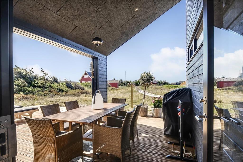 Udelivet får optimale vilkår her – ikke mindst takket være husets to terrasser, hvoraf den ene er delvist overdækket. Her kan I sidde i læ med et tæppe om benene og nyde solnedgangen eller sætte jer til bords med friskfanget fisk på grillen. Og så er der vildmarksbadet – det står klar i haven og bliver hurtigt et samlingspunkt, når mørket falder på. Den tilhørende udebruser og sauna fuldender wellness-oplevelsen under åben himmel. Der er god plads omkring huset, og med klitterne som bagtæppe får haven en helt særlig stemning af fred og nærhed til naturen. Her kan I lægge hverdagen bag jer og bare være – i solen, i dampen, i boblerne eller på vej til endnu en tur til stranden.