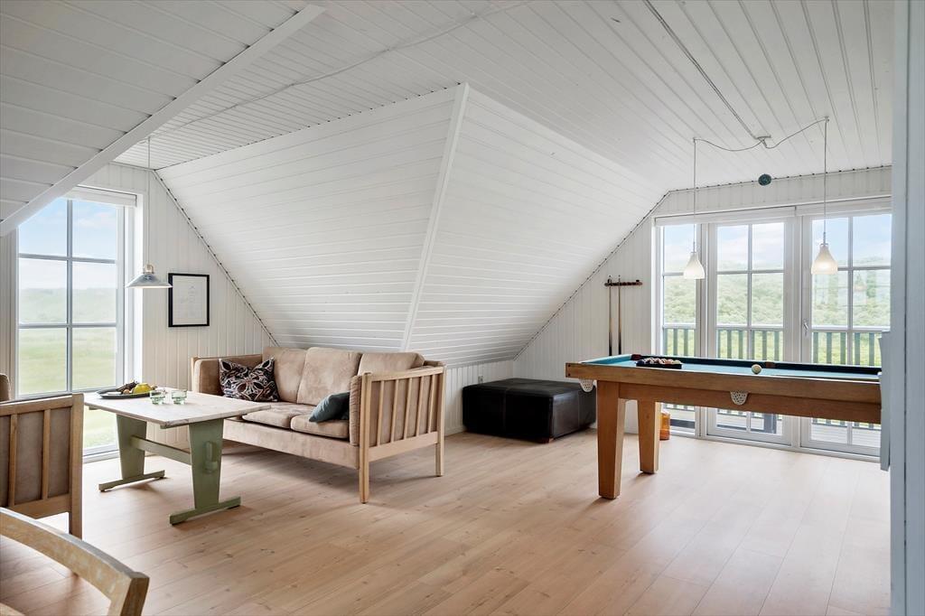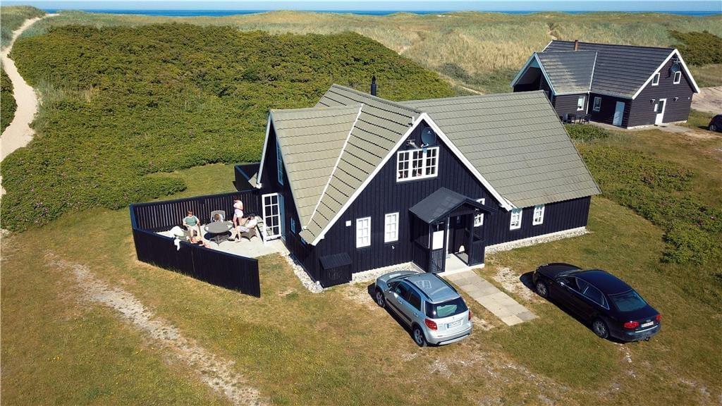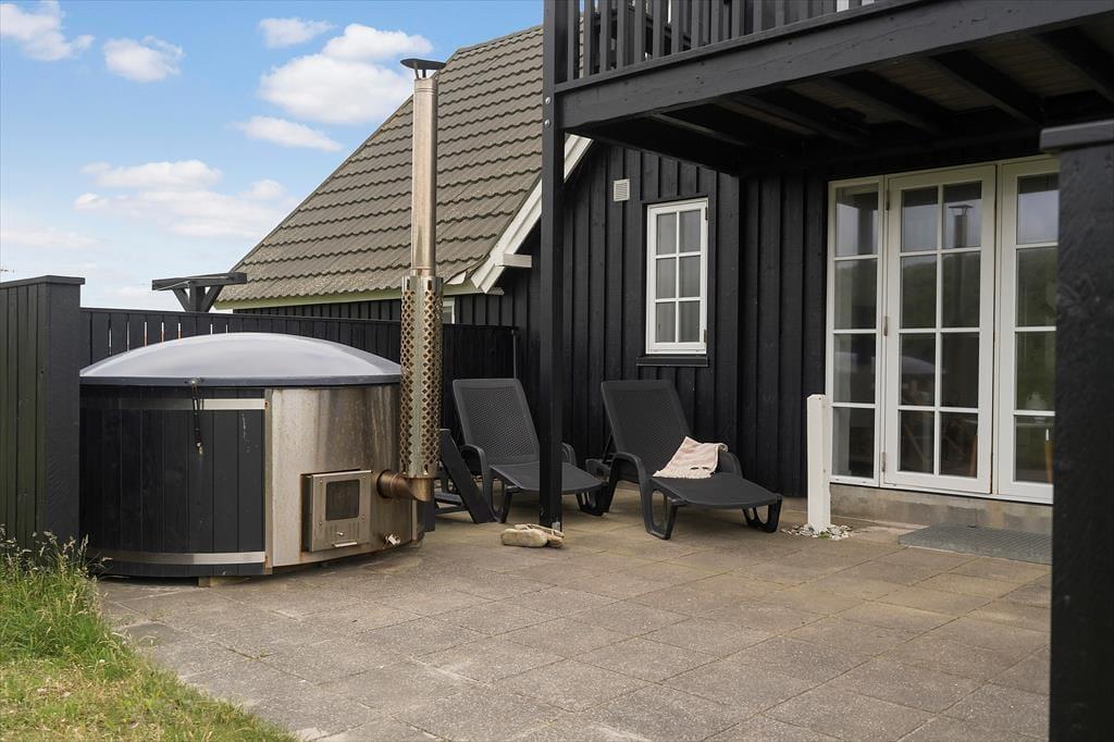 Terrassen omkring huset byder på flere skønne steder at slå sig ned – heriblandt et vildmarksbad, der fuldender følelsen af luksus under åben himmel. På solrige dage kan du læne dig tilbage i liggestolen, mens du lytter til Vesterhavets brusen, og på kølige aftener er der intet bedre end at sænke sig ned i det varme vand og kigge op på stjernerne. Hunden vil elske at følge dig på små ture i klitterne, der nærmest begynder ved din hoveddør, og hele området omkring huset indbyder til afslappet udeliv. Når vinden tager til, kan du finde ly i de hyggelige kroge omkring huset – måske med en god bog og en kop varm kaffe i hånden.