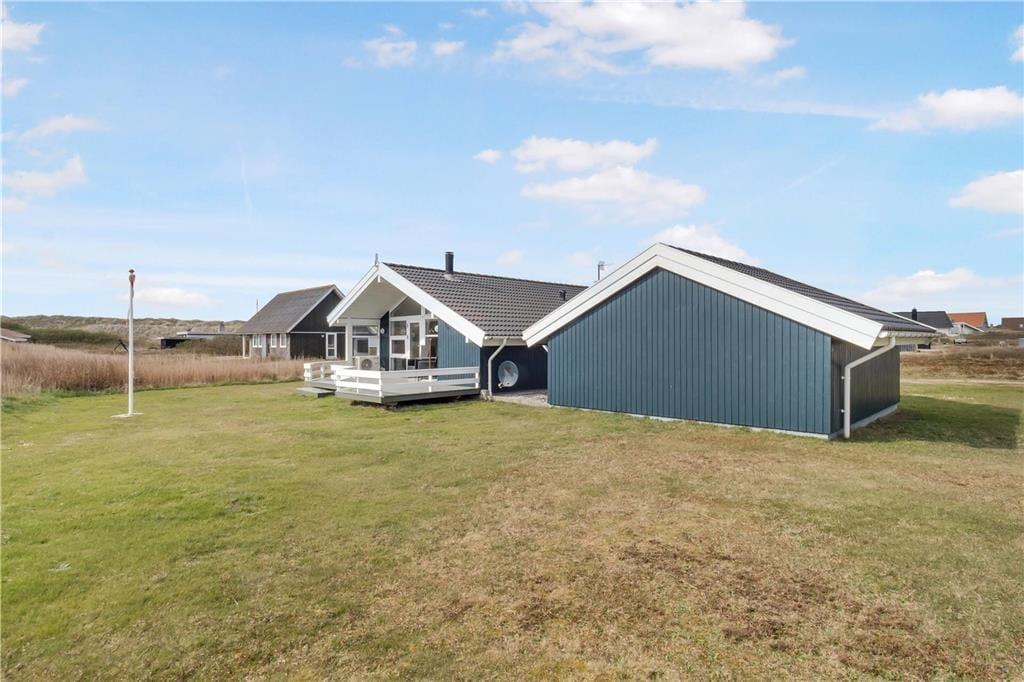 Det er udenfor, at sommerlivet for alvor folder sig ud – og det kan det i den grad få lov til her. Huset har hele to skønne terrasser, hvoraf den ene er delvist overdækket, så du både kan finde sol og skygge alt efter behov. Start dagen med kaffe og havbrus i baggrunden, eller slap af i liggestolen med en god bog, mens solen varmer dig og vinden bærer duften af salt og marehalm med sig. Du kan vælge mellem at sidde ugeneret i læ eller at nyde udsigten til de høje klitter, som danner en smuk baggrund til ferieidyllen. Når aftenen falder på, kan du tænde op i grillen og forlænge dagen med mad og nærvær under åben himmel. Med så kort afstand til stranden er det nemt at tage spontane ture ned til vandet – måske endda både morgen og aften.