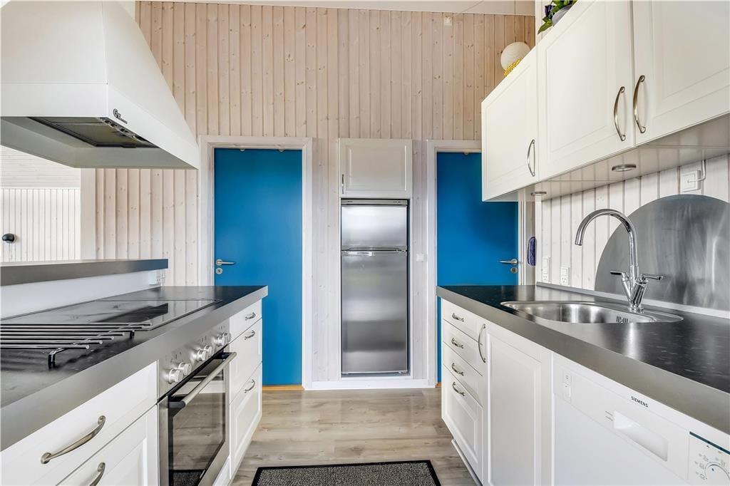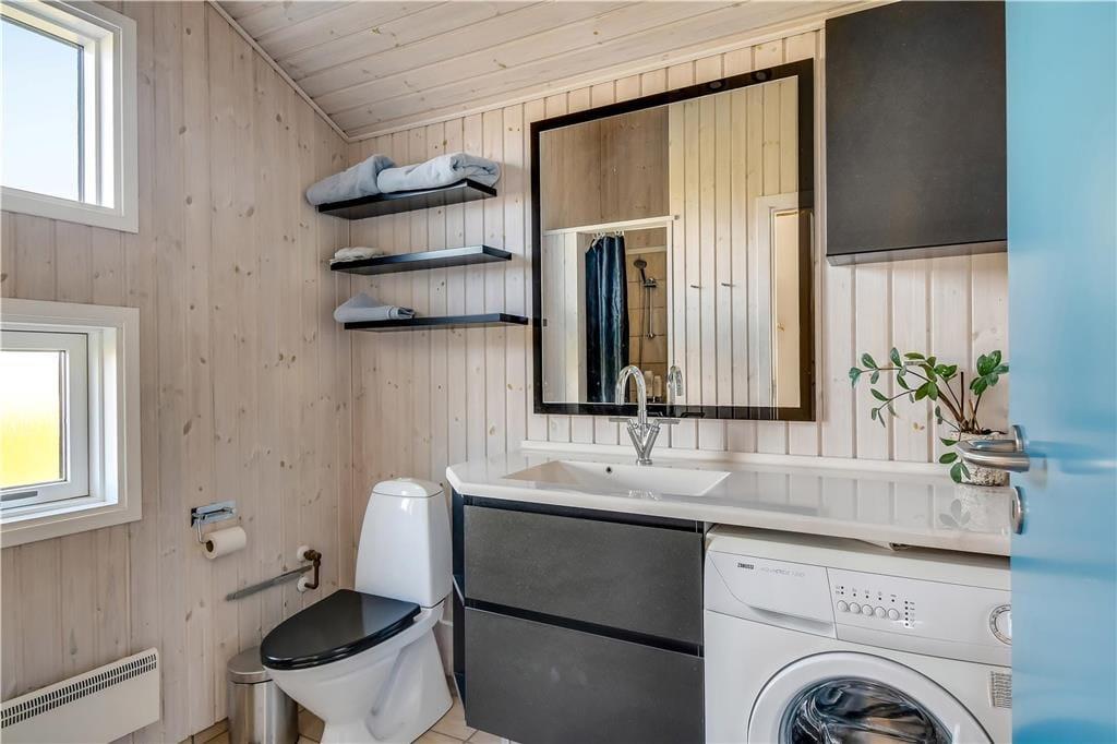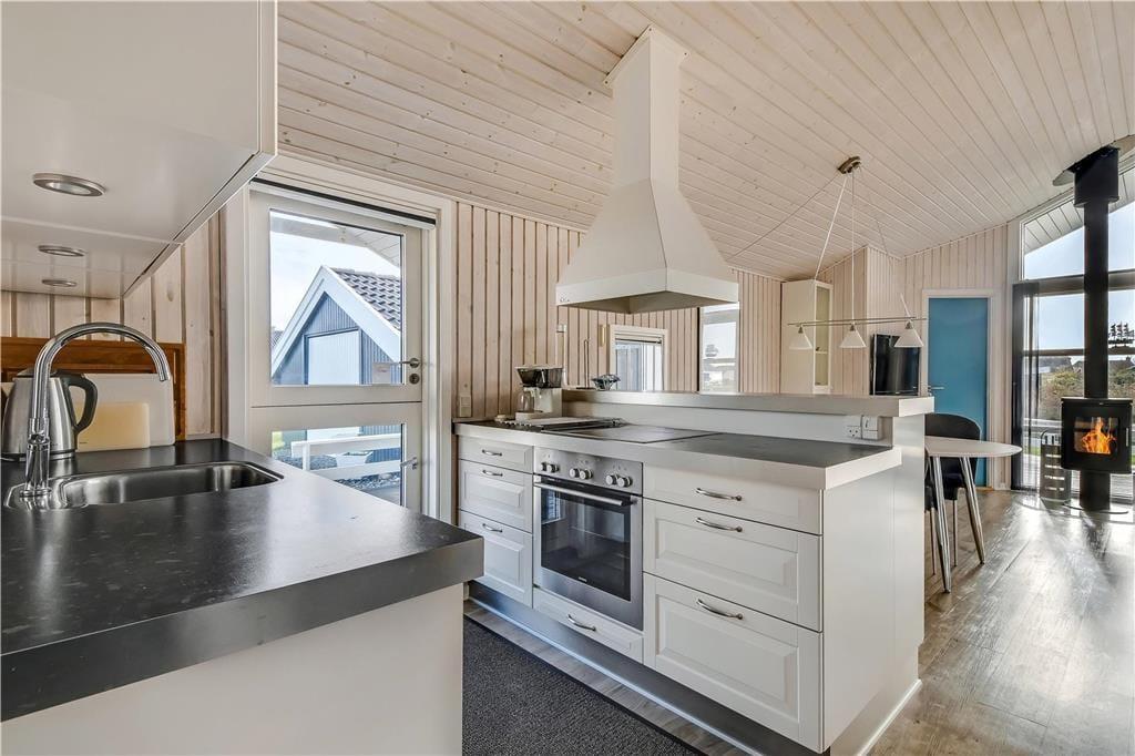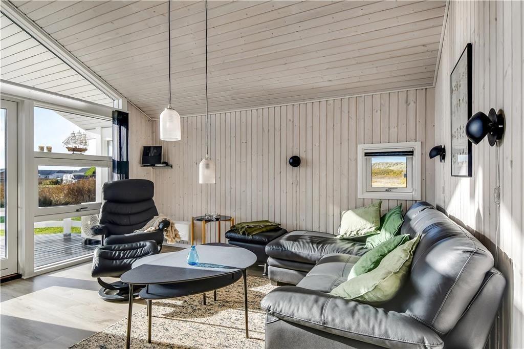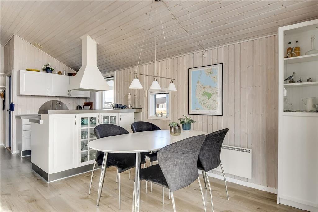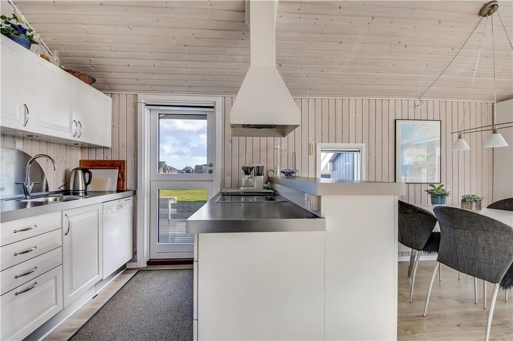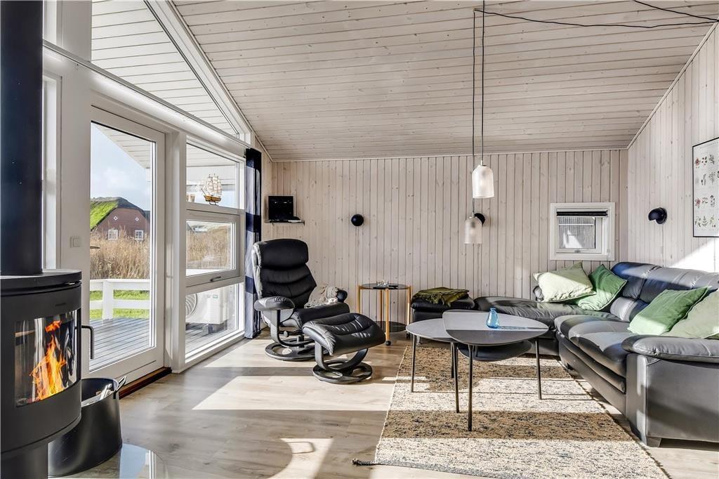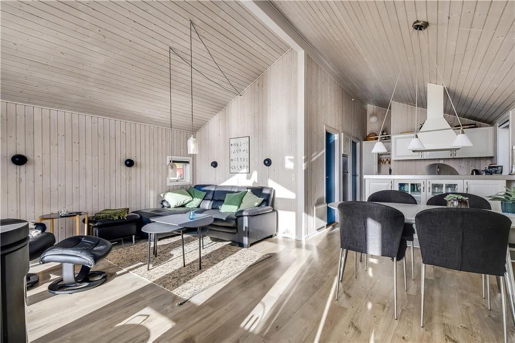 Det første, du lægger mærke til, når du træder indenfor, er den lyse og venlige stemning, der breder sig i hele huset. Store vinduer og højt til loftet giver en luftig fornemmelse, og det åbne opholdsrum med stue og køkken i ét gør det let at samles til både madlavning, hyggelige måltider og feriestunder i sofaen. Indretningen er enkel og funktionel, så det er nemt at falde til og bare nyde roen og samværet. Huset rummer også en stor garage, som både giver god opbevaringsplads og mulighed for at parkere bilen i ly, hvis vejret skulle vise sig fra sin vestjyske side. Alt i alt får du her et sommerhus, hvor rammerne er sat for en rigtig god ferie tæt på havet.