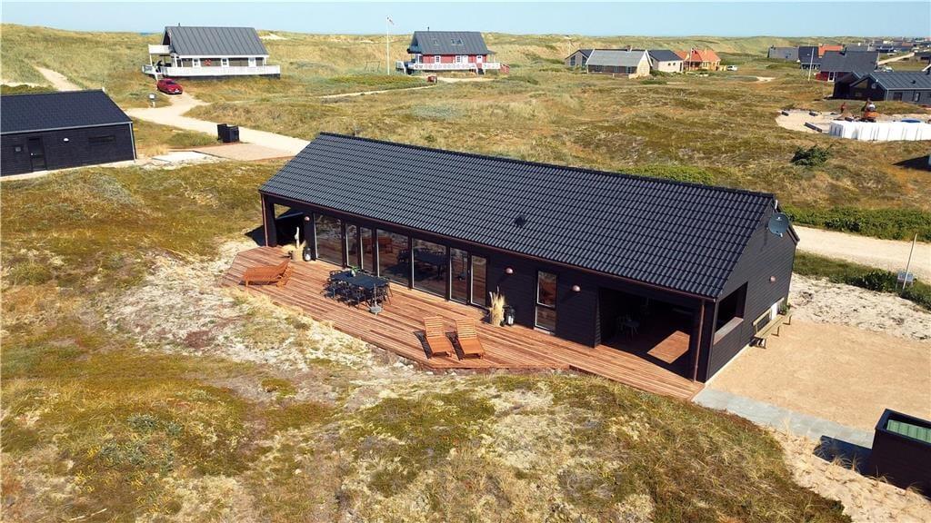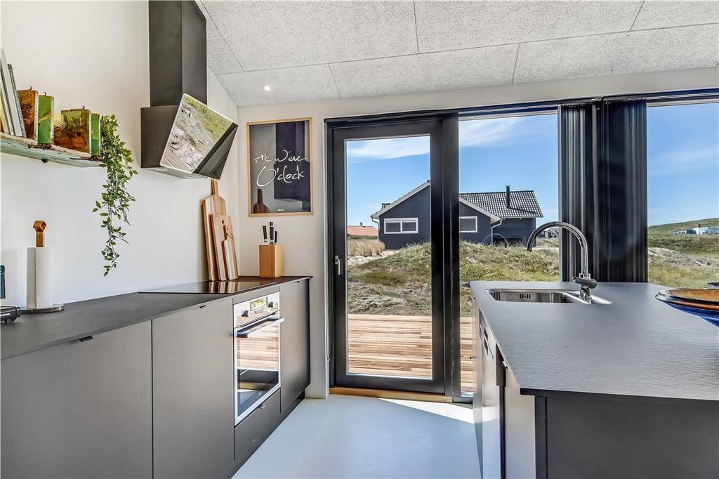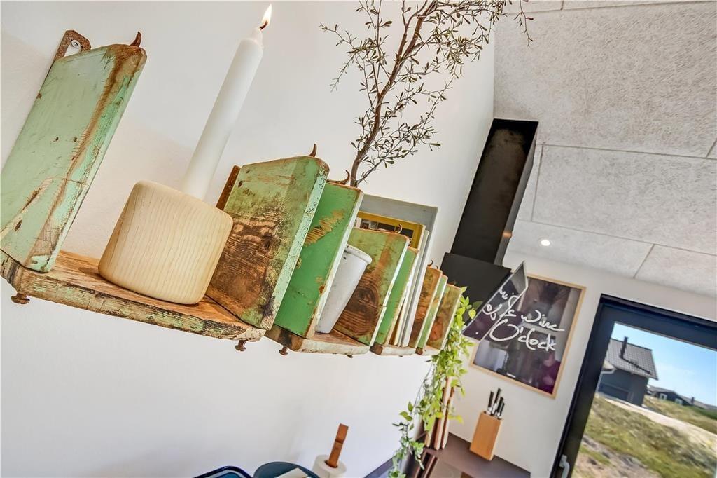 Indendørs bliver du mødt af en behagelig stemning og en stilren indretning, der gør det nemt at finde sig til rette. Store vinduer lukker masser af lys ind og skaber en let og luftig atmosfære. Køkken og stue ligger i åben forbindelse, så man nemt kan være sammen – hvad enten der skal laves mad, hygges med en kop kaffe eller slappes af i sofaen. I det lækre badeværelse kan du tage en pause fra hverdagen og synke ned i det indendørs spabad, der er perfekt til både velvære og afslapning efter en lang strandtur. Huset er indrettet med mange fine detaljer, der giver en fornemmelse af, at her er tænkt over tingene – og alt sammen i en stil, der passer til ferie ved Vesterhavet.