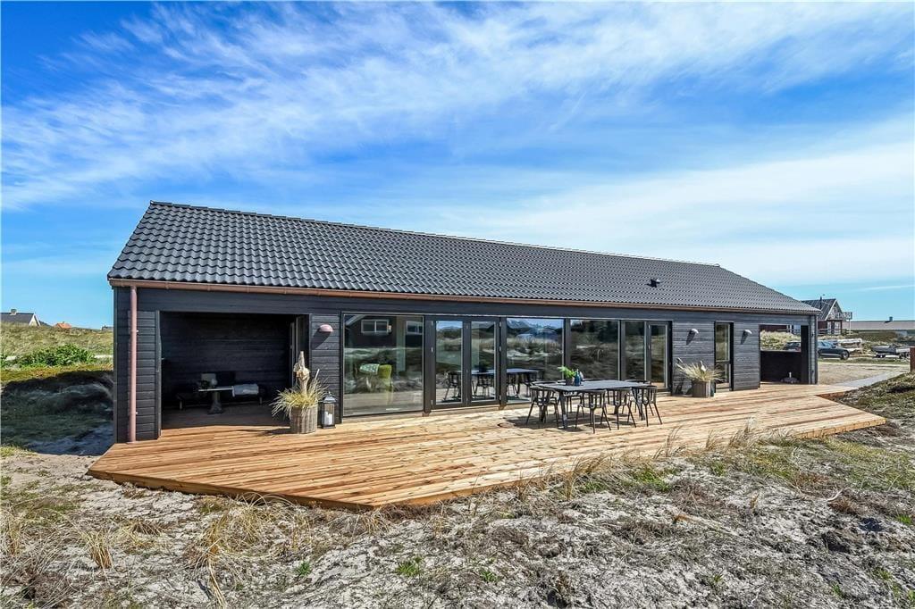De to overdækkede terrasser udgør et vigtigt omdrejningspunkt for udelivet i dette sommerhus. Her er plads til at nyde morgenkaffen i ly for vinden, holde hyggelige grillmiddage i det fri eller bare trække sig tilbage med en bog i hængekøjen. Terrasserne giver dig mulighed for at være udenfor – uanset om solen skinner fra en skyfri himmel, eller der trækker en let sommerregn forbi. Den lukkede grund skaber trygge rammer for både børn og hunde, og den korte afstand til stranden gør det nemt at tage spontane ture til vandet – for hvem kan sige nej til at dyppe tæerne i Vesterhavet, når det bare er et par minutters gang væk?