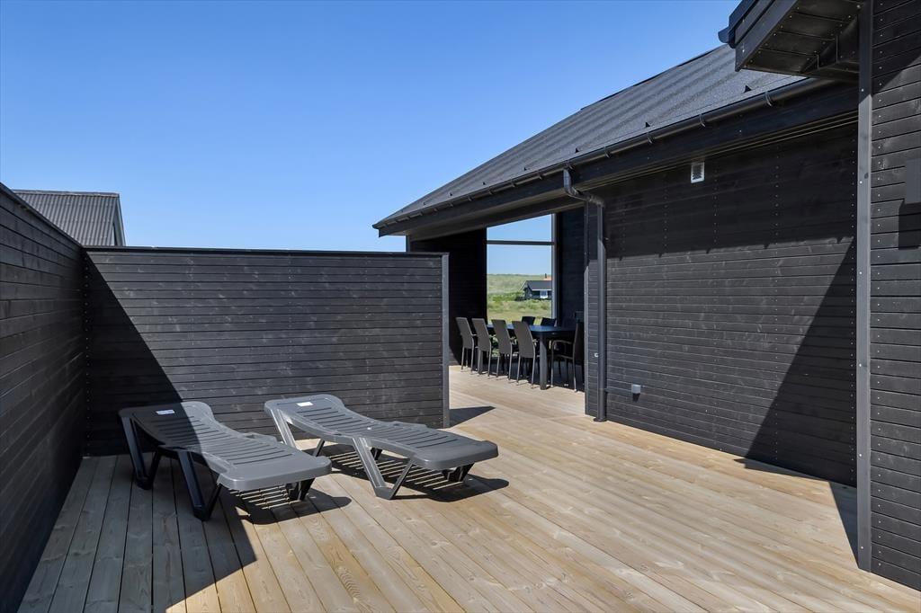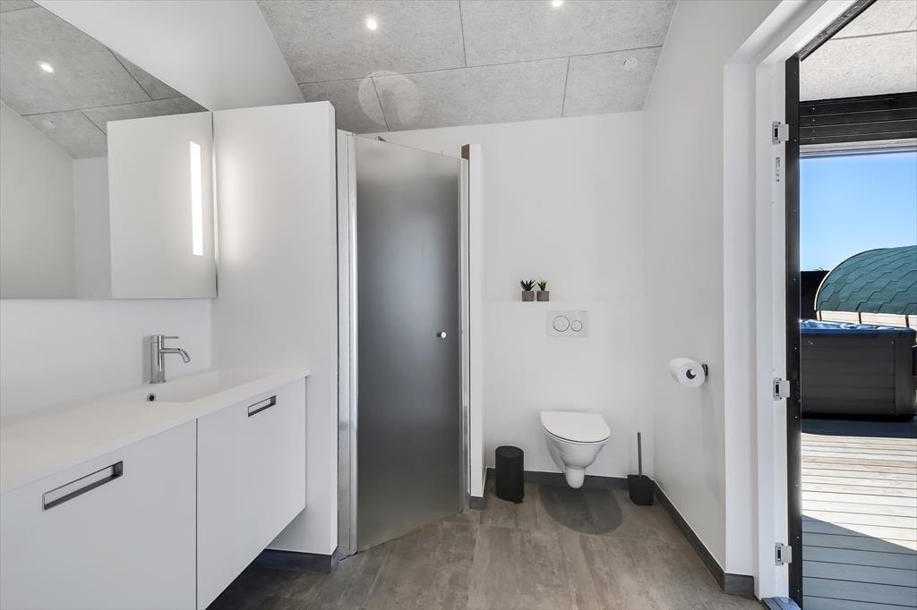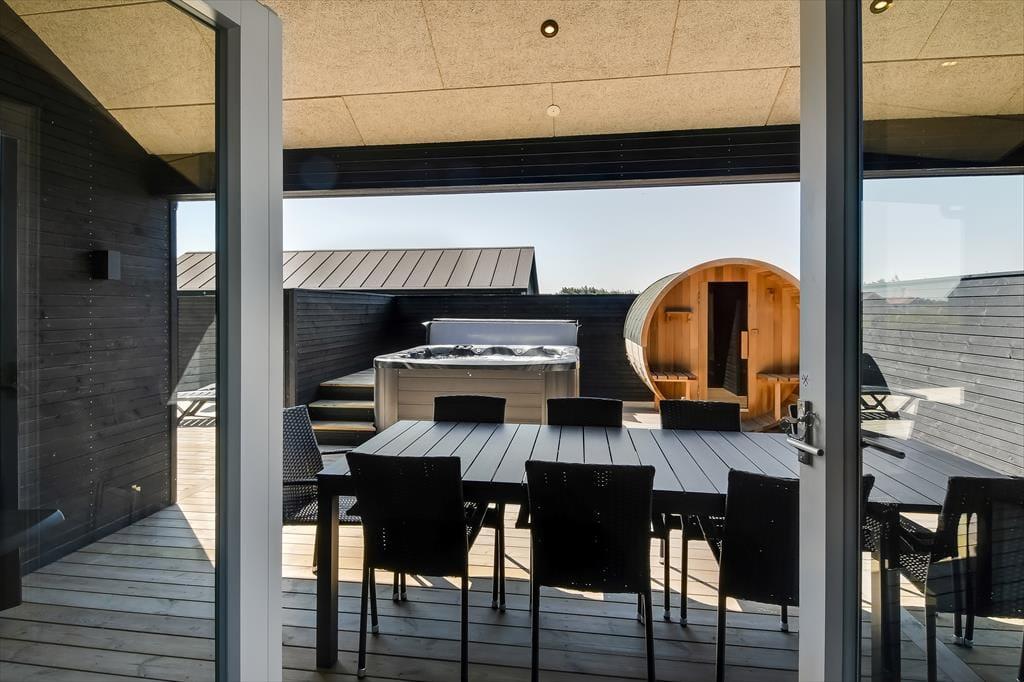Er du til ferie, hvor både ro og aktivitet går hånd i hånd, er sommerhuset på Horizonvej 10B i Vrist et oplagt valg. Her finder du moderne komfort og højloftet hygge med plads til hele familien – og både indendørs og udendørs venter der gode overraskelser. Det rummelige hus med aktivitetsrum, udespa og tøndesauna skaber rammerne for en afslappet ferie i det skønne område nær Vejlby Klit og Vrist Strand.