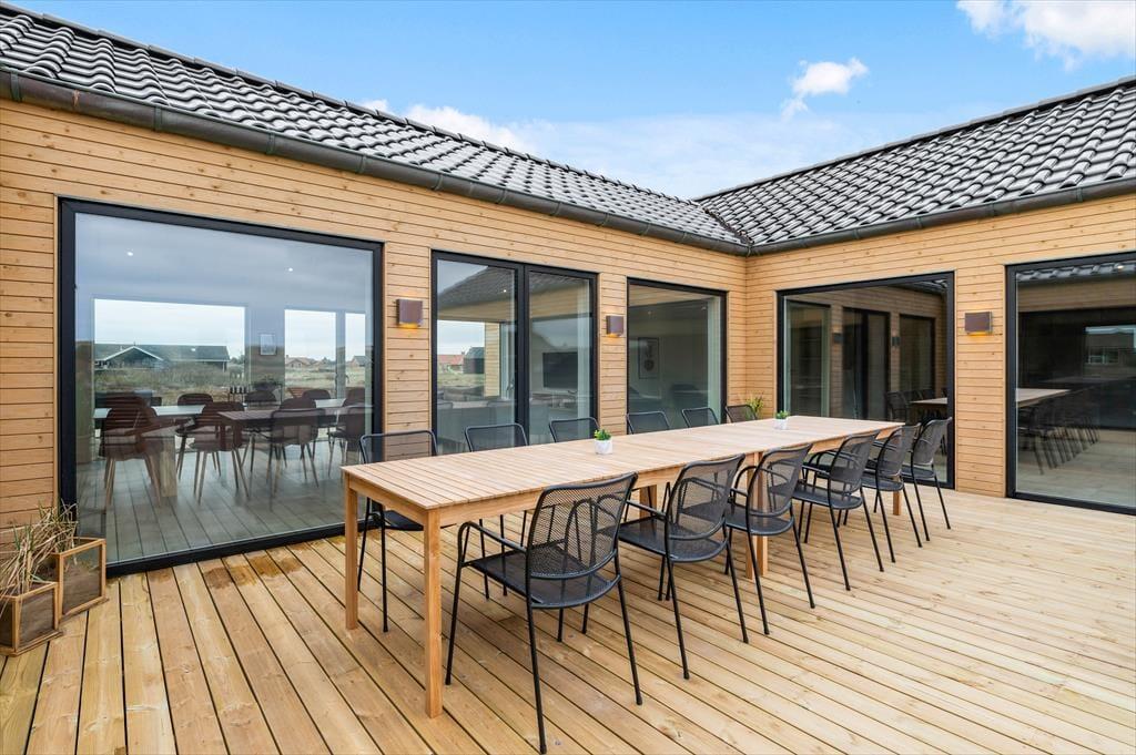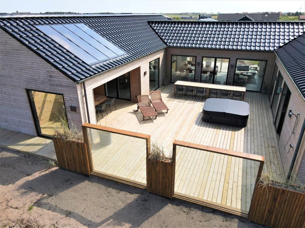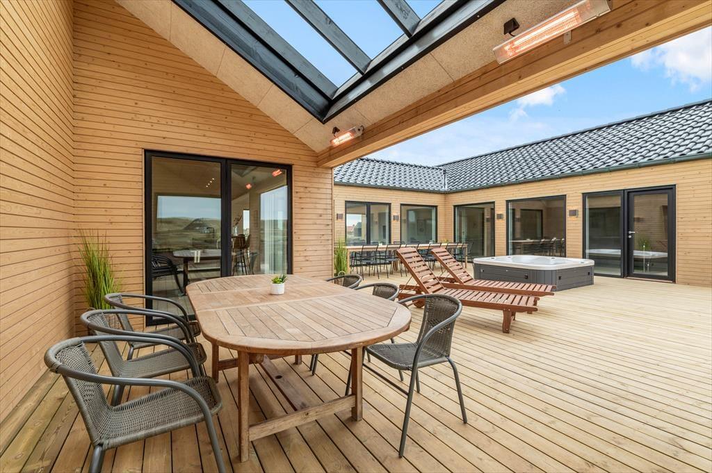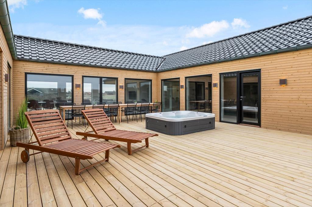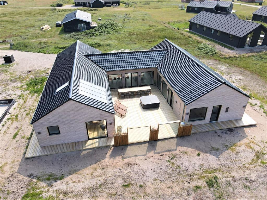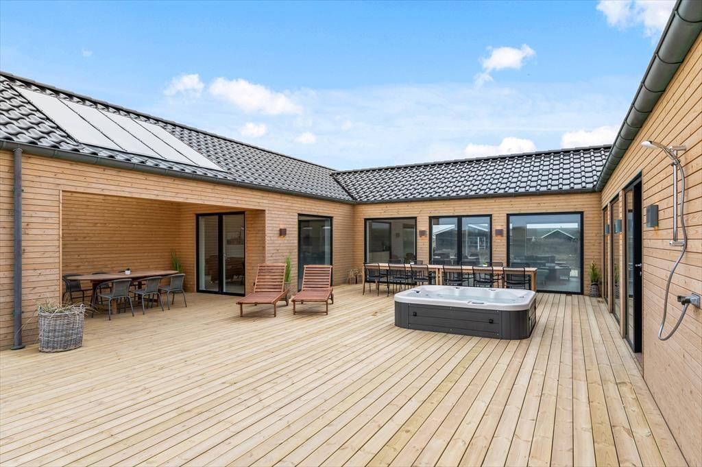 Hvis du drømmer om en ferie i luksuriøse omgivelser med plads til både afslapning, leg og nærvær, så er sommerhuset på Alkajavej 13 A i Vrist et oplagt valg. Her får du en eksklusiv feriebase på hele 244m² – kun 200 meter fra Vesterhavet – med masser af plads til både store og små. Huset rummer både poolafdeling, aktivitetsrum og udespa – og du må selvfølgelig også gerne tage din hund med.