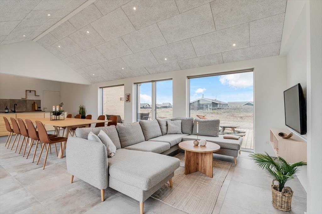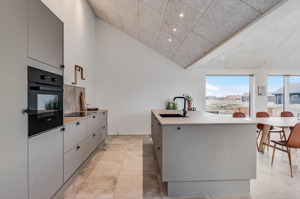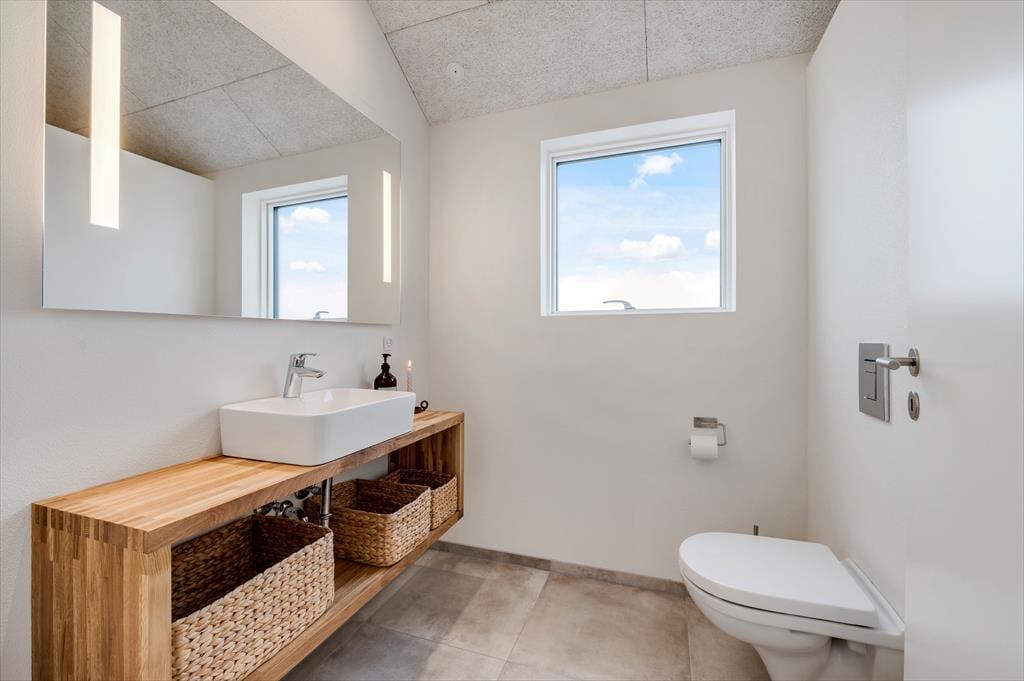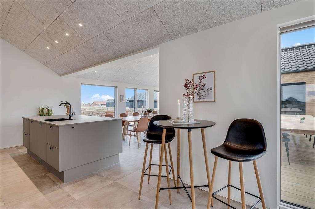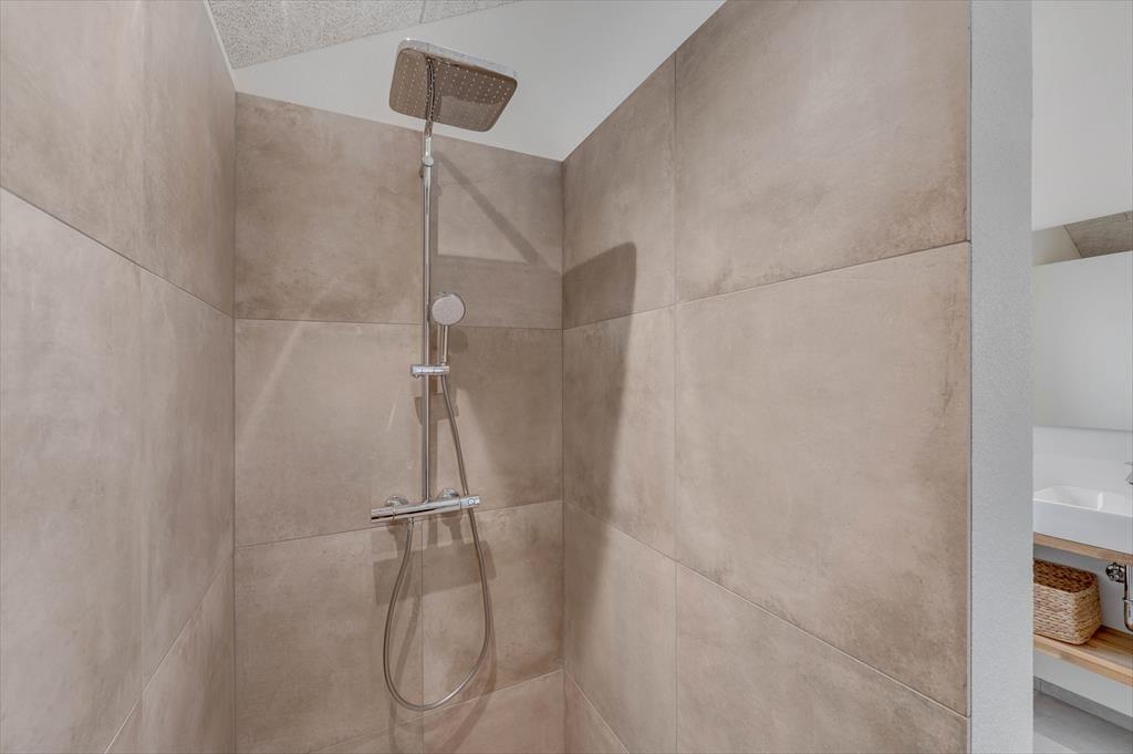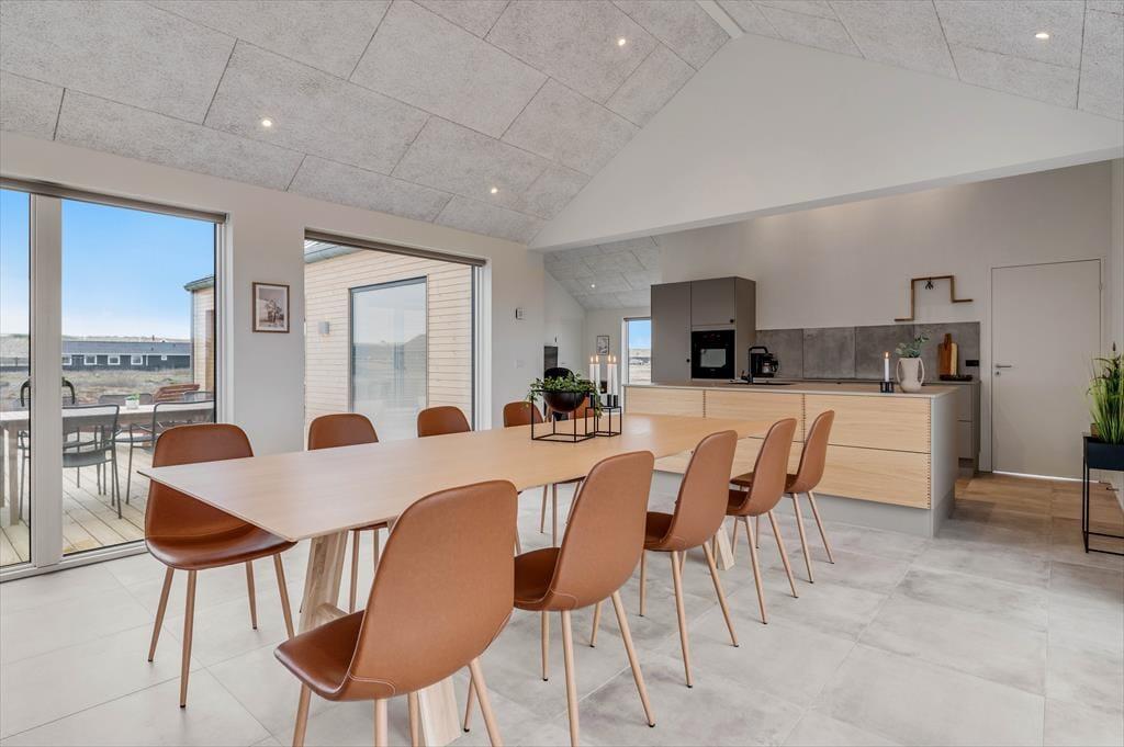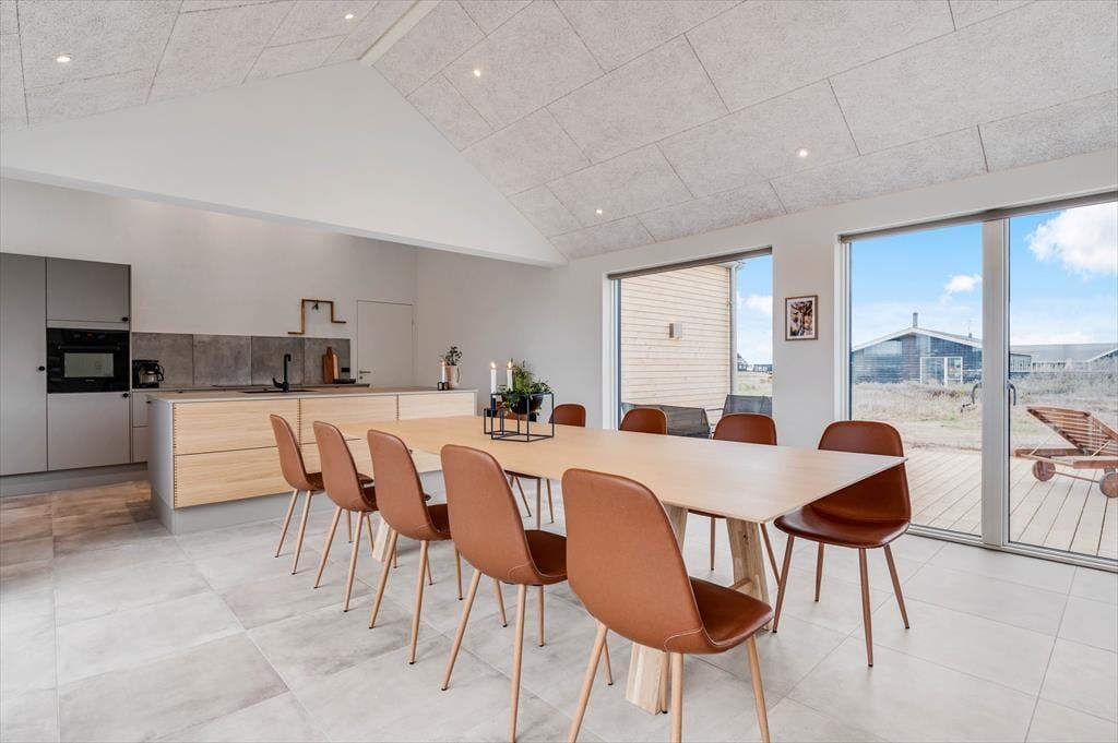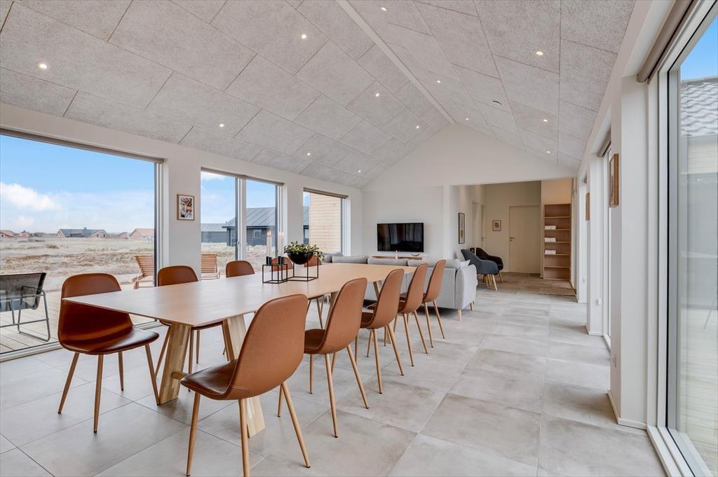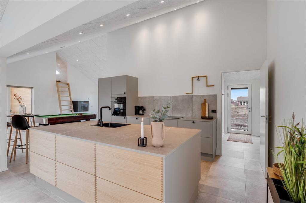 Det store sommerhus er gennemtænkt indrettet med fine detaljer og en lys og indbydende atmosfære, der gør det let at føle sig hjemme. Stue og køkken ligger i åben forbindelse og bliver hurtigt det naturlige samlingspunkt, hvor ferielivet leves med madlavning, snakke og hygge. Når det er tid til afslapning og selvforkælelse, kan du bevæge dig ind i den flotte poolafdeling, hvor både indendørs pool, bruser og sauna venter. Og skulle I have lyst til lidt sjov og konkurrence, så byder aktivitetsrummet på både poolbord og bordtennisbord – perfekt til timevis af sjov for både børn og voksne. Huset har desuden en hyggelig hems, som egner sig godt til leg, læsning eller bare en rolig stund væk fra det hele. Her er plads til, at hele familien – og måske også to – kan nyde en ferie med alt, hvad hjertet begærer.